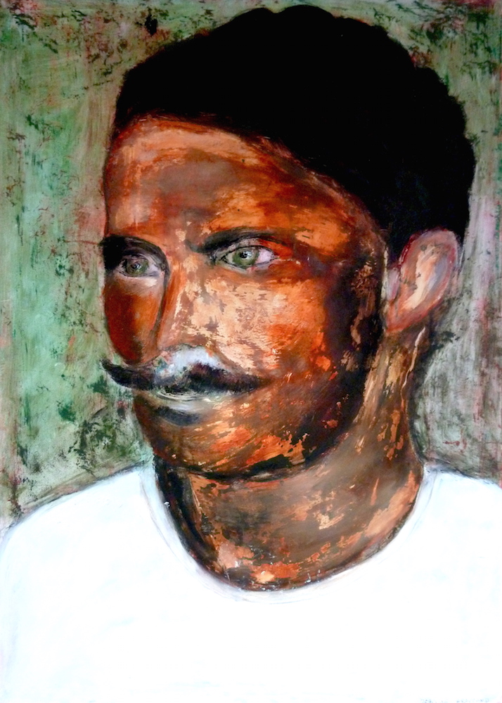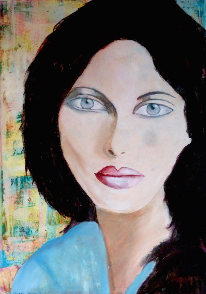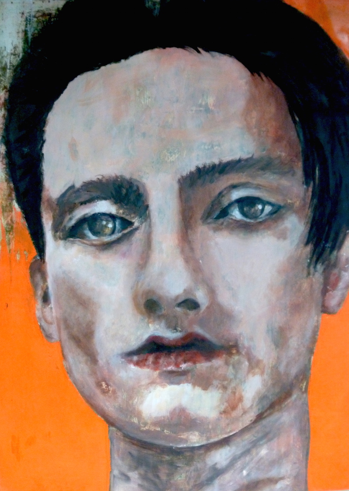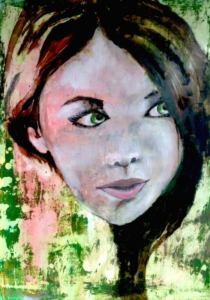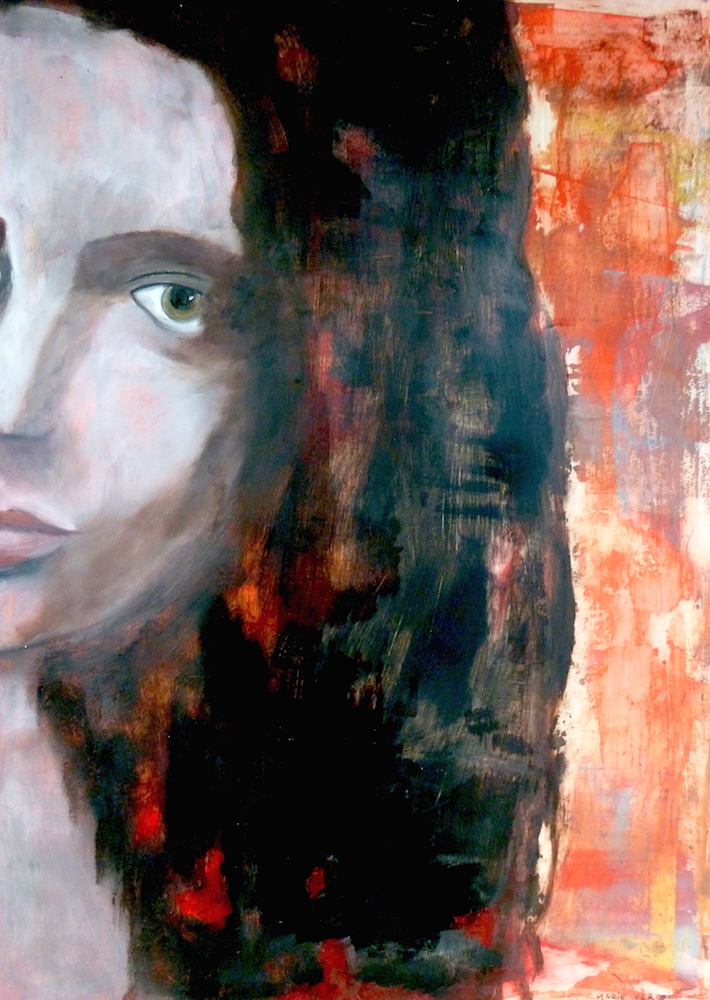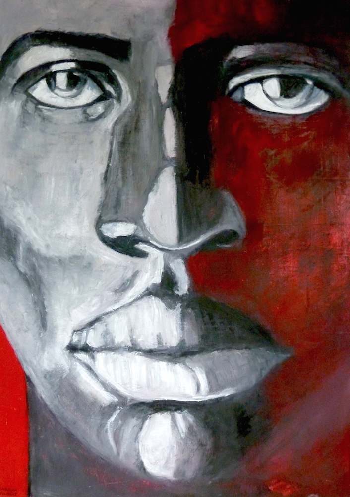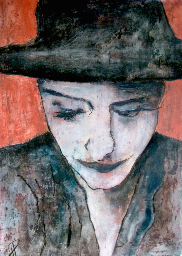 Janvier 2017 – Format 50×70 – Peinture à l’huile sur carton plume fond patiné au chiffon, portrait en transparence