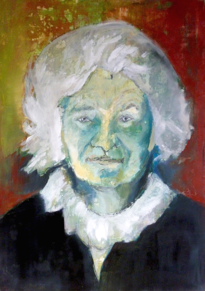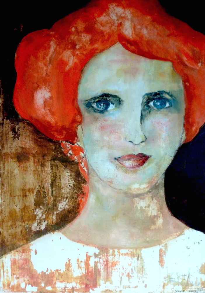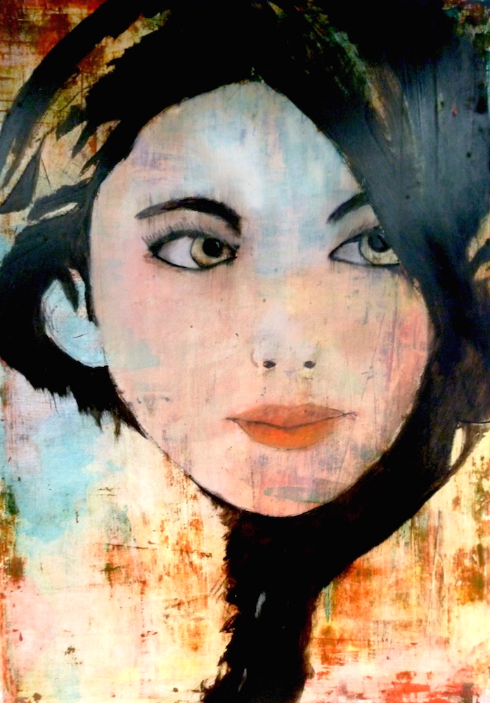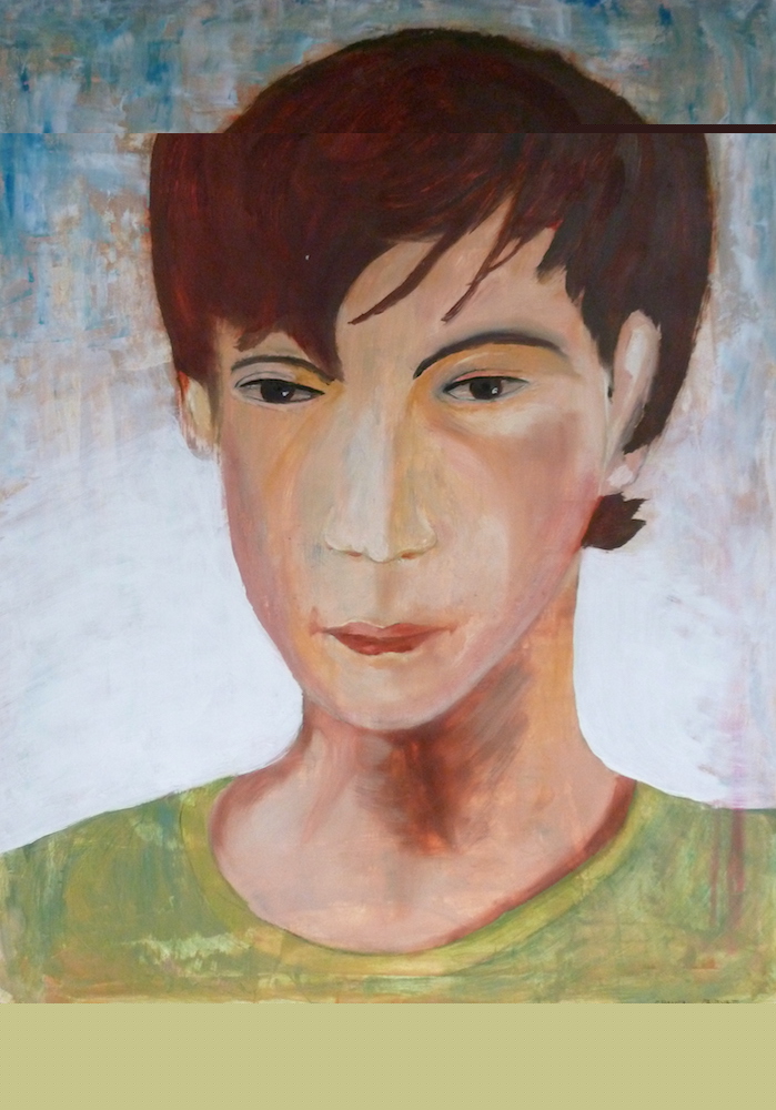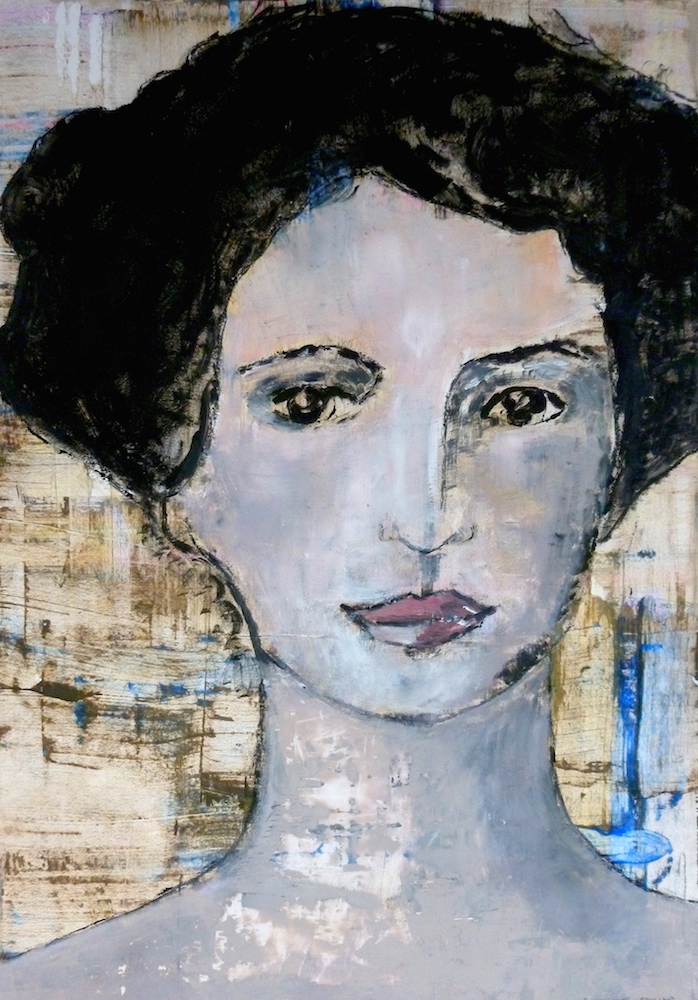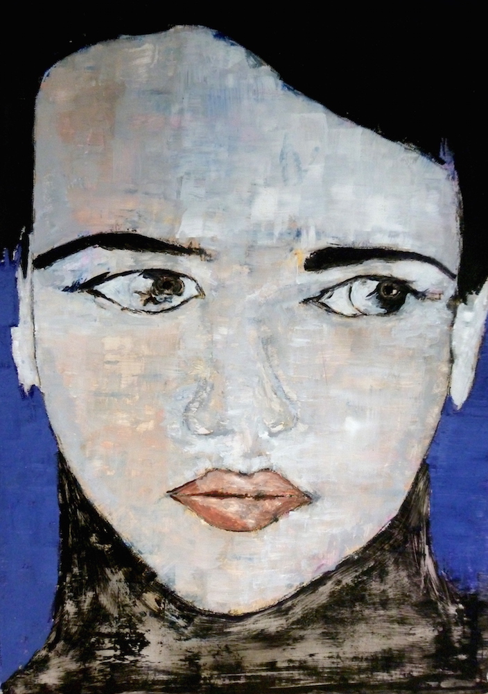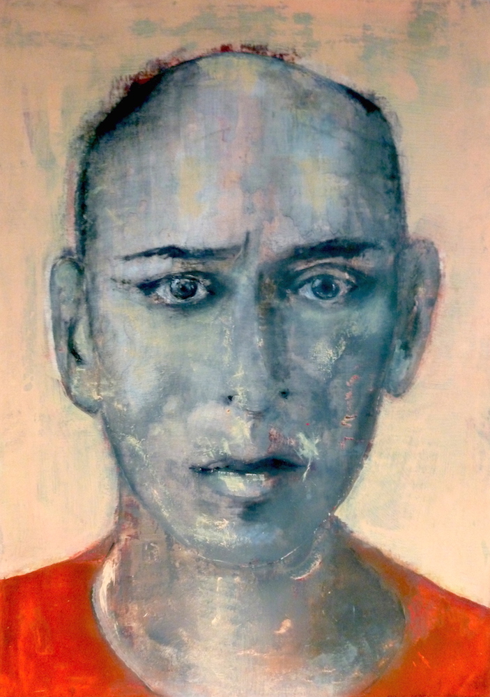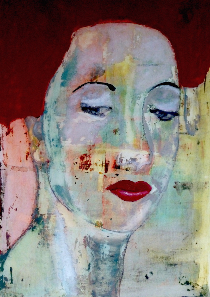 Janvier 2017 – Format 50×70 – Peinture à l’huile sur carton plume fond patiné au chiffon, portrait en transparence