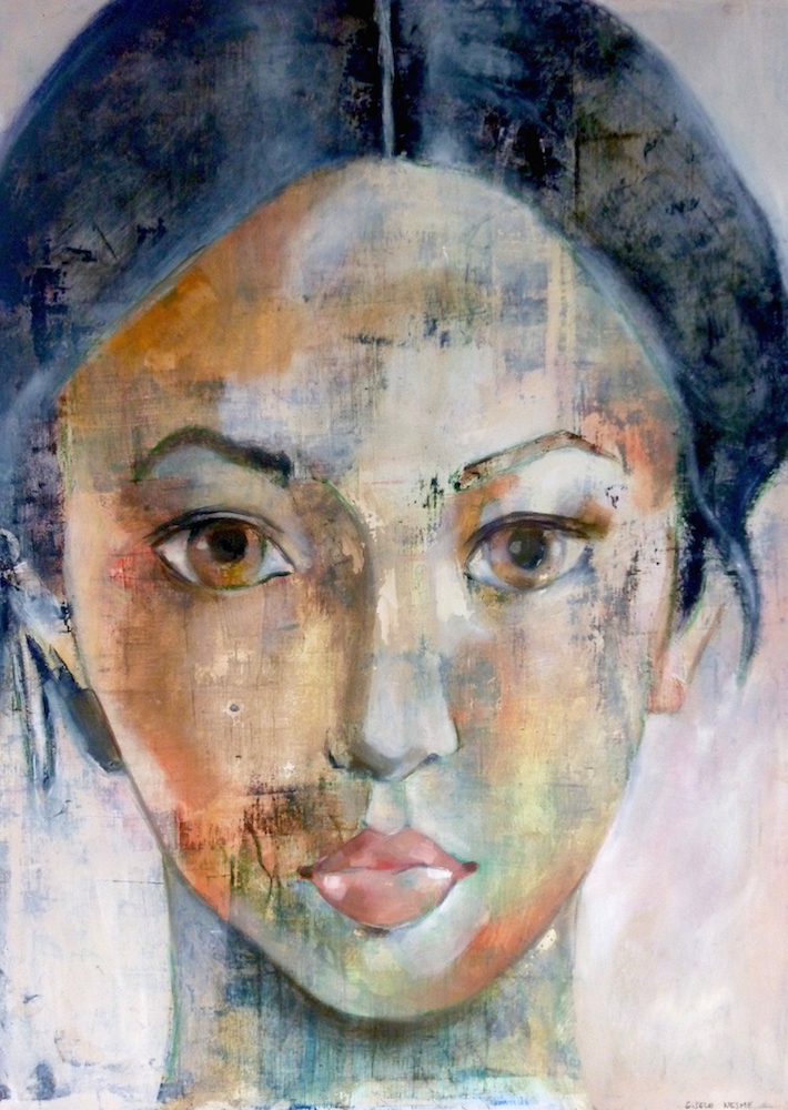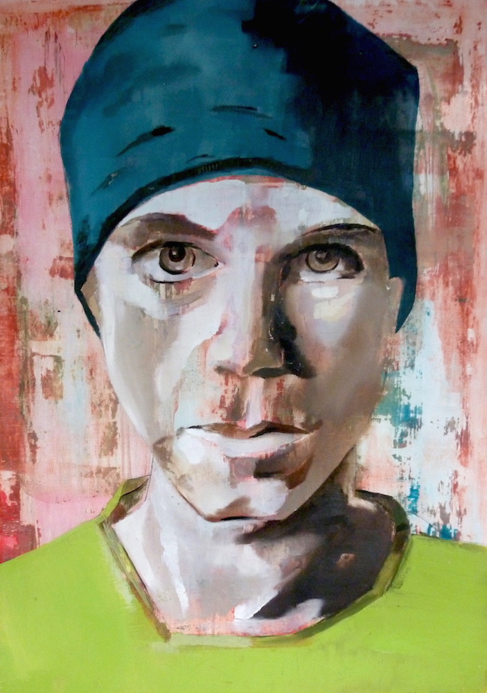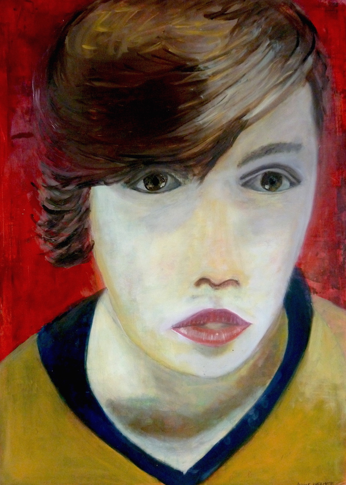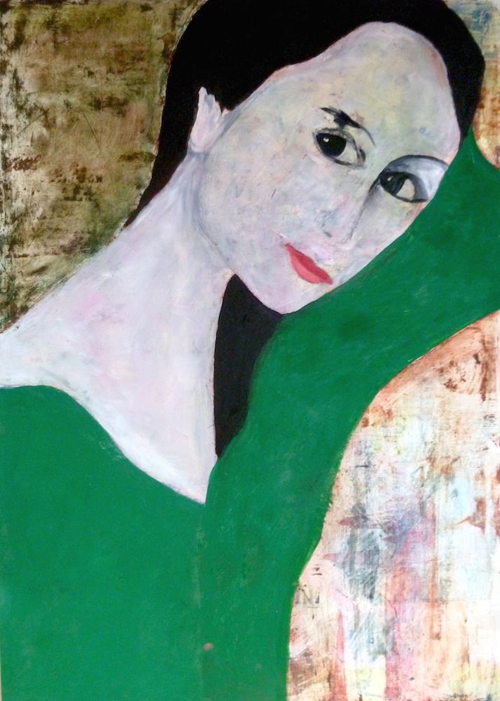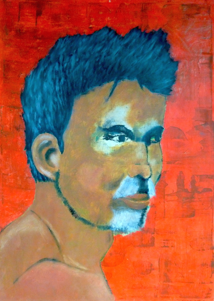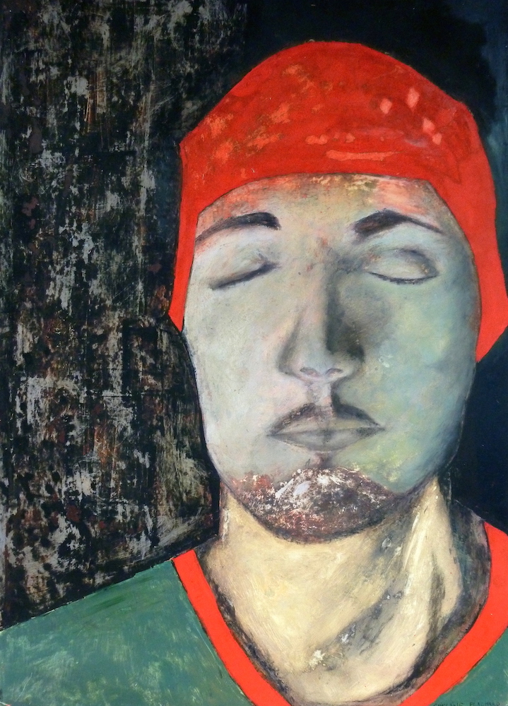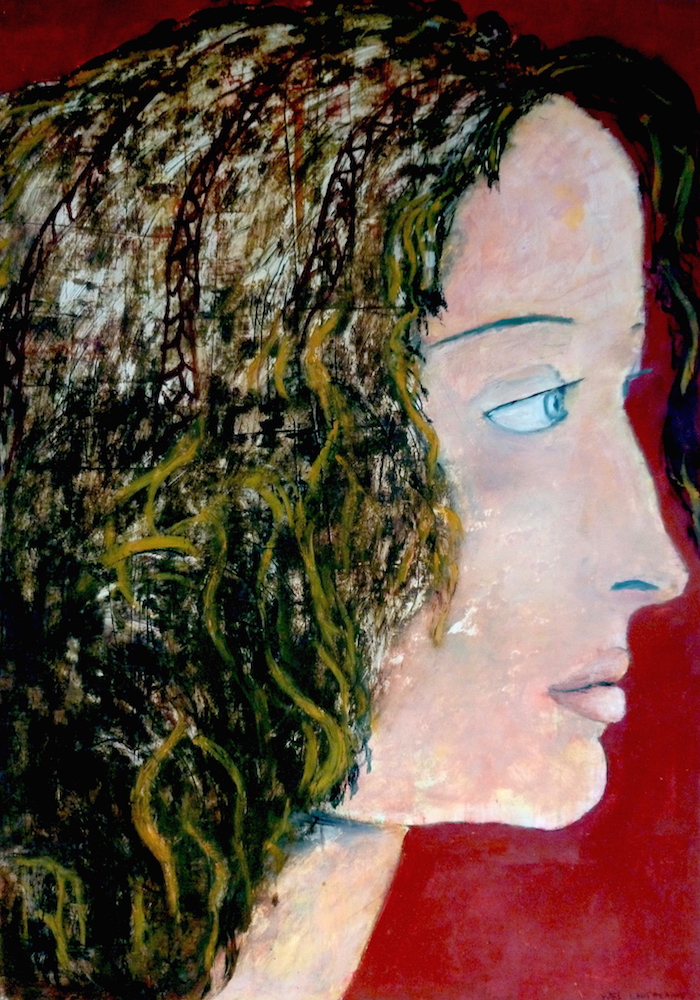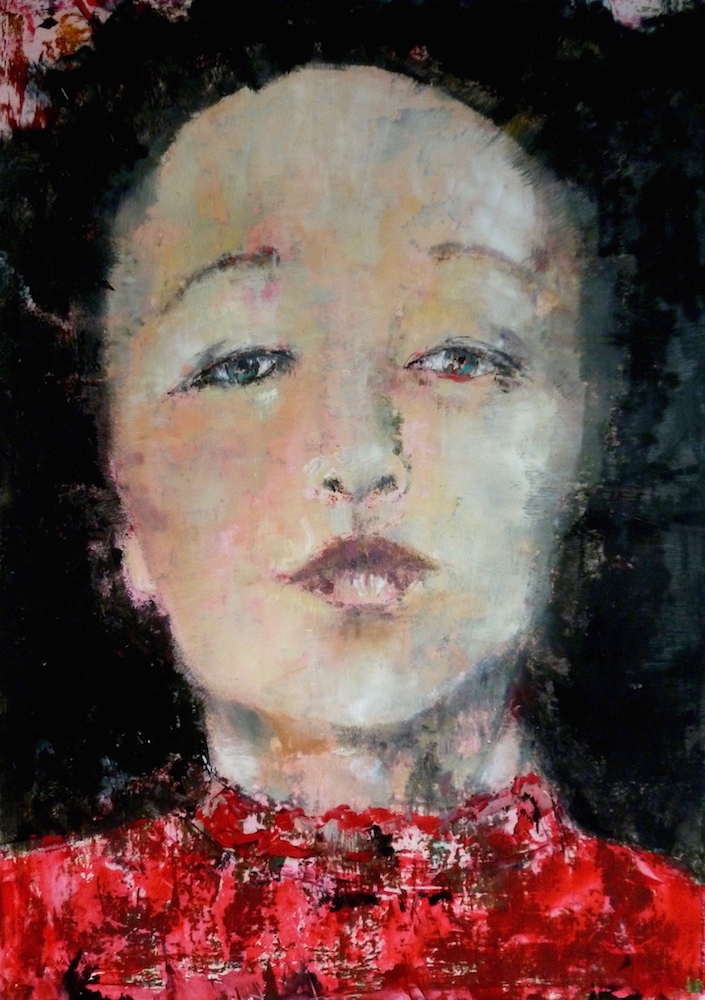 Janvier 2017 – Format 50×70 – Peinture à l’huile sur carton plume fond patiné au chiffon, portrait en transparence