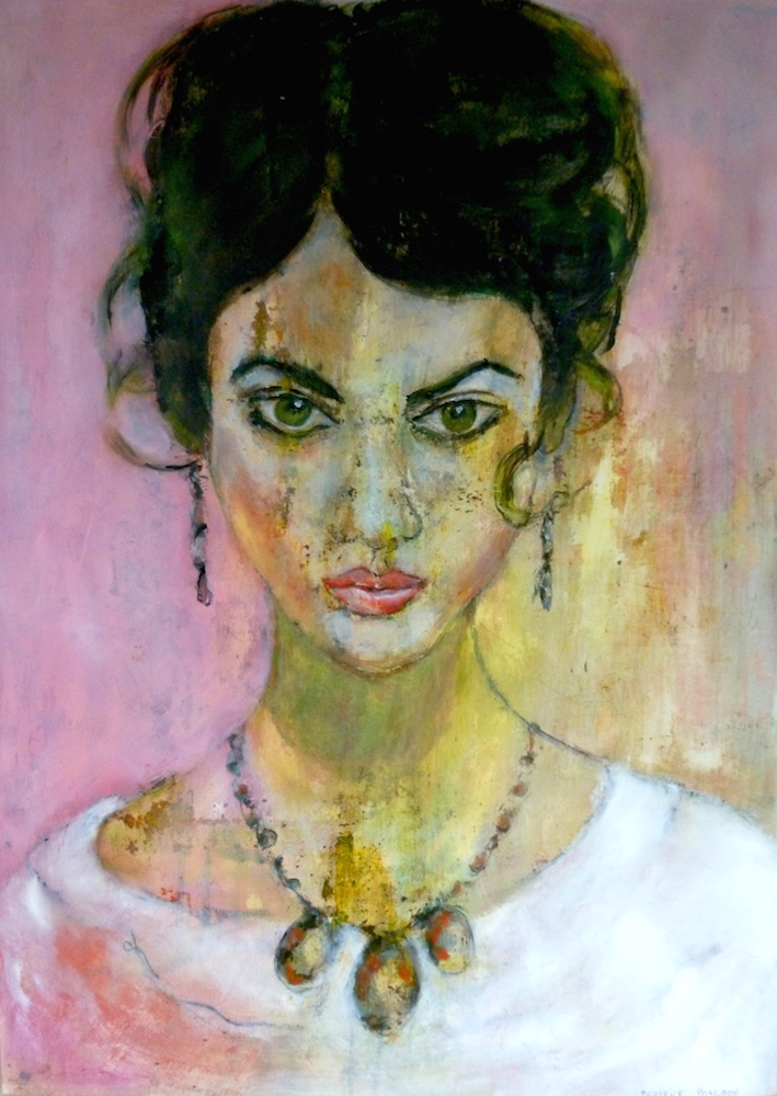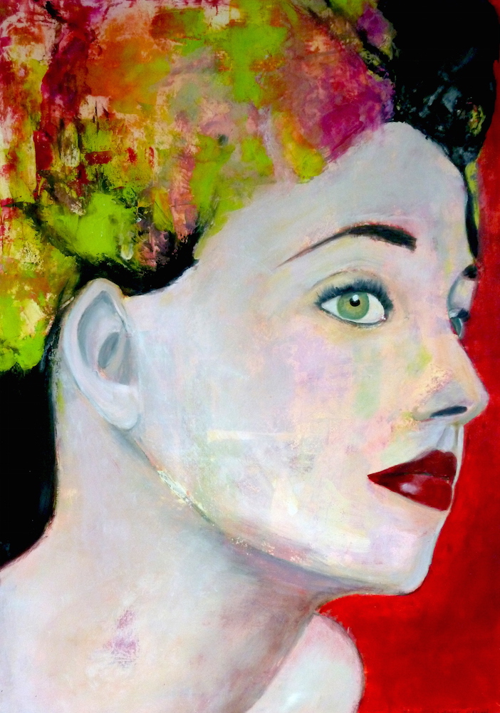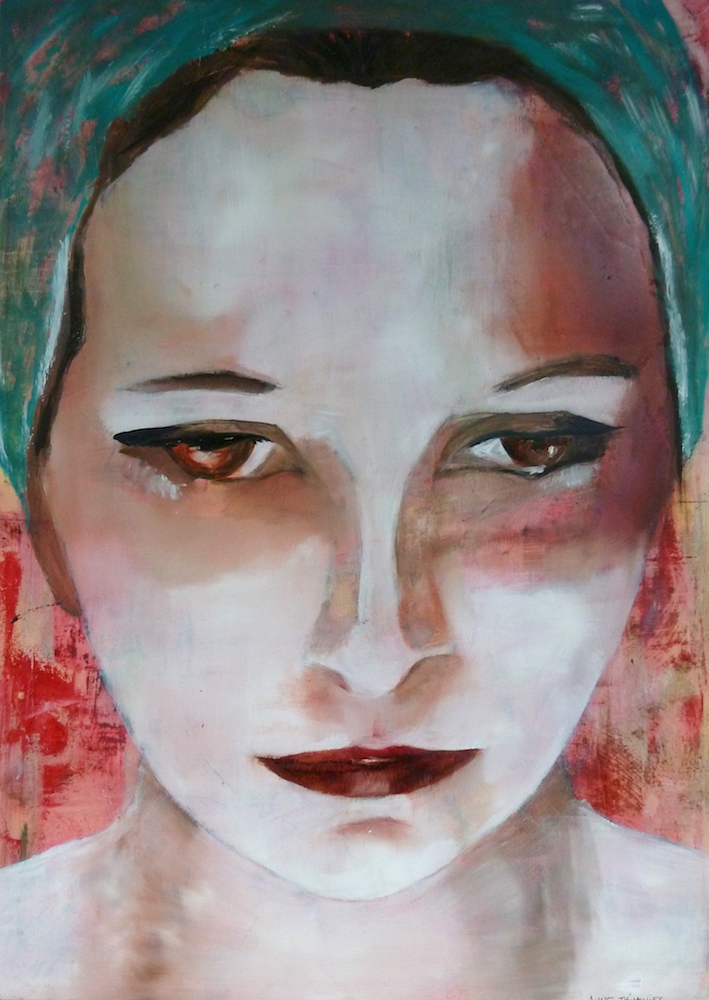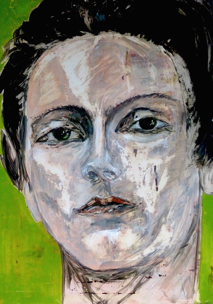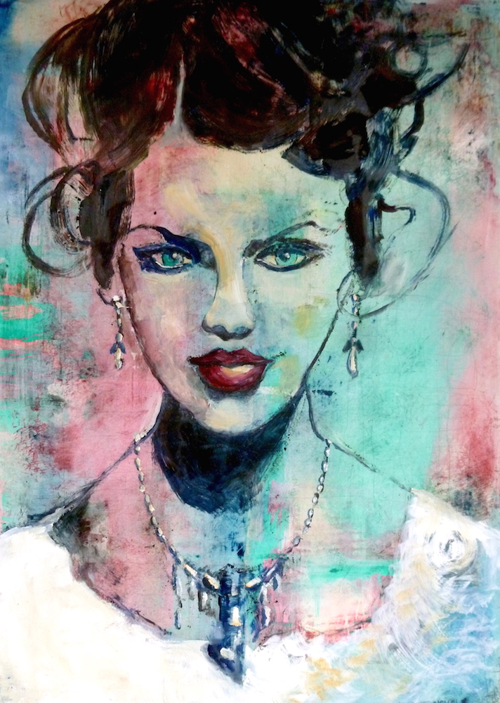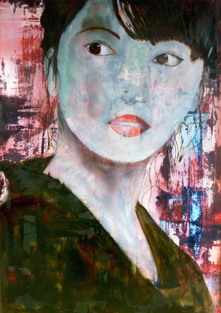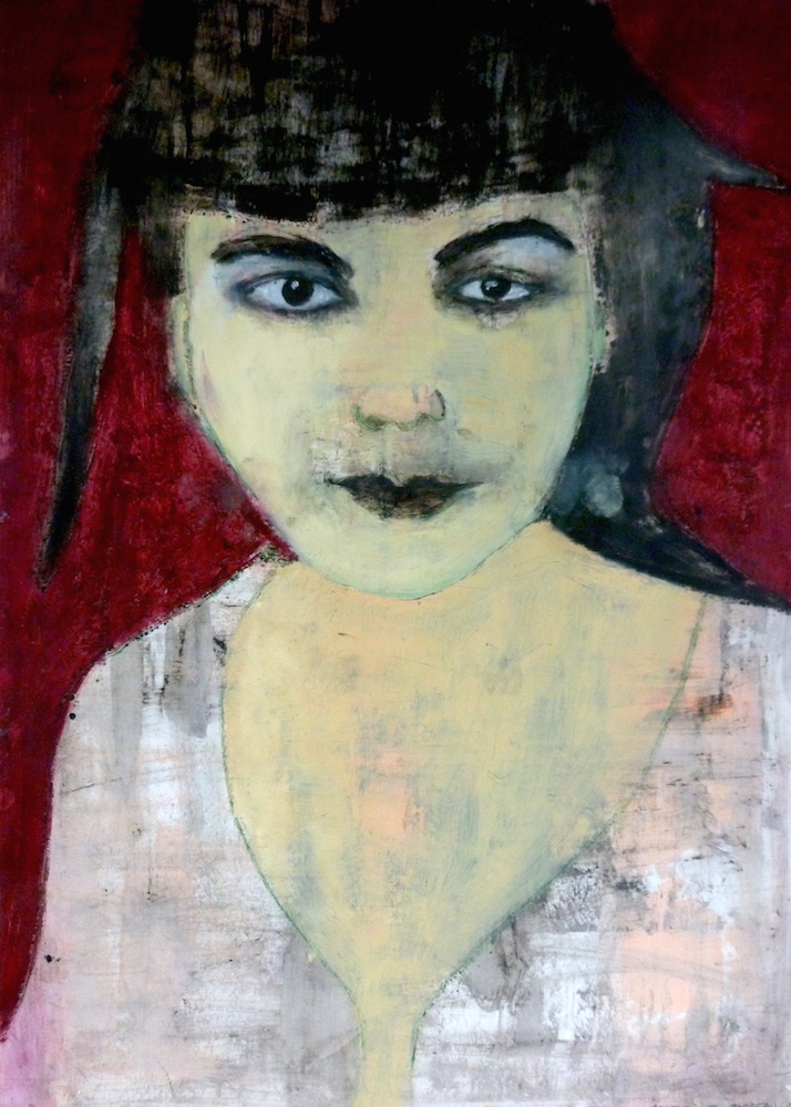 Janvier 2017 – Format 50×70 – Peinture à l’huile sur carton plume fond patiné au chiffon, portrait en transparence