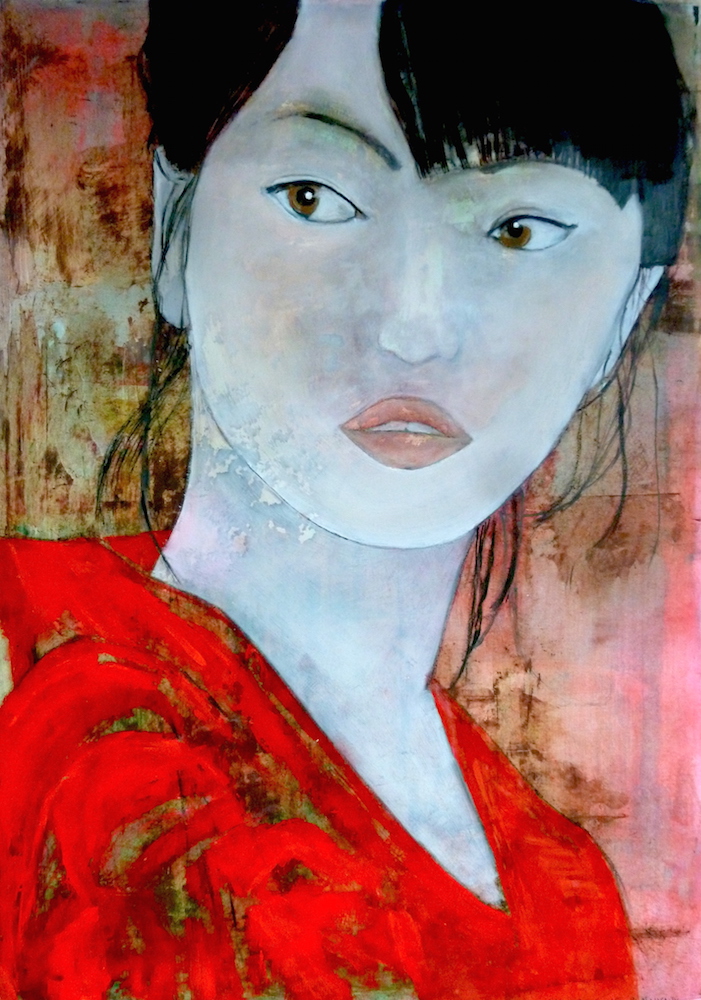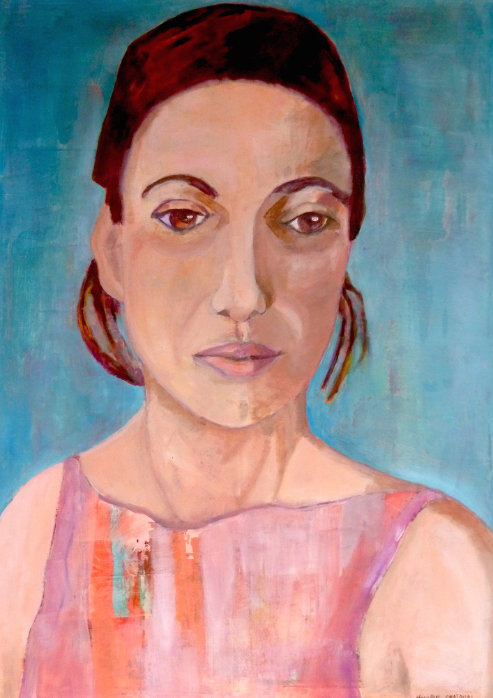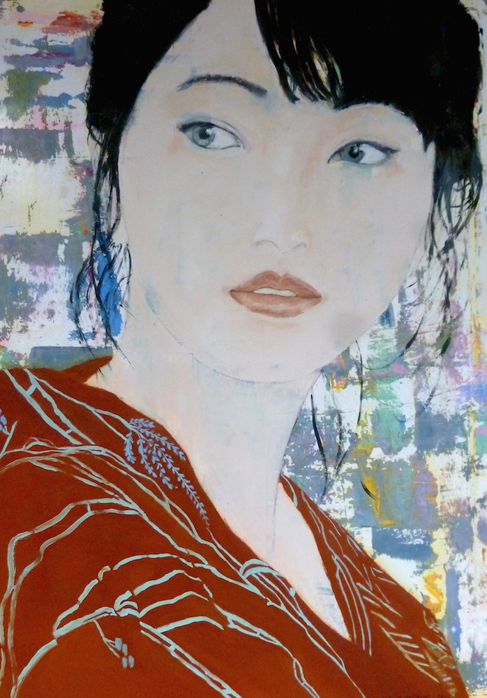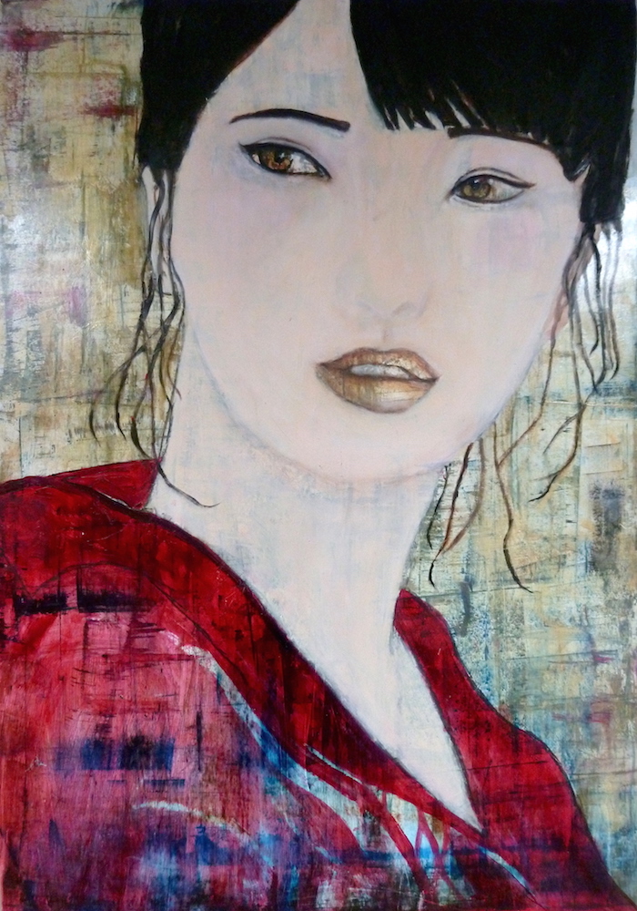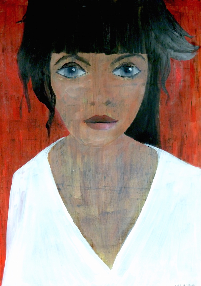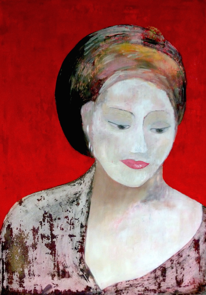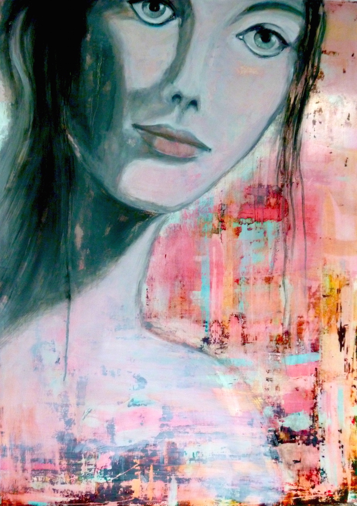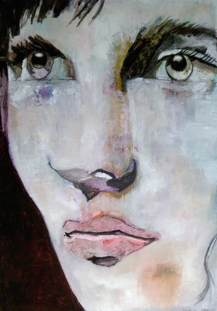Janvier 2017 – Format 50×70 – Peinture à l’huile sur carton plume fond patiné au chiffon, portrait en transparence