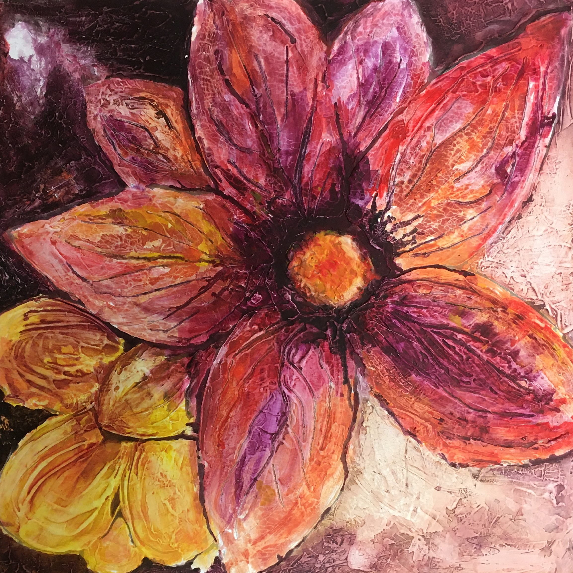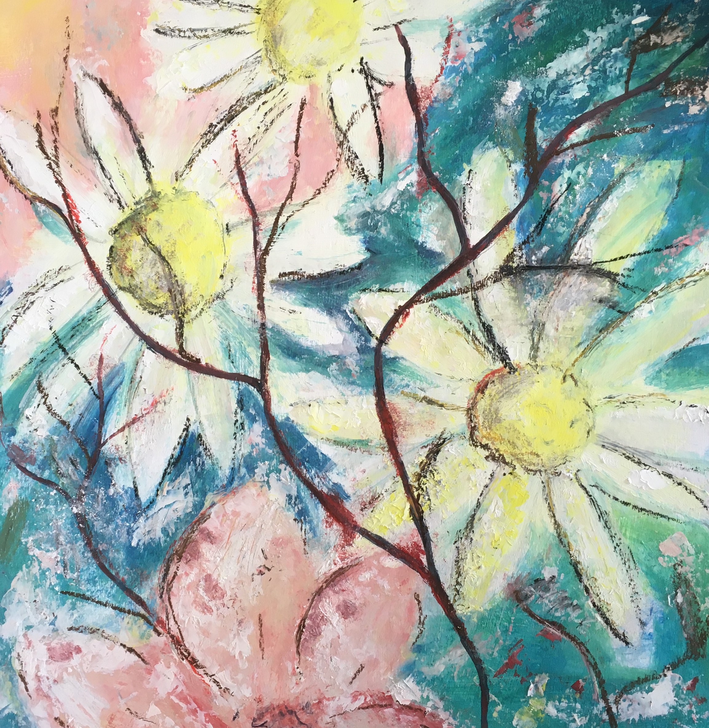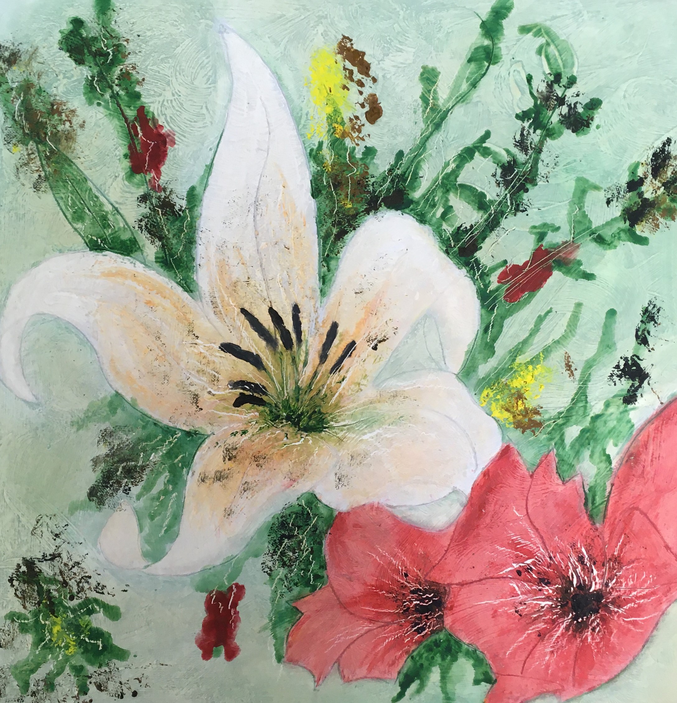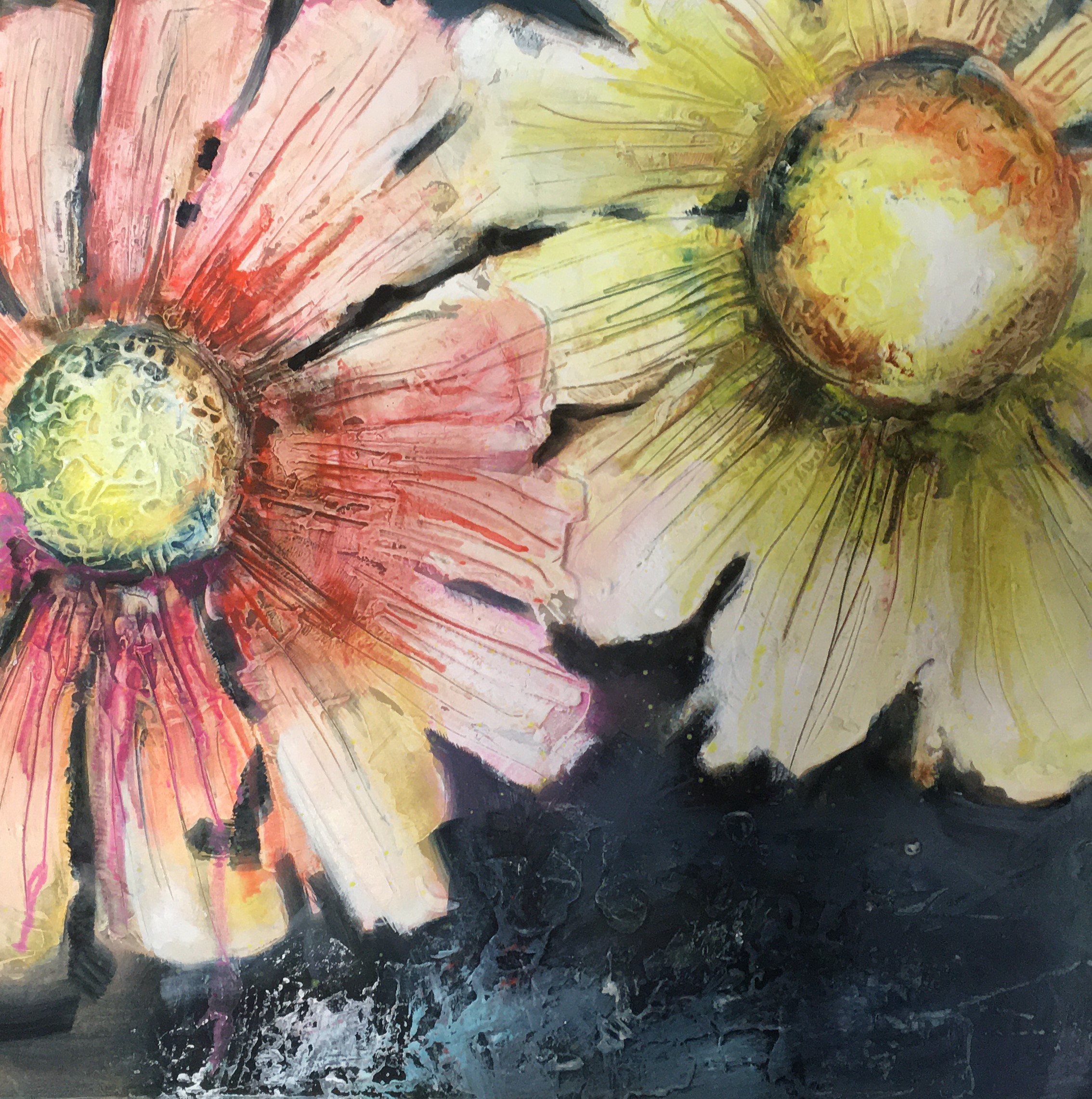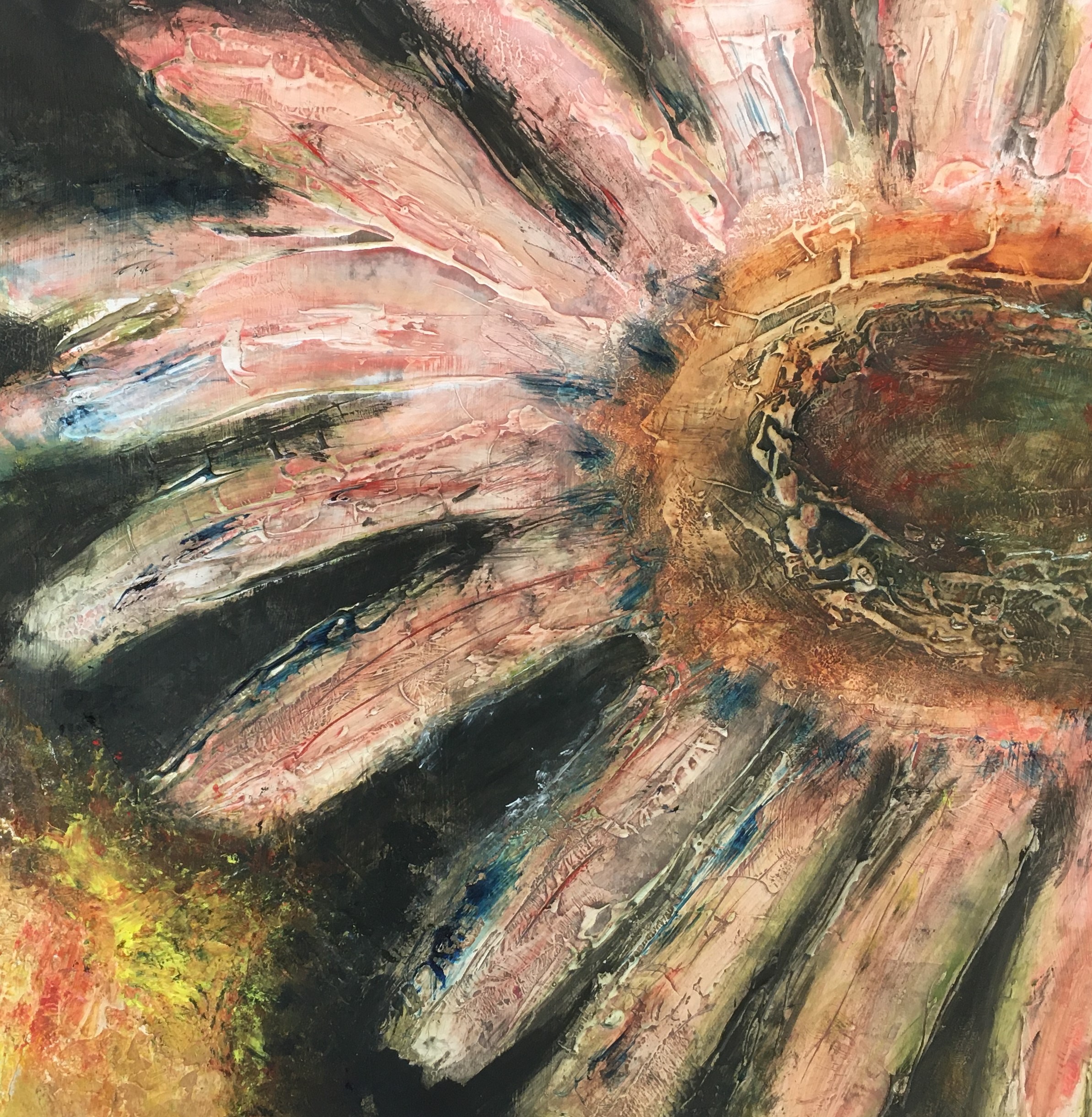 Extrait d’un bouquet de fleur – Travail à la brosse sur fond texturé