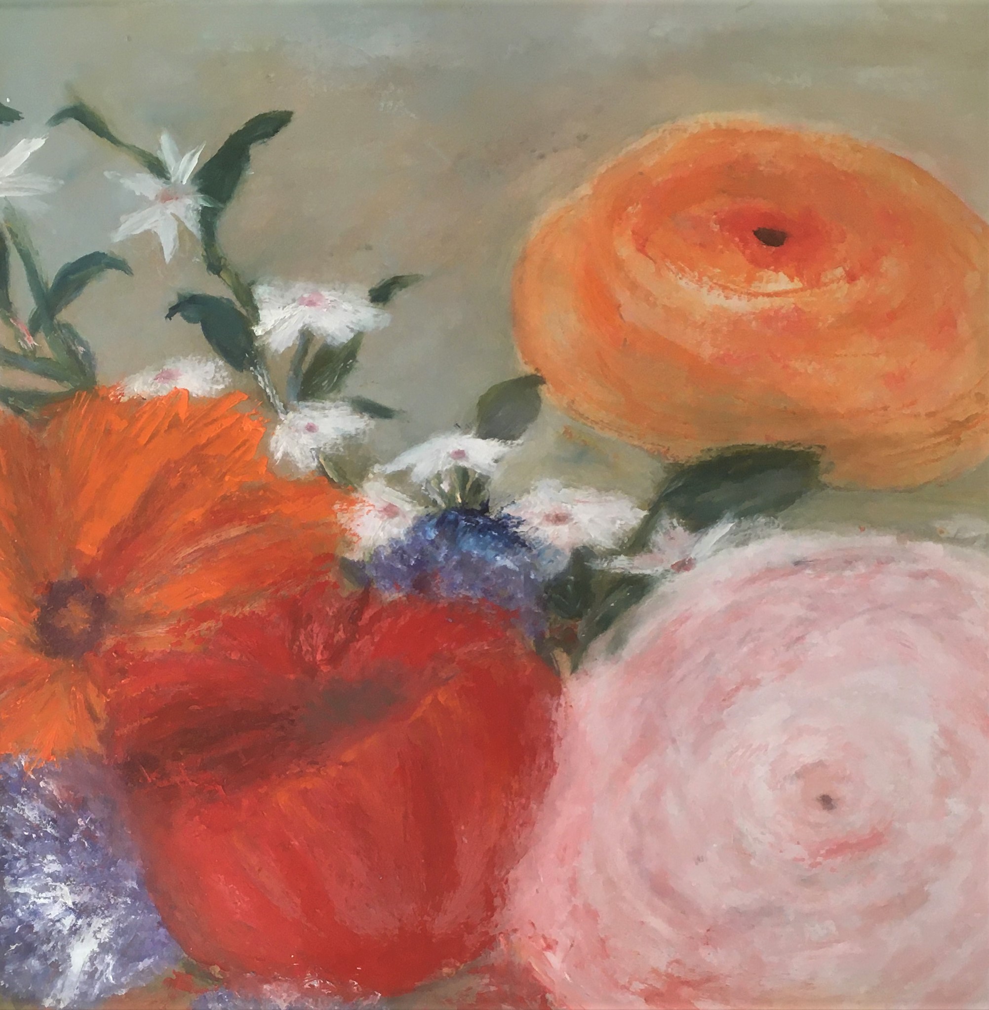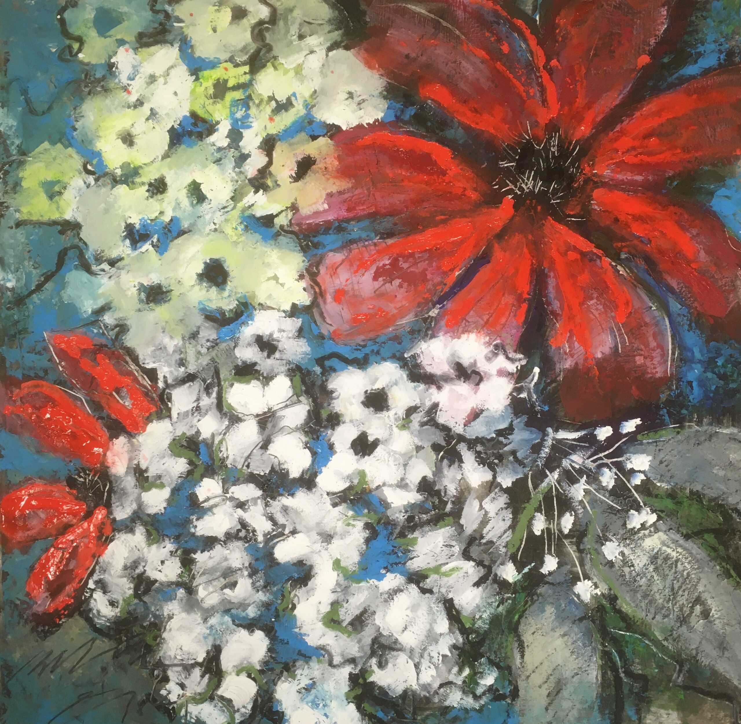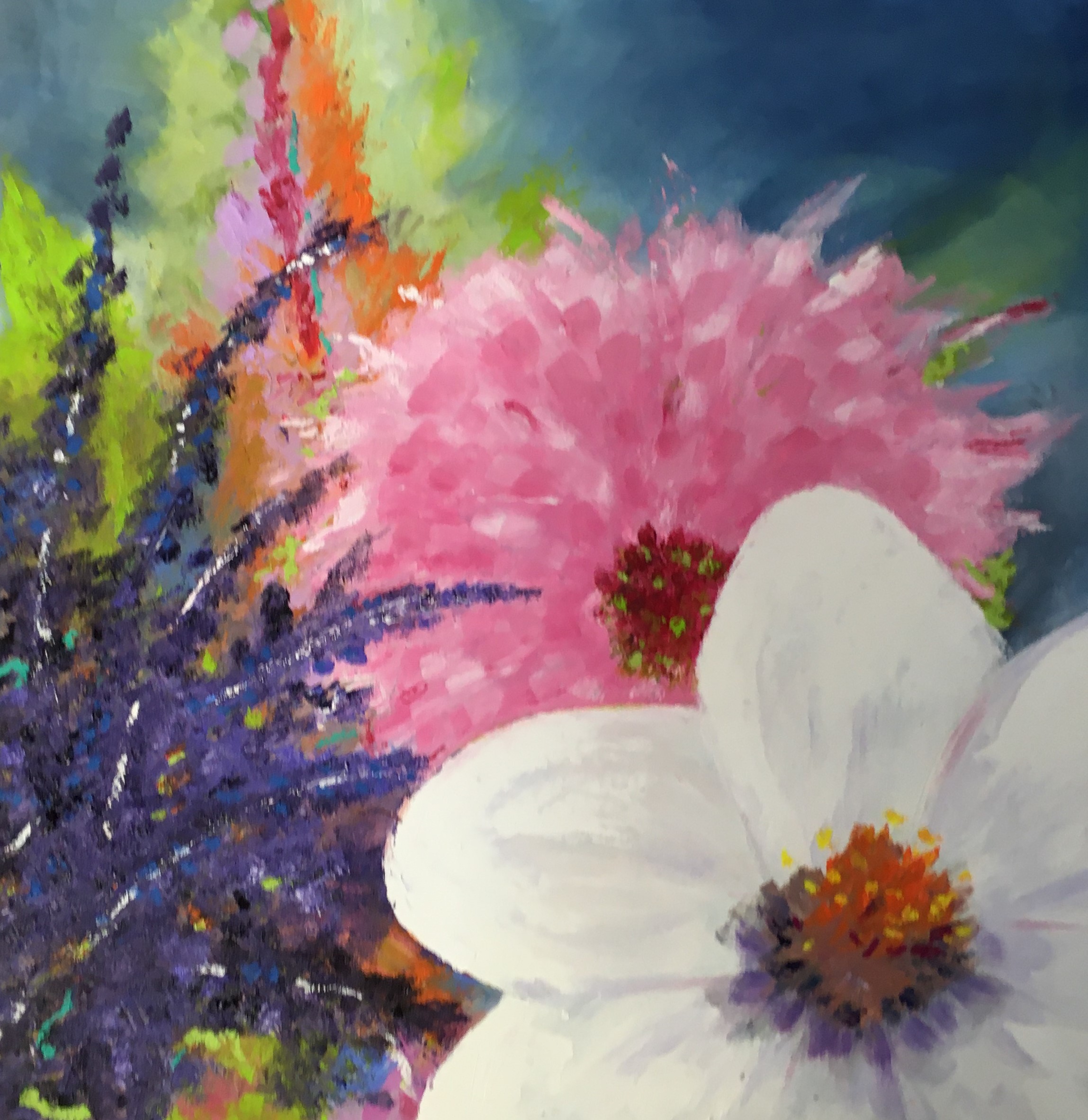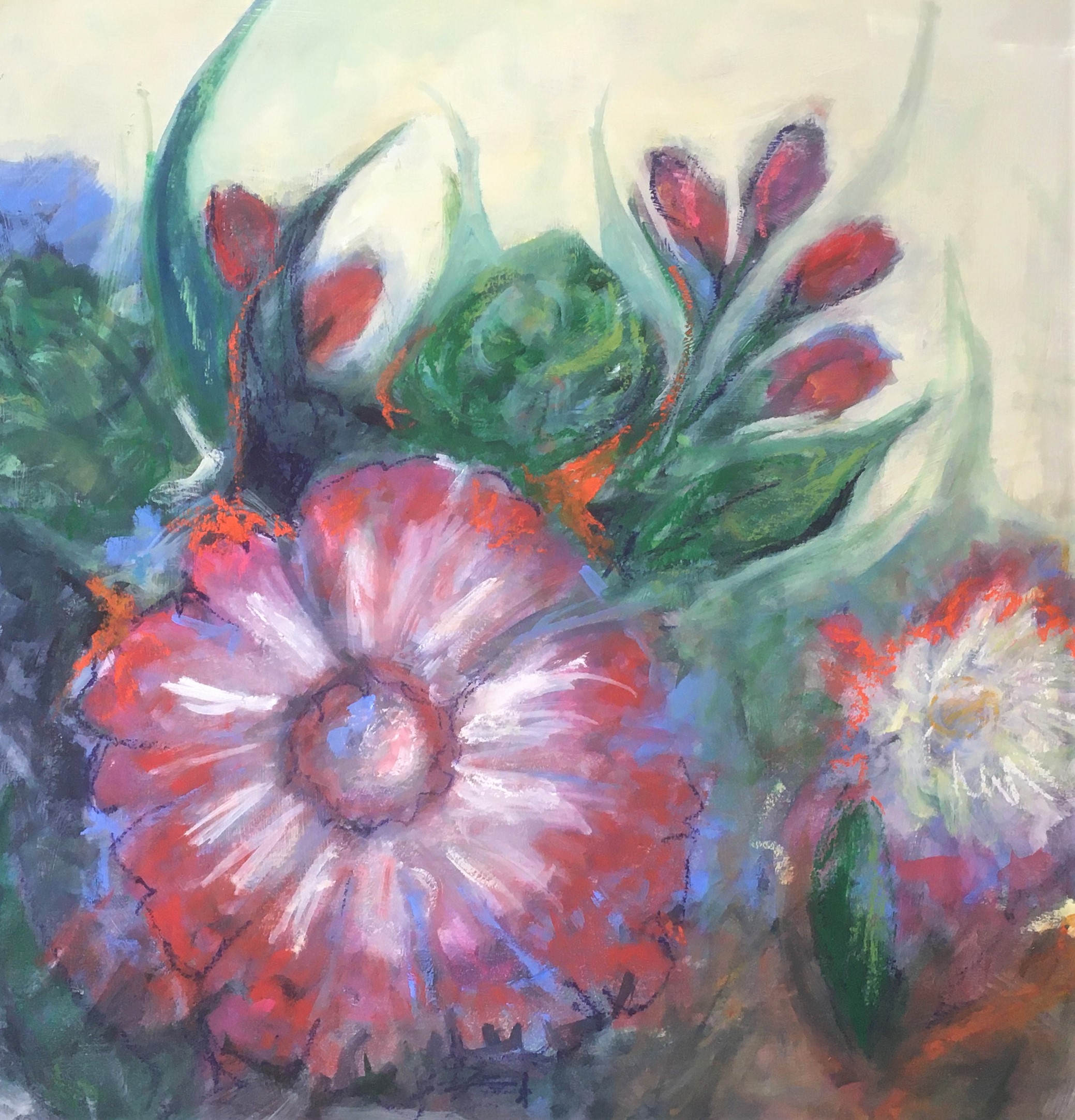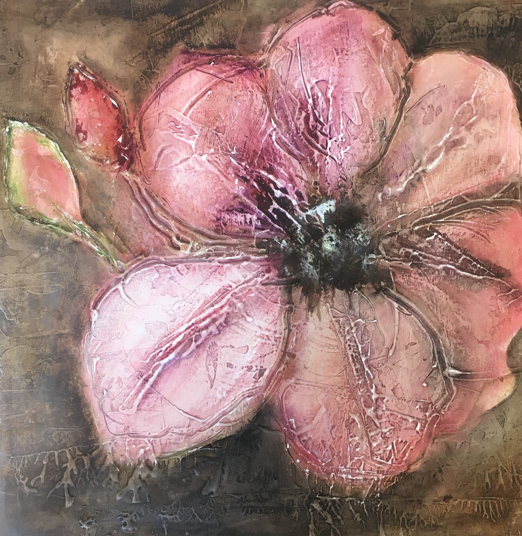 Extrait d’un bouquet de fleur – Travail à la brosse sur fond texturé