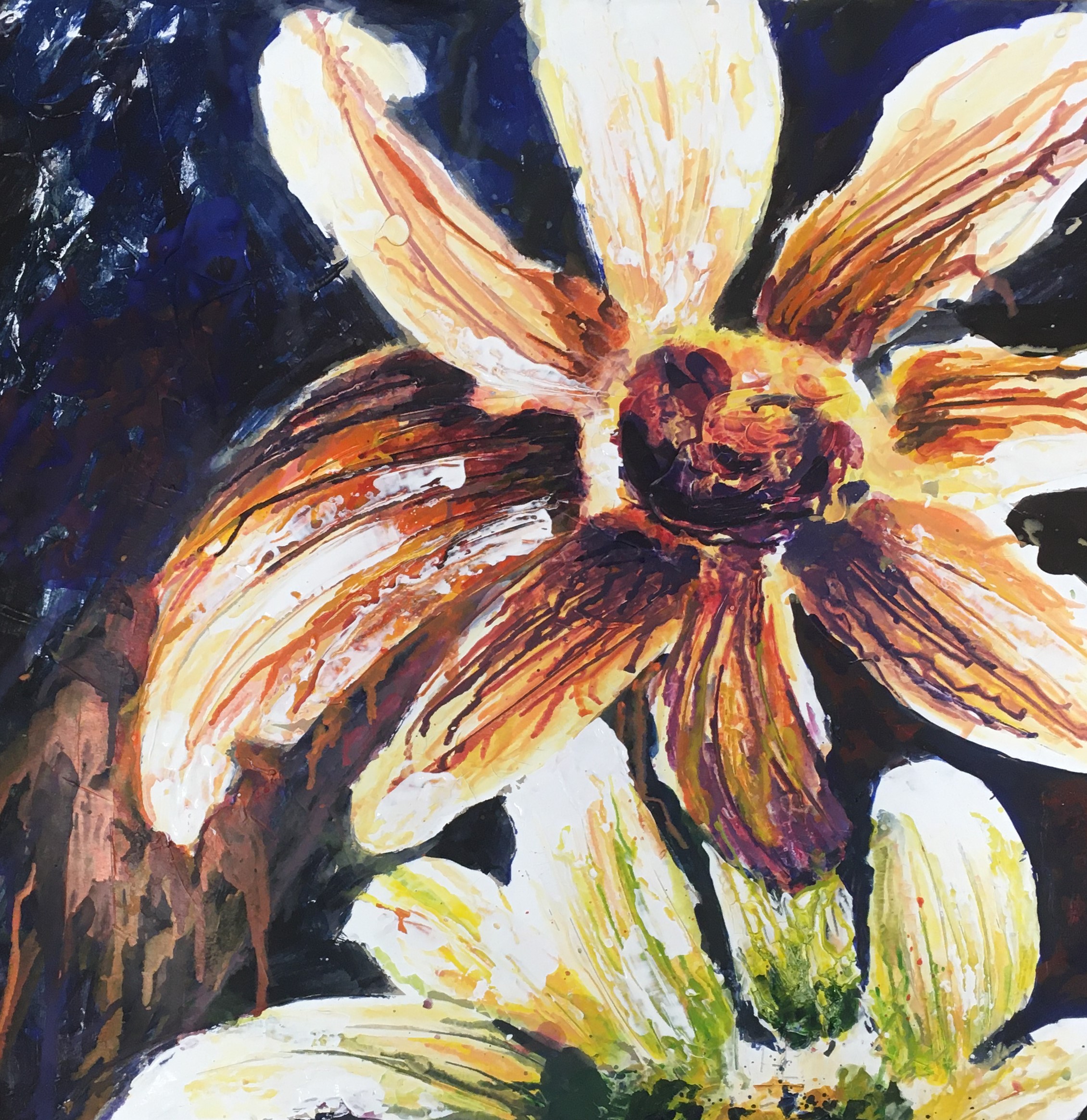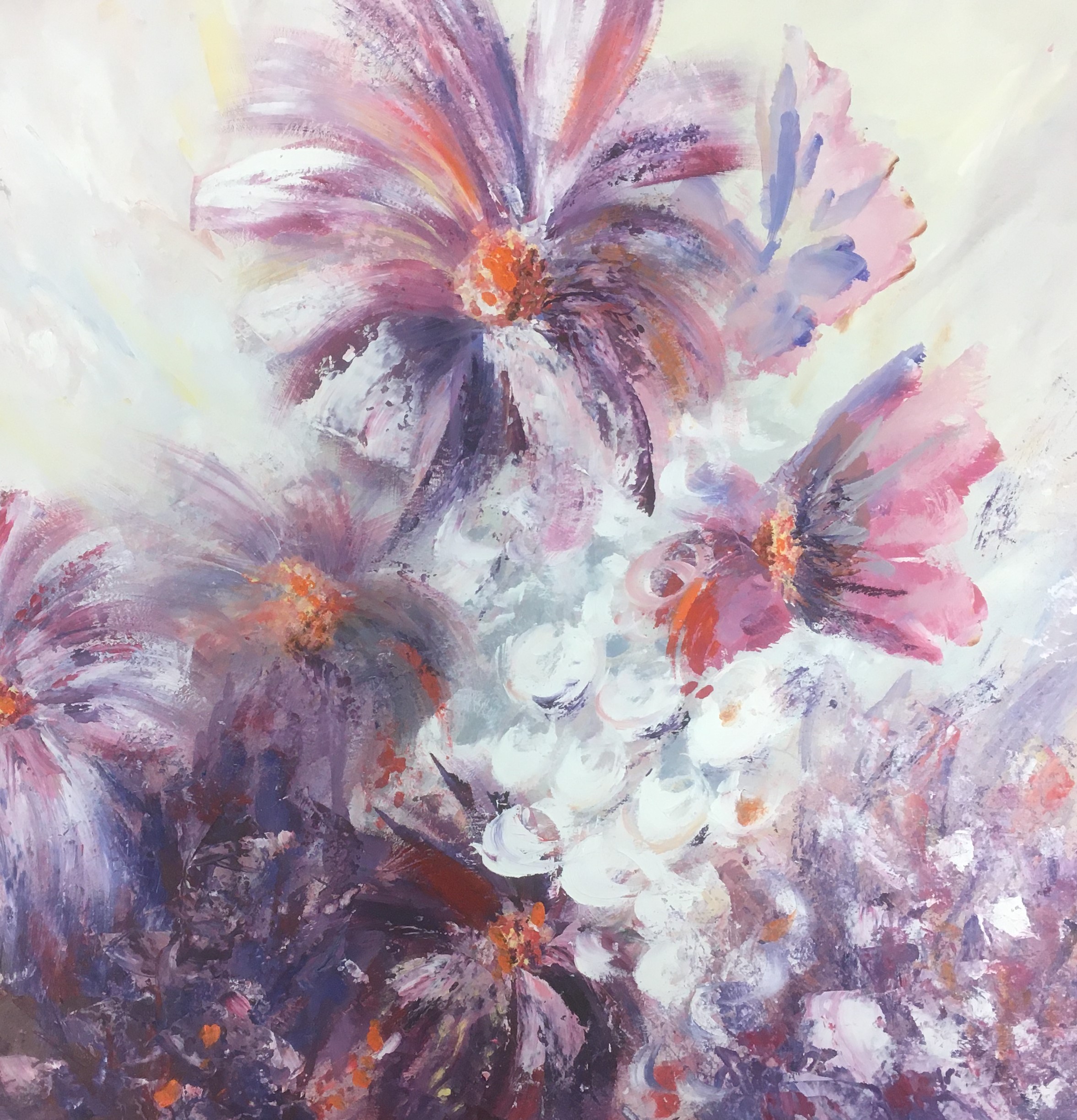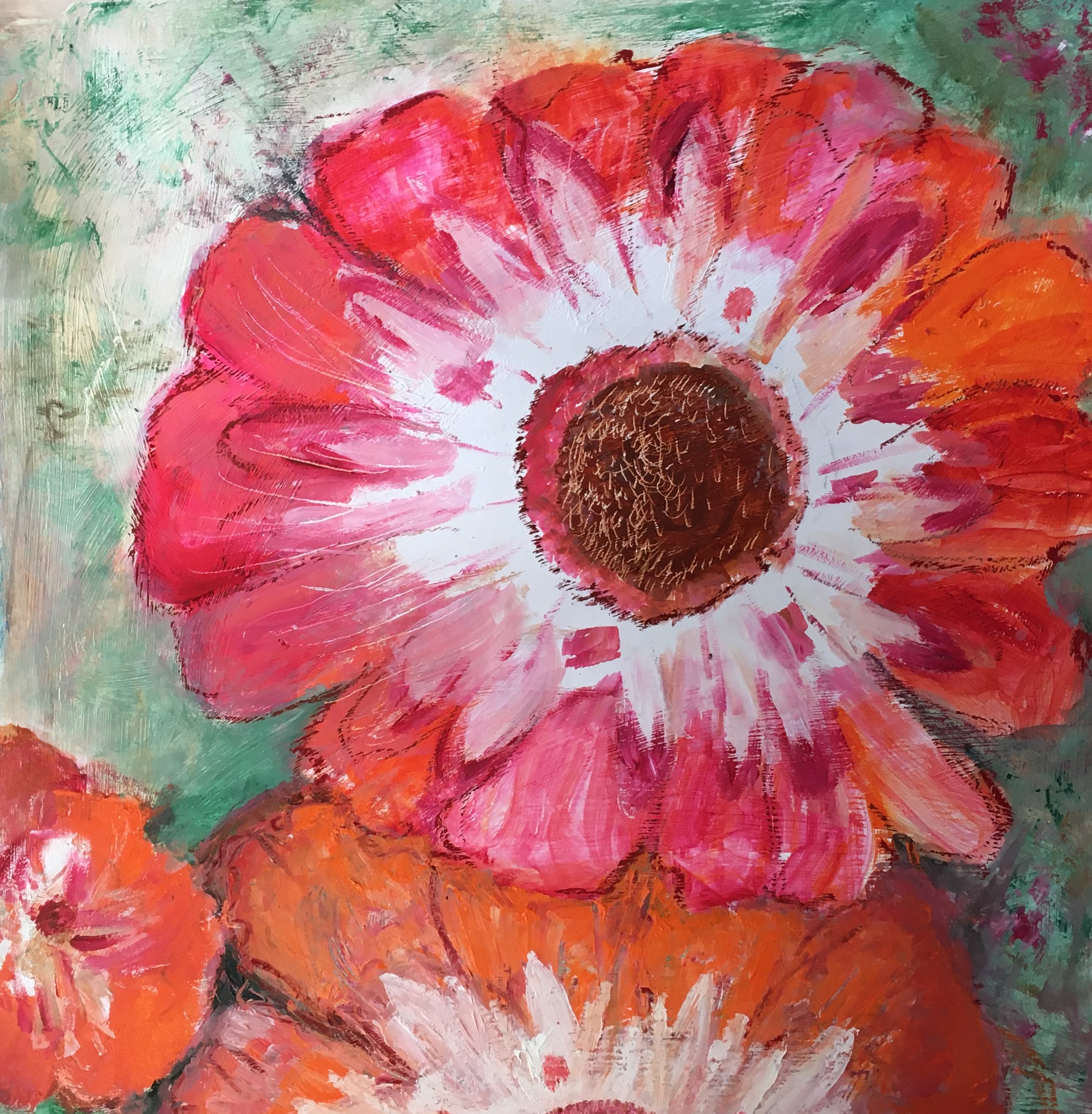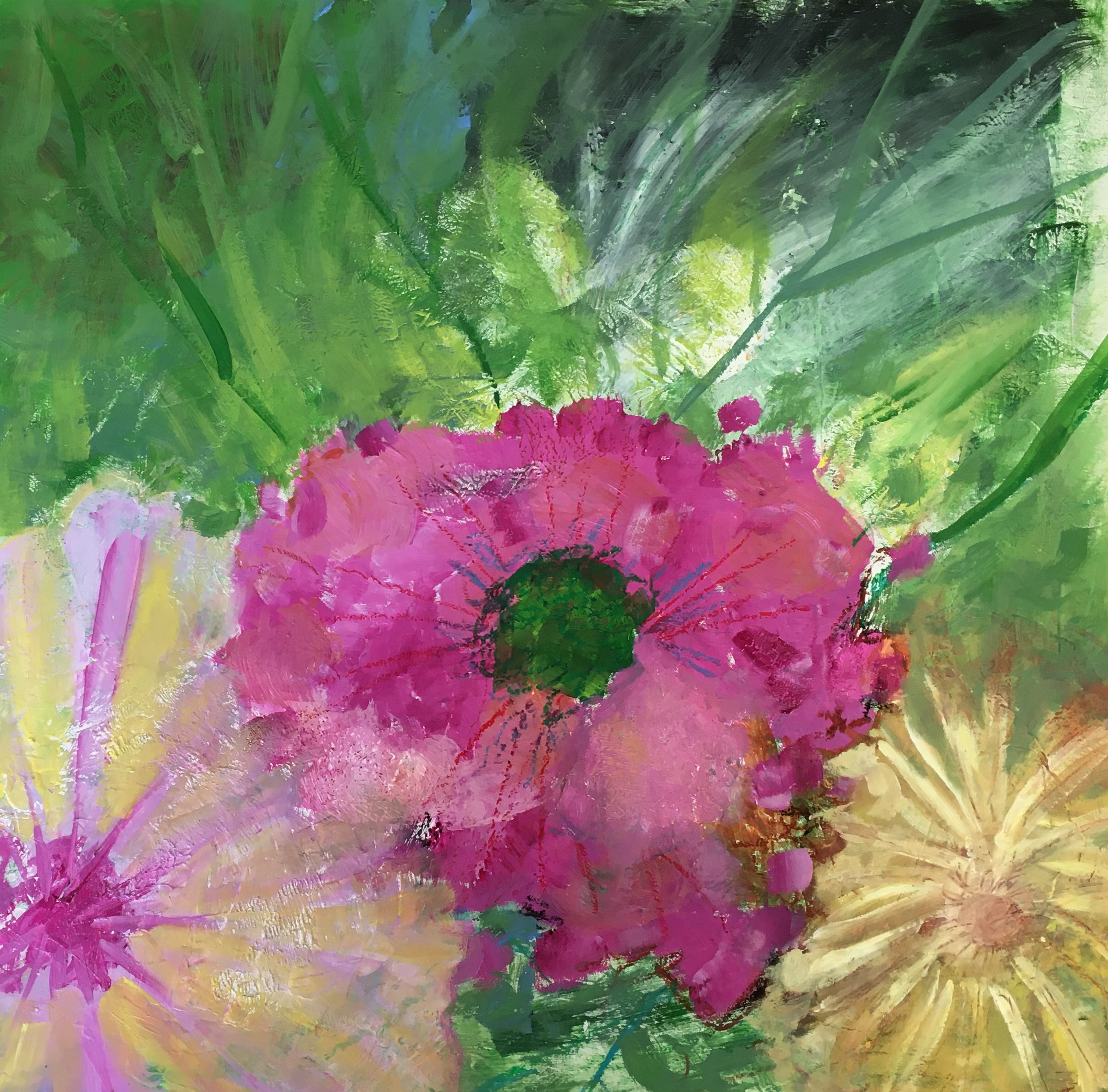 Extrait d’un bouquet de fleur – Travail à la brosse sur fond texturé