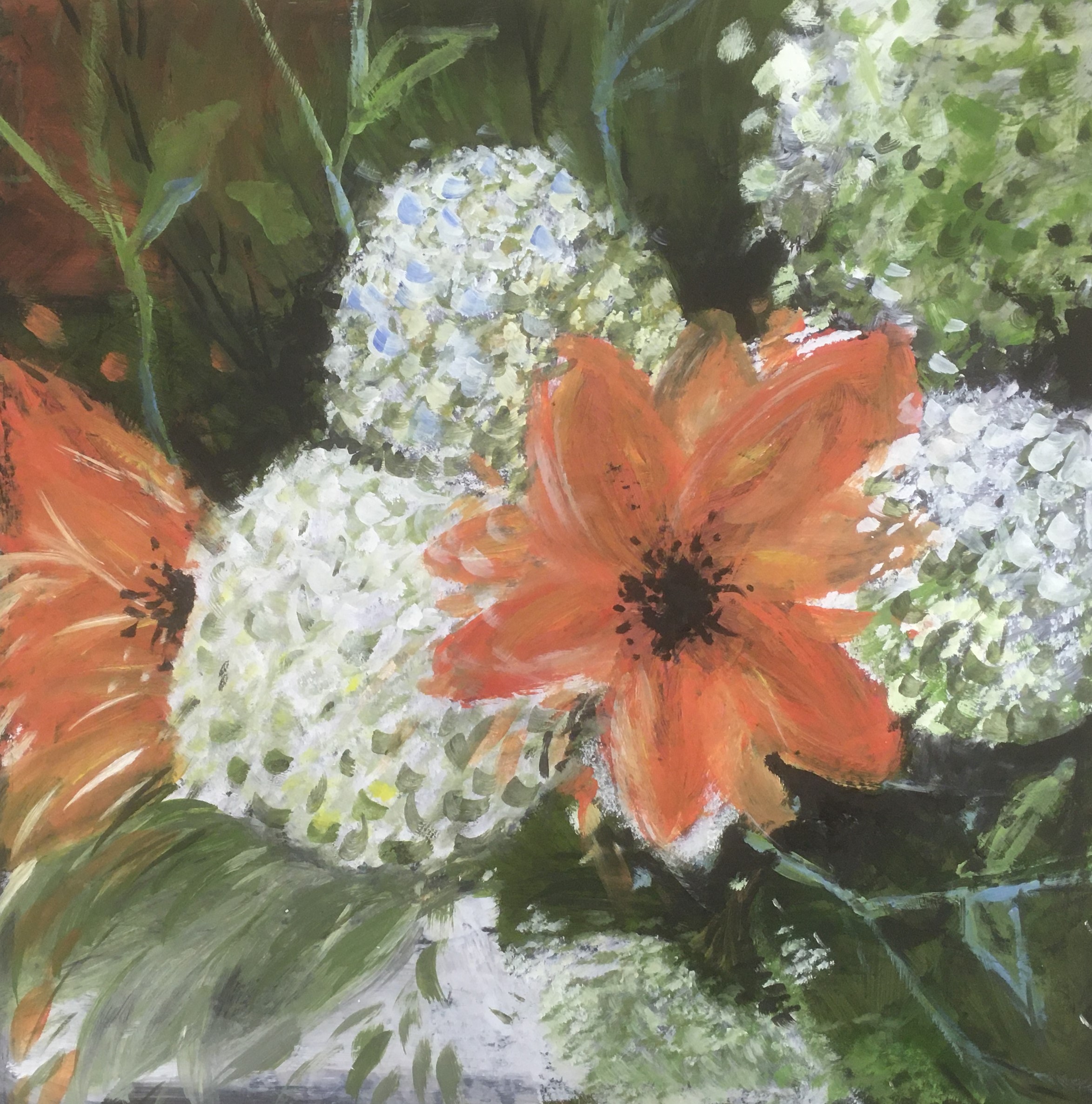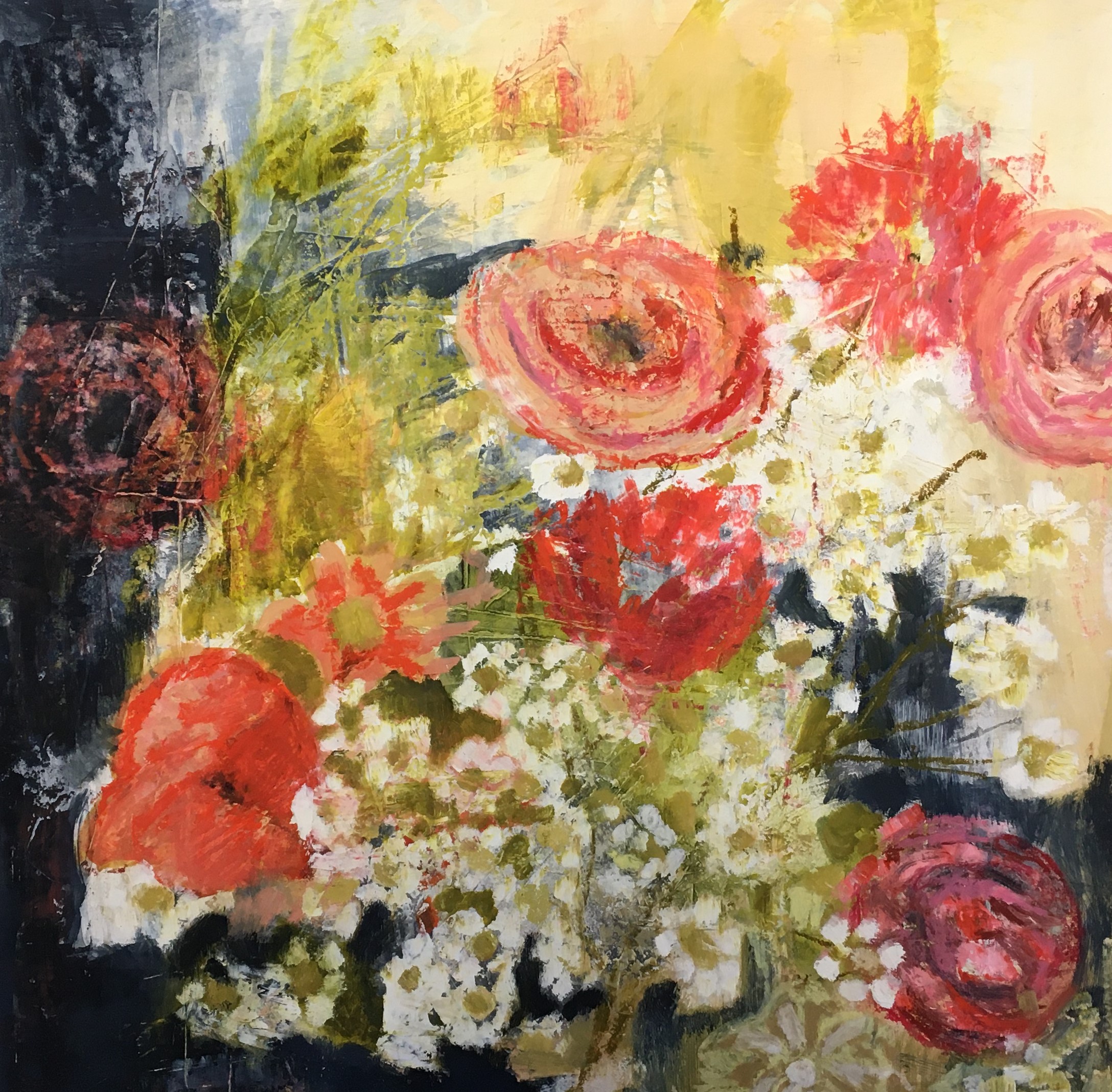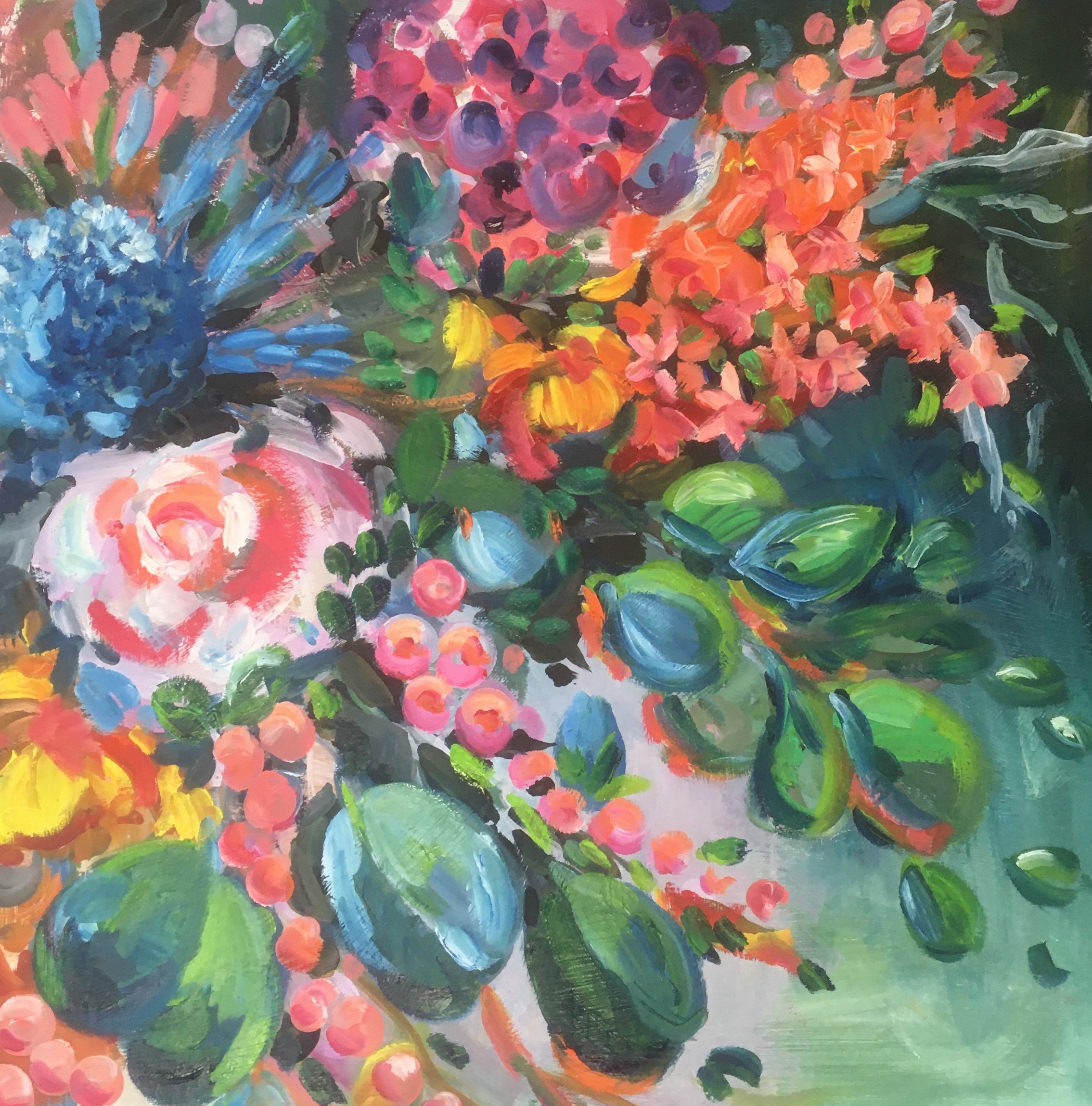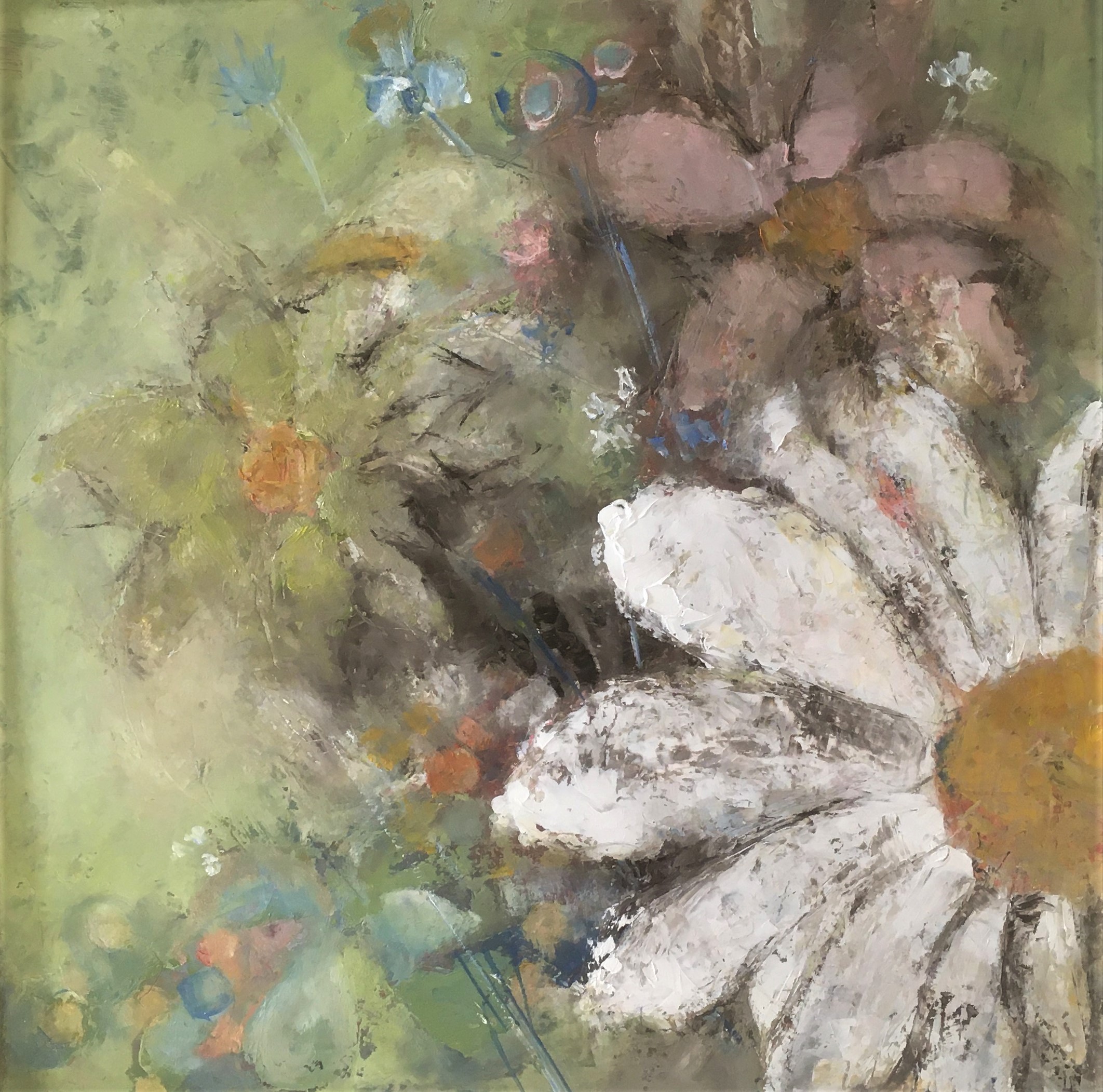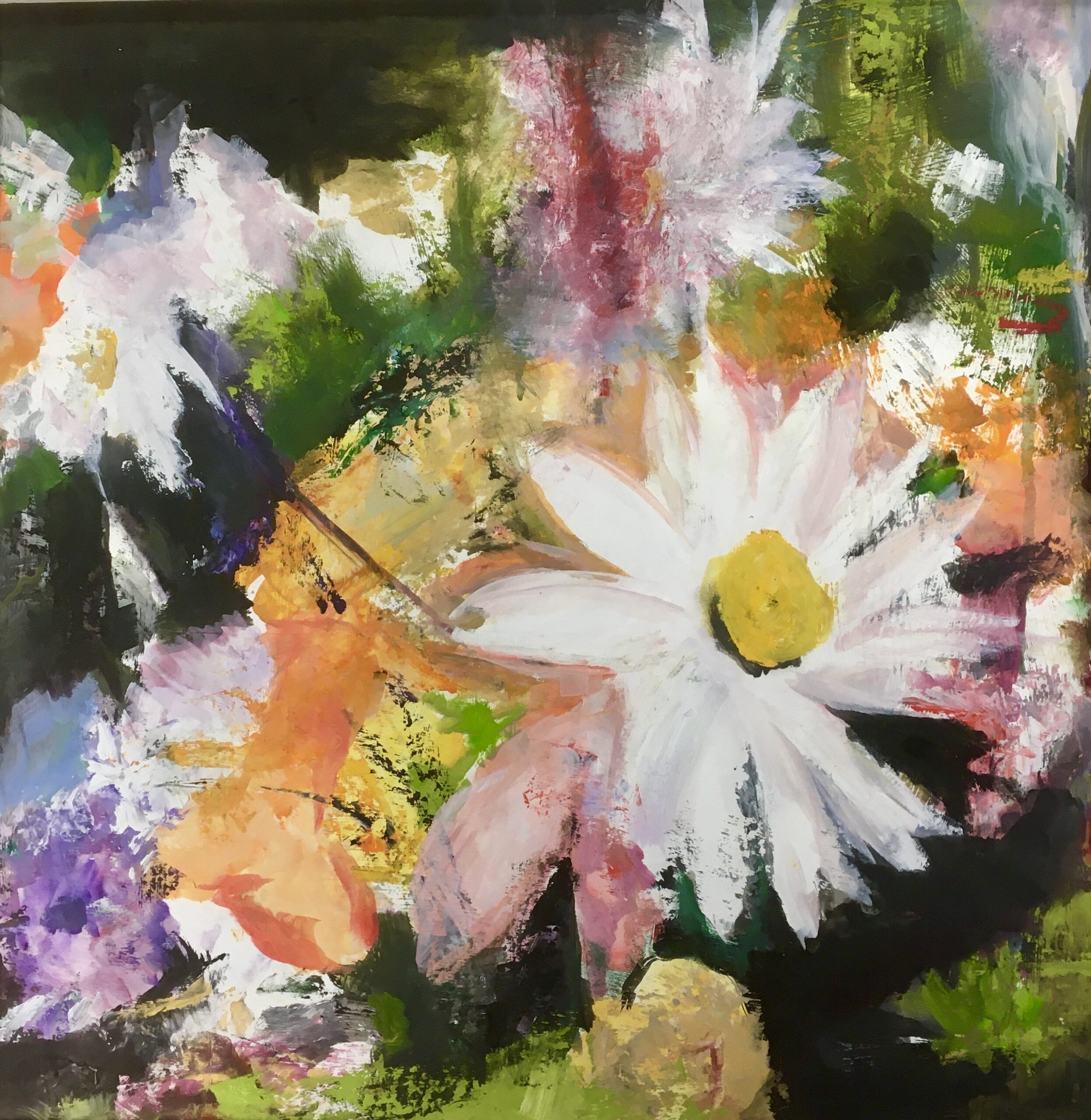 Extrait d’un bouquet de fleur – Travail à la brosse sur fond texturé
