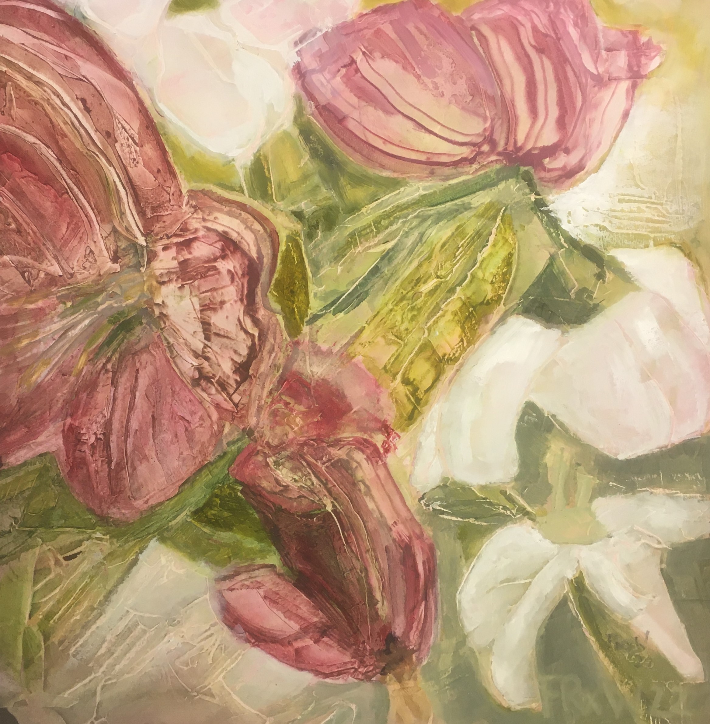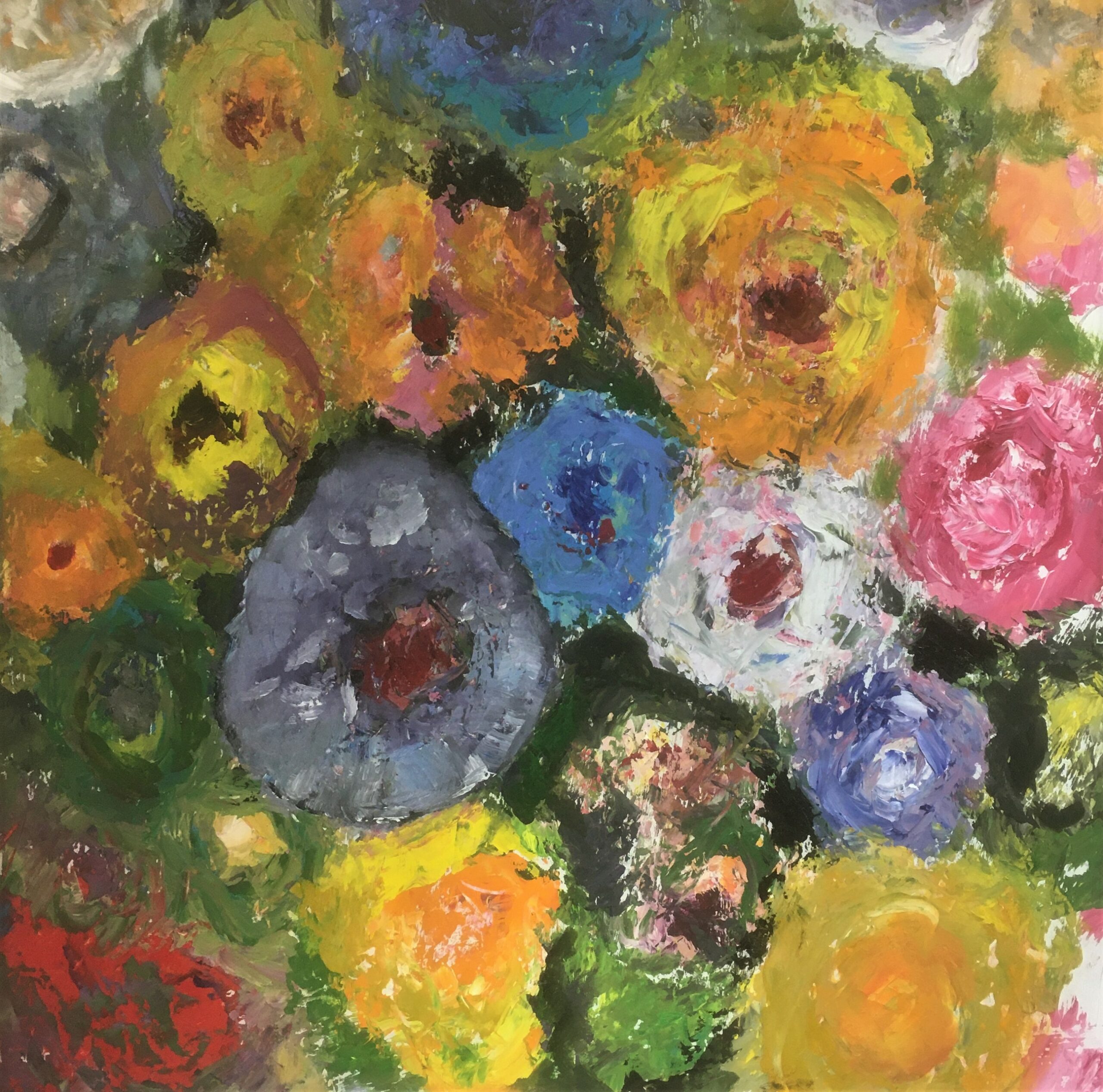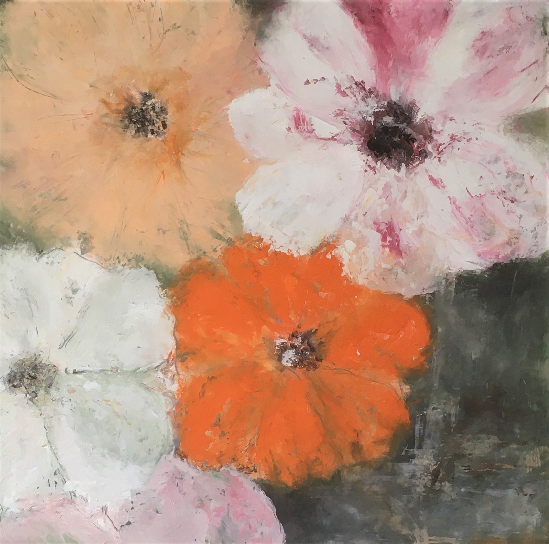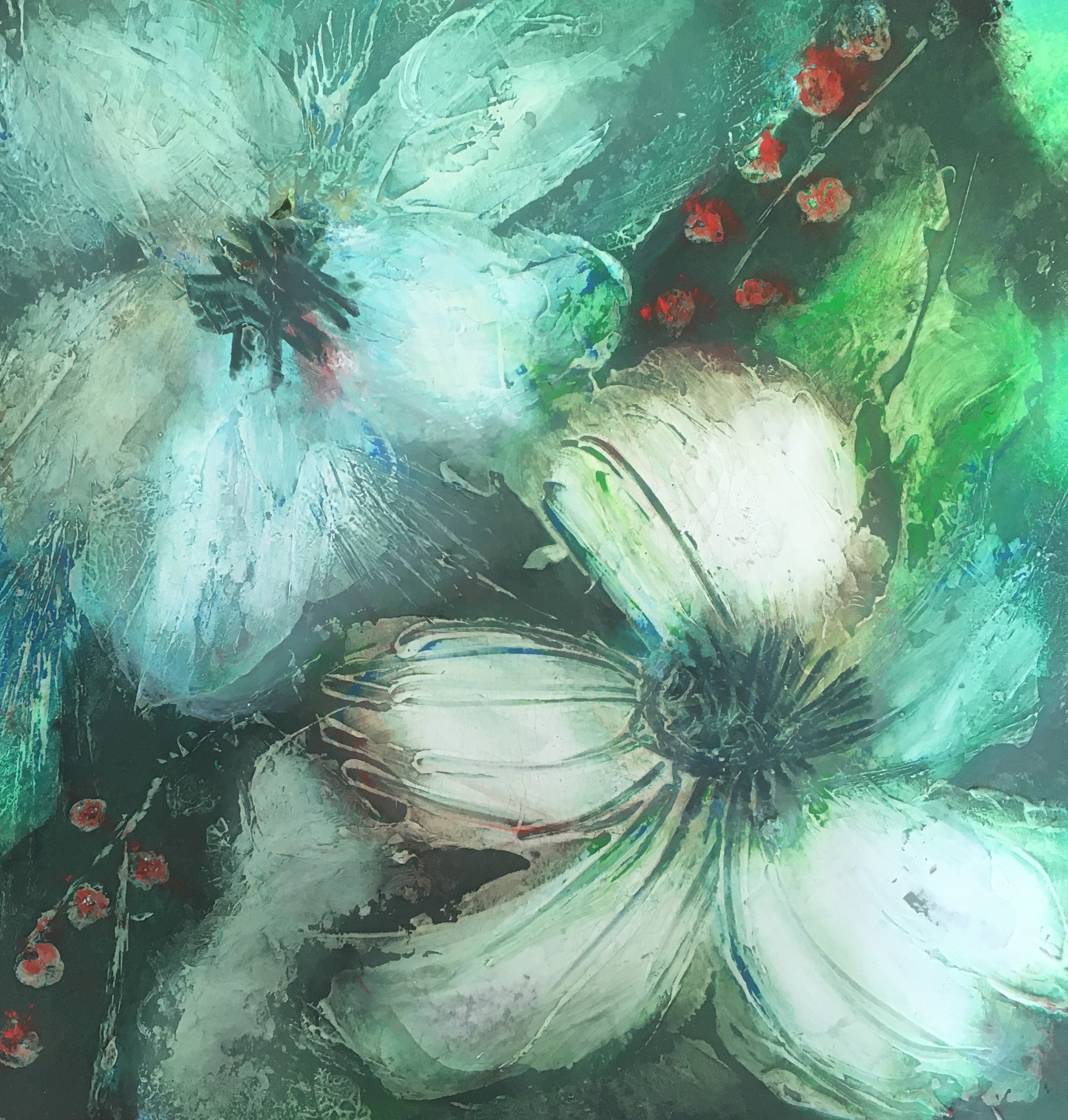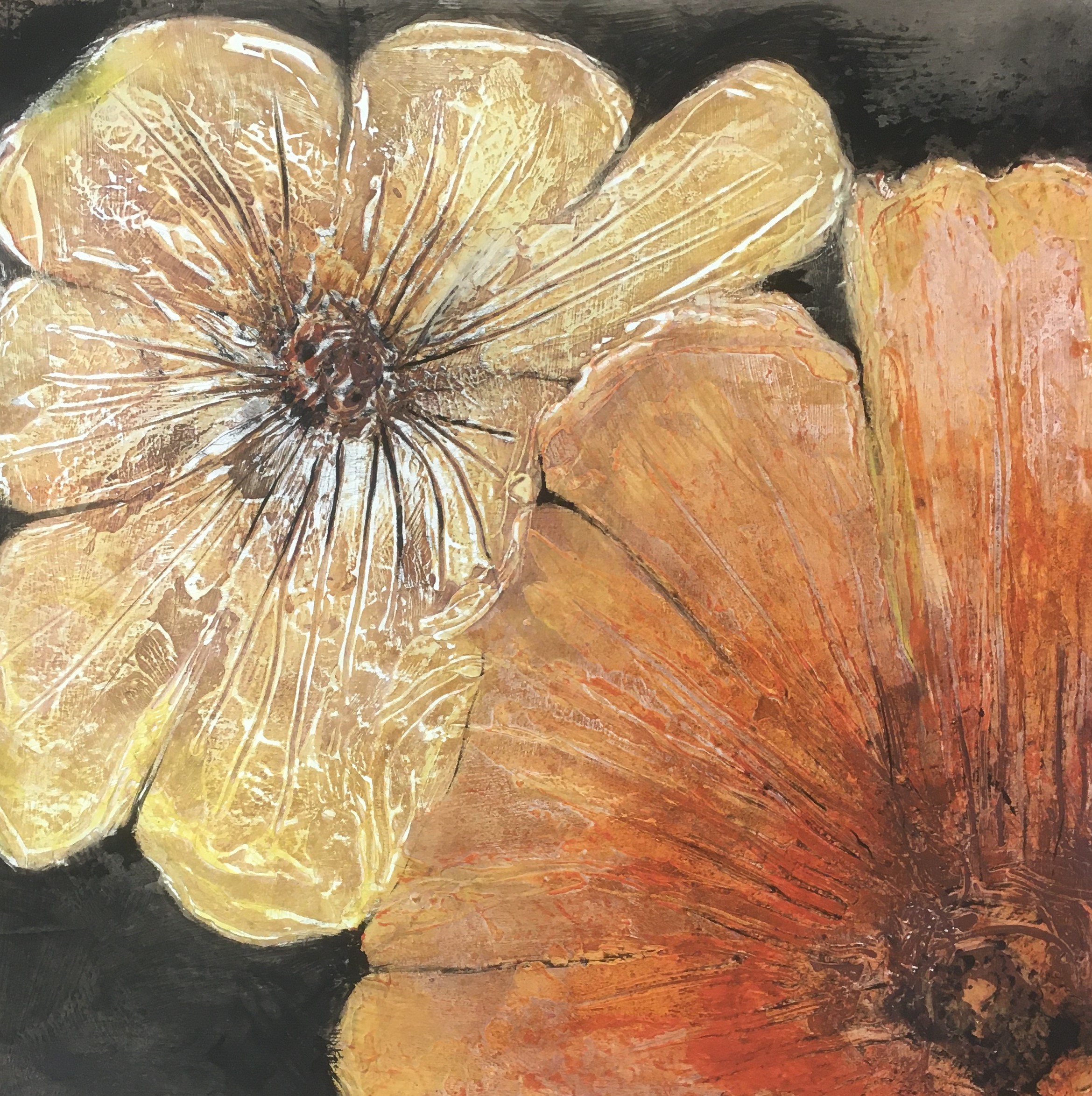 Extrait d’un bouquet de fleur – Travail à la brosse sur fond texturé