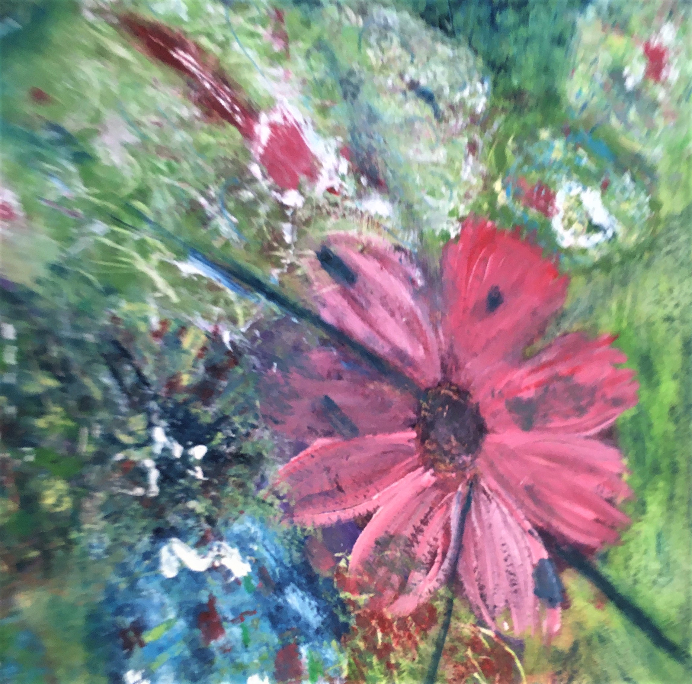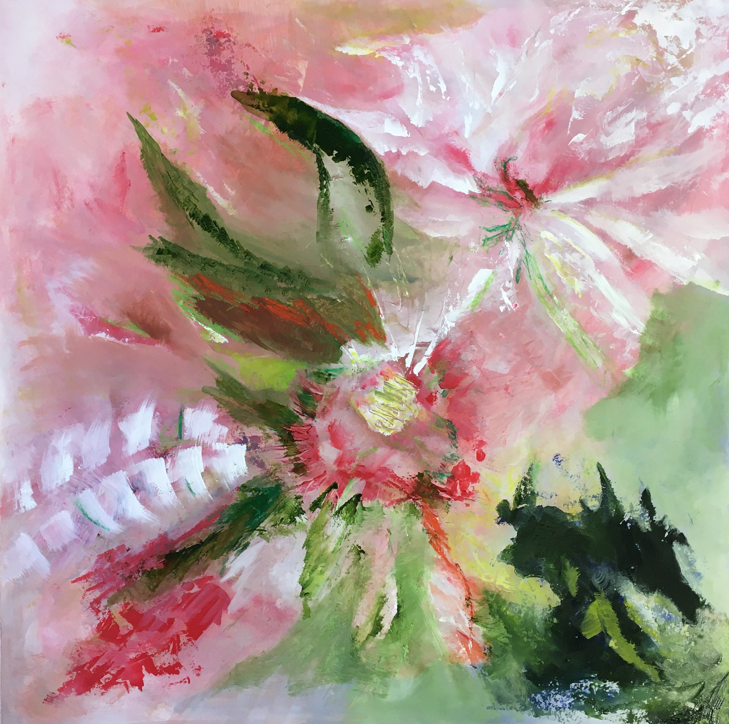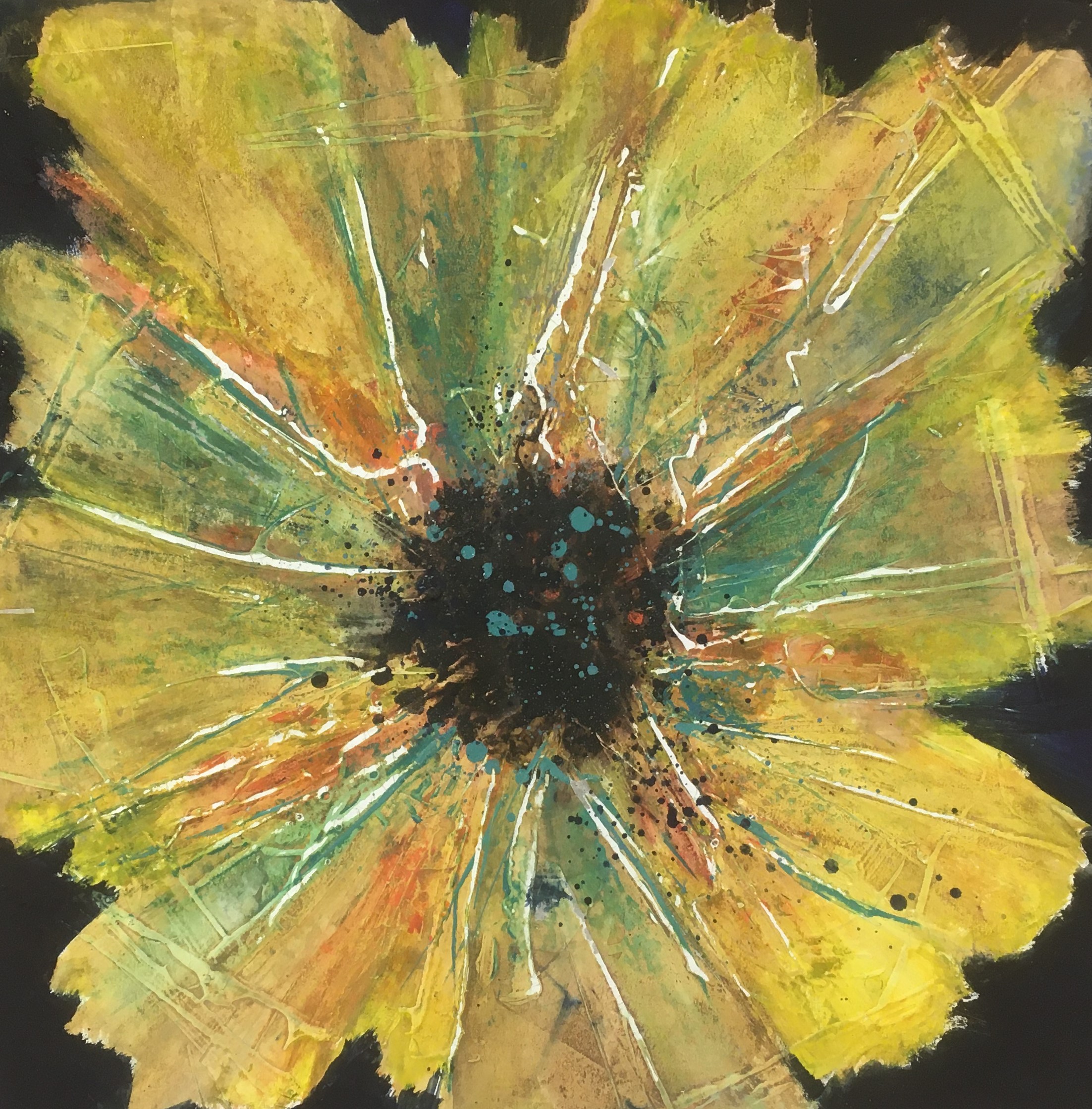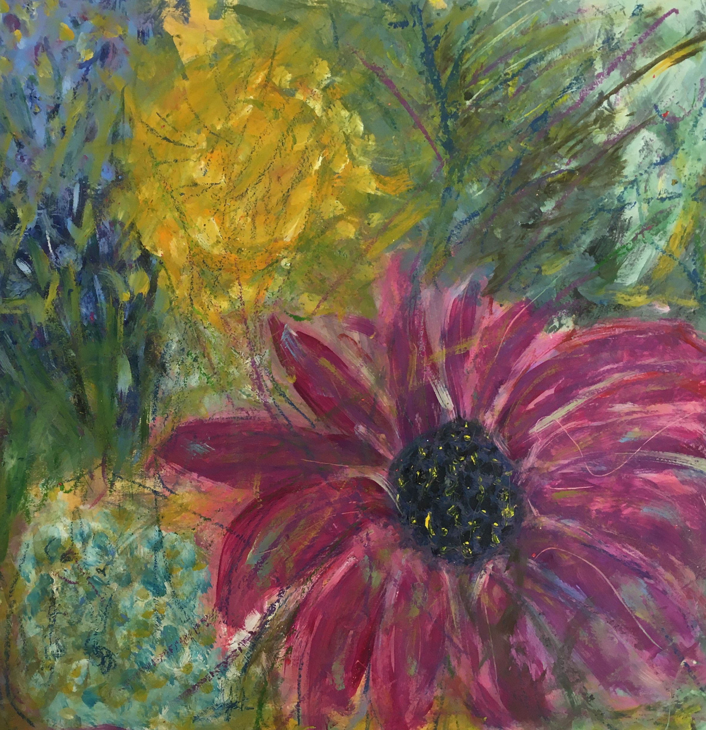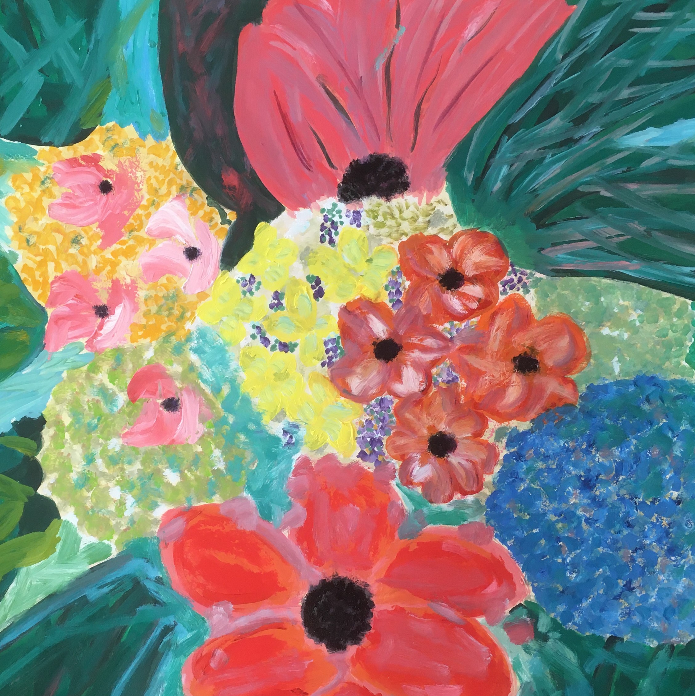 Extrait d’un bouquet de fleur – Travail à la brosse sur fond texturé