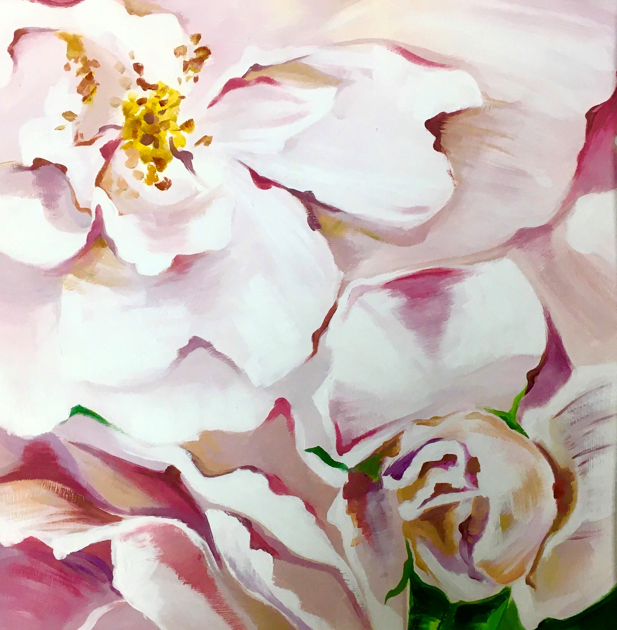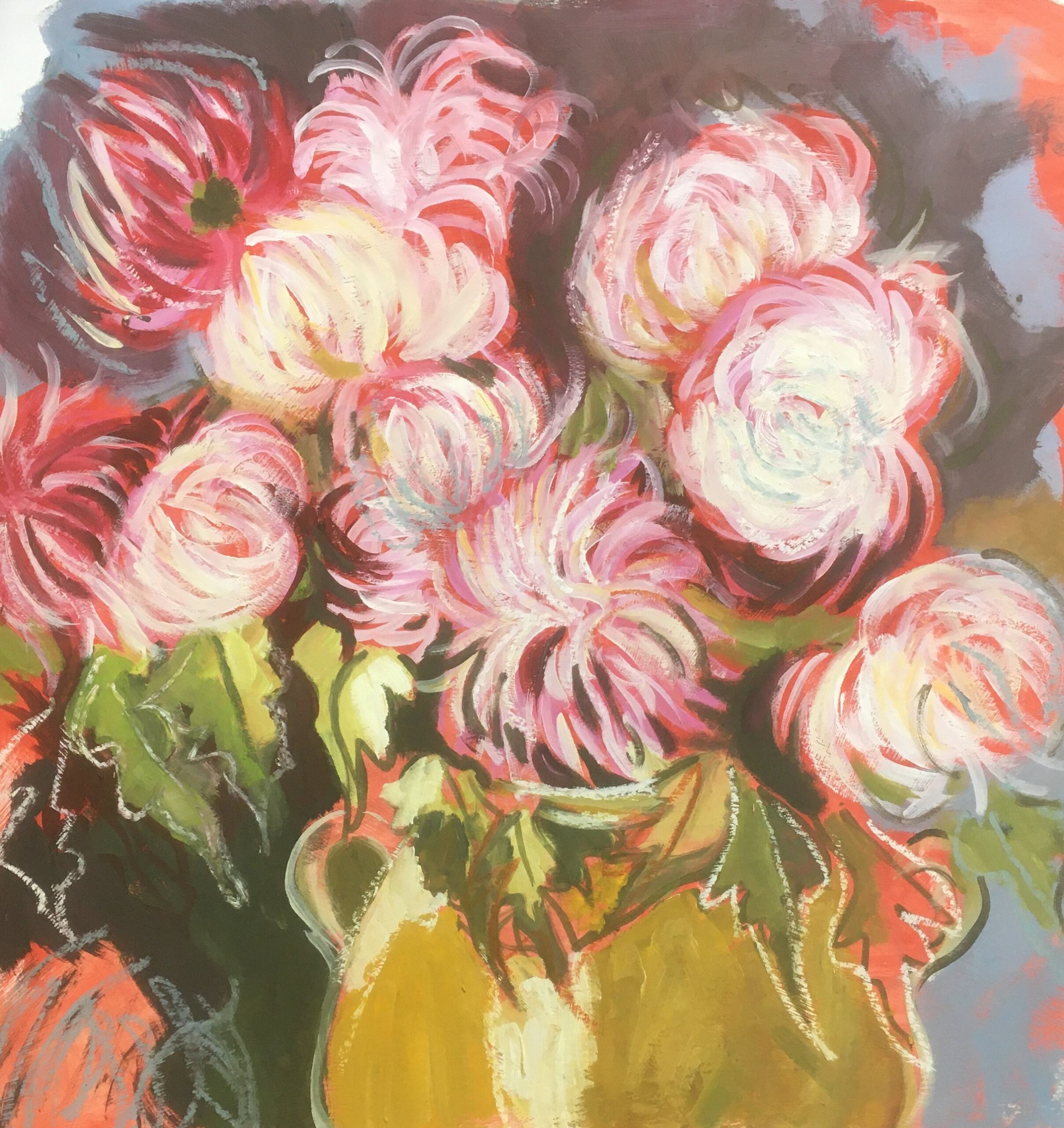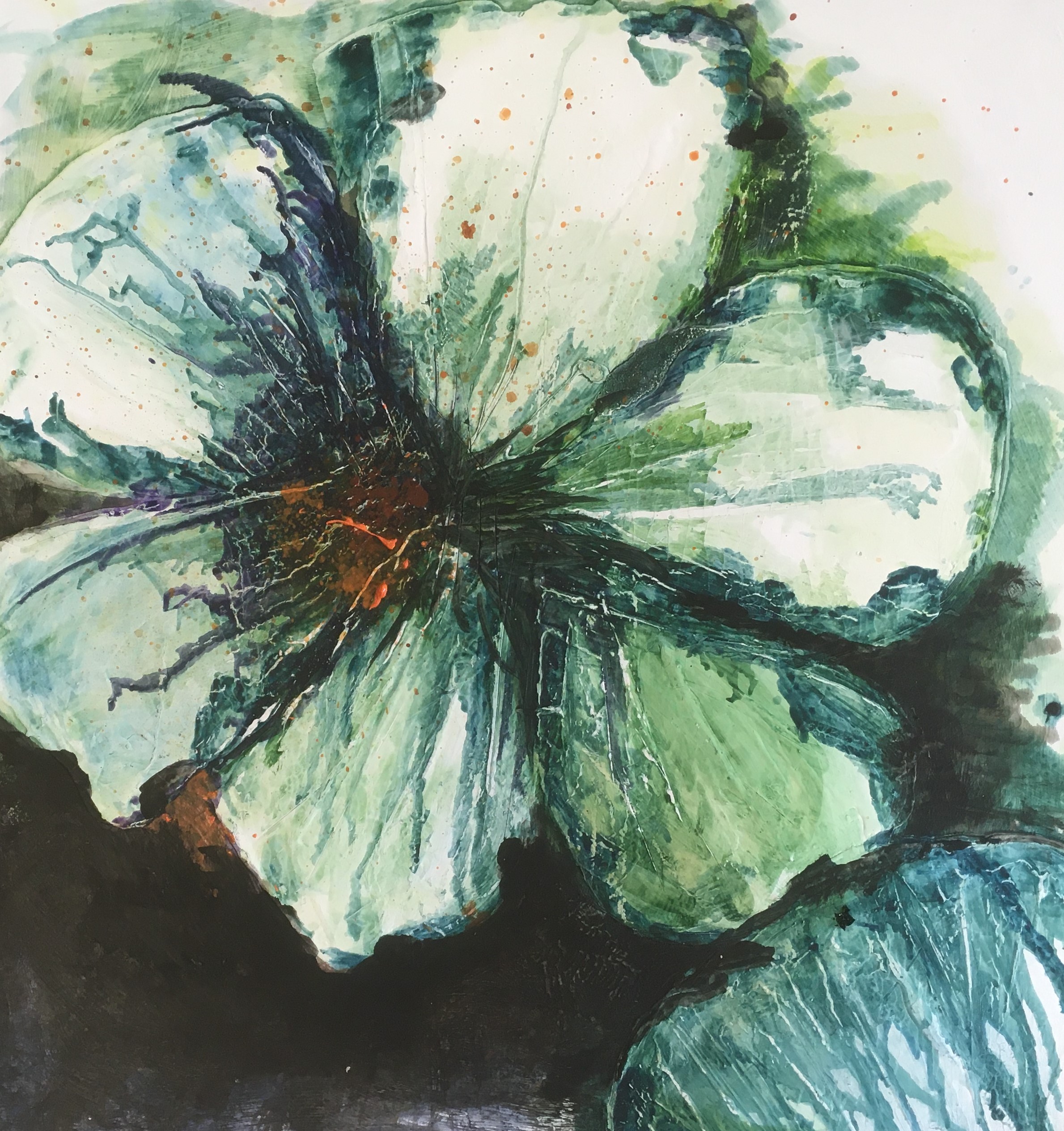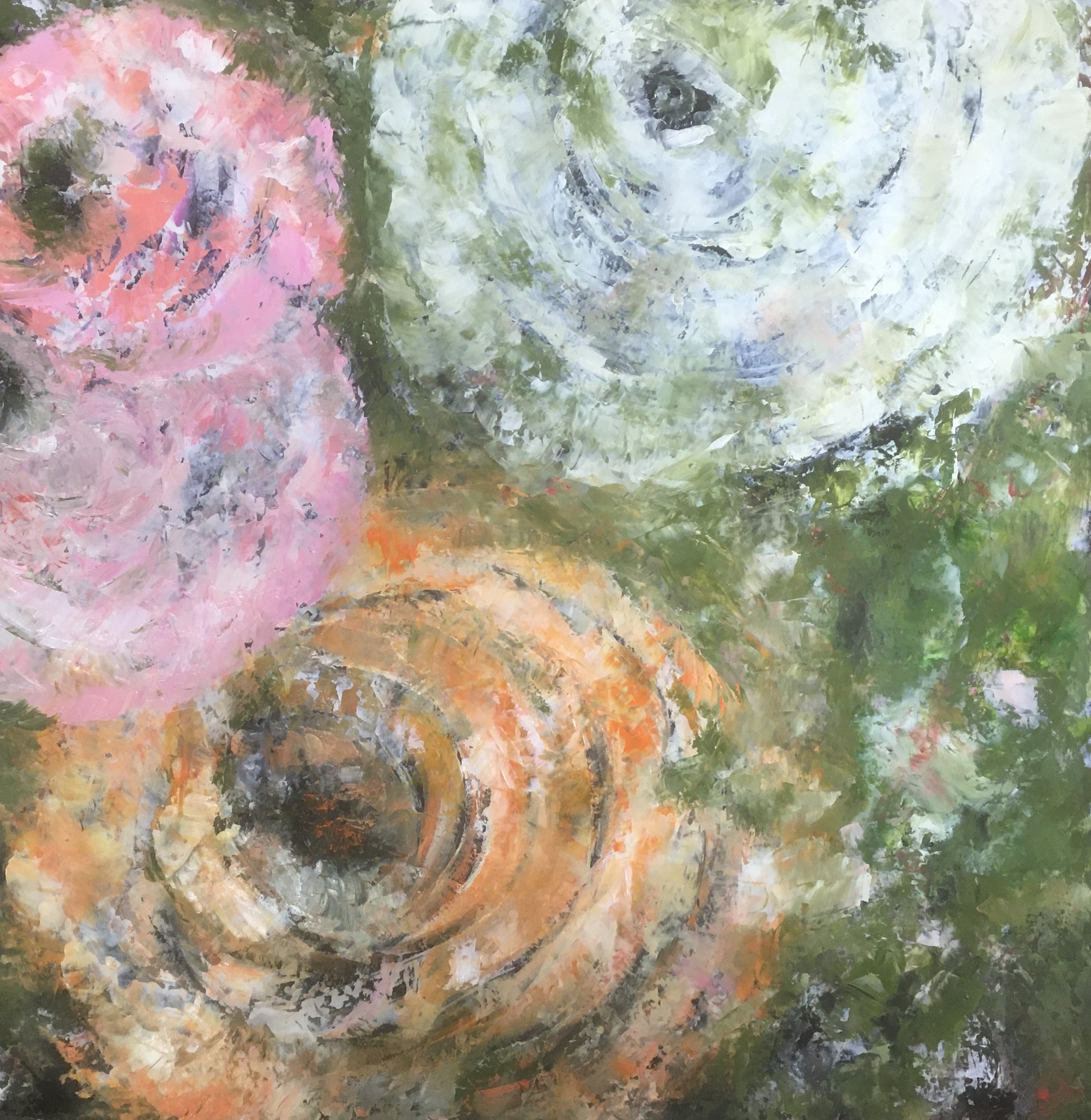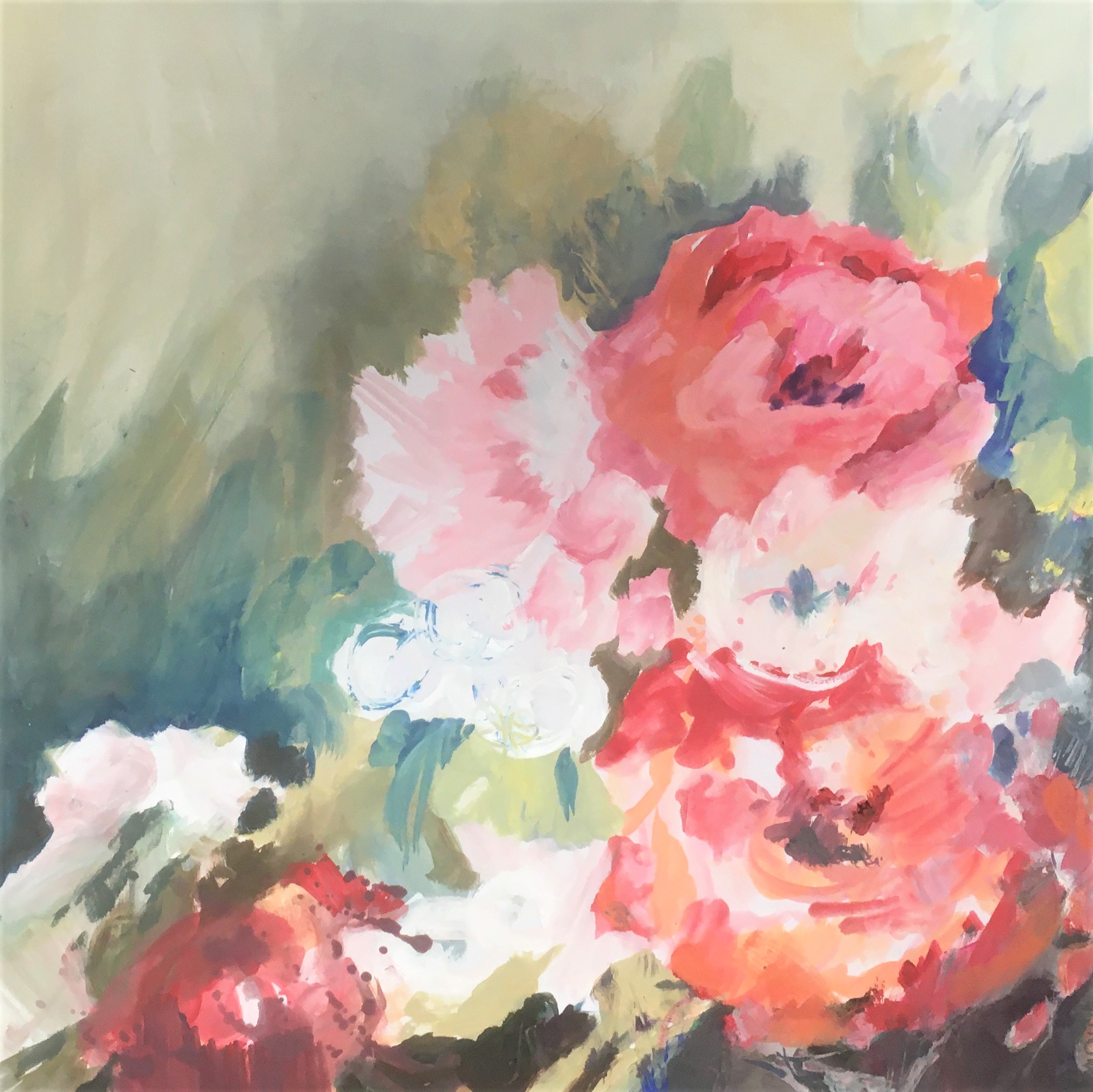 Extrait d’un bouquet de fleur – Travail à la brosse sur fond texturé