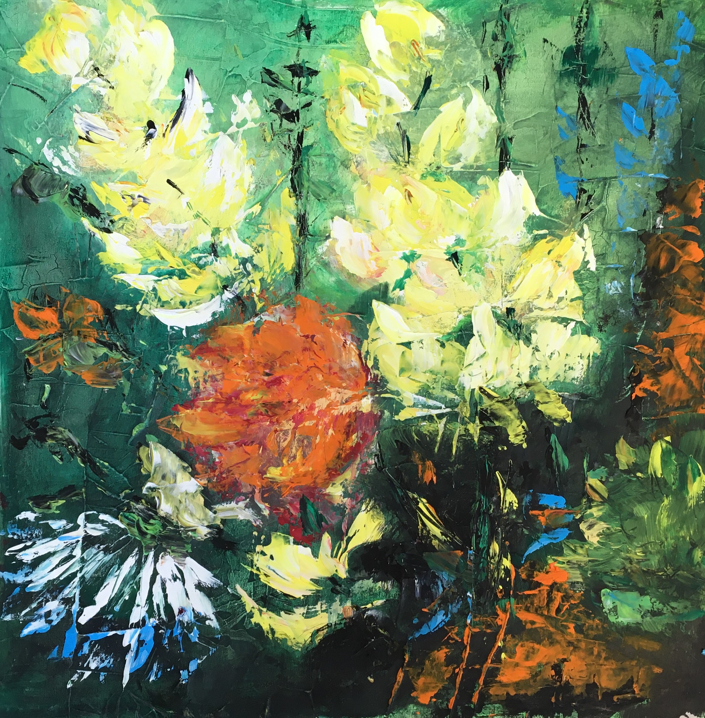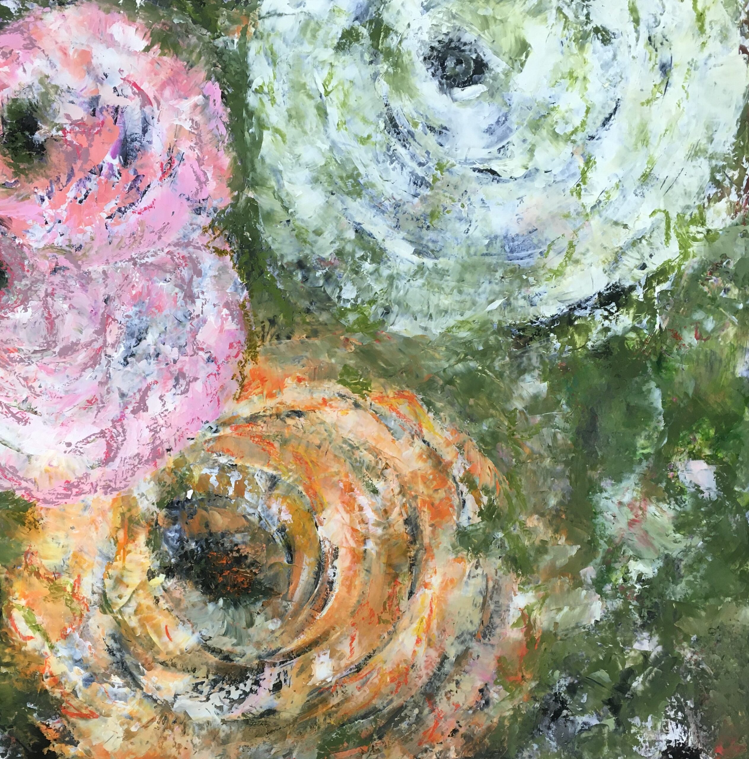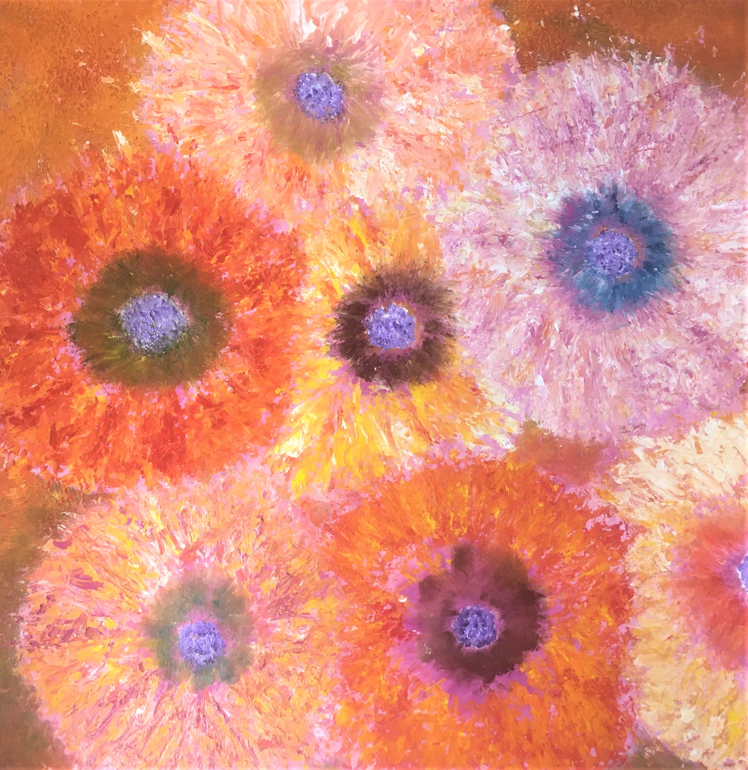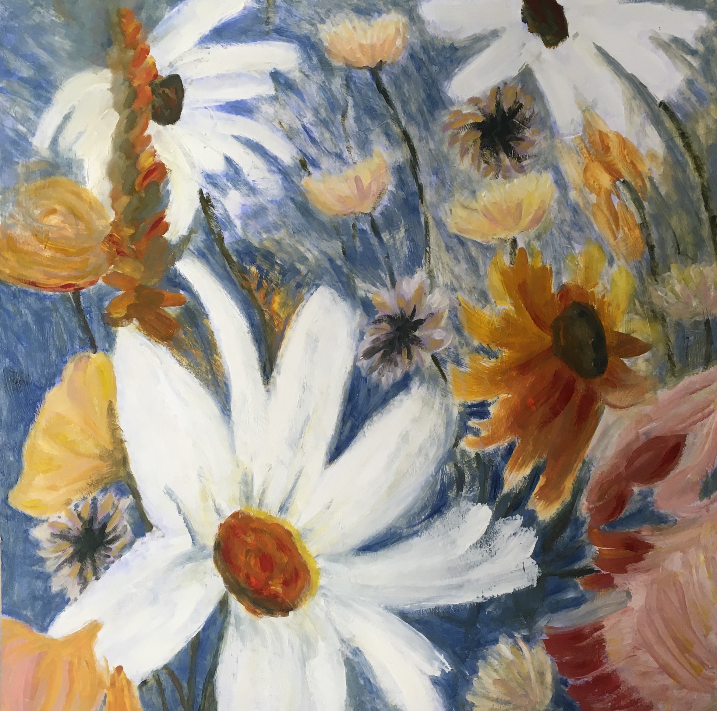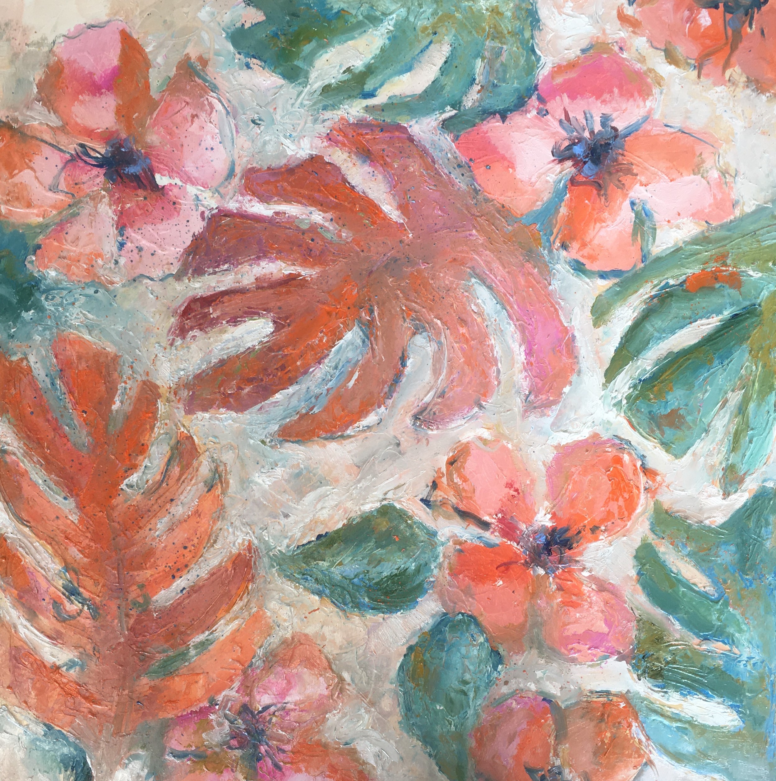 Extrait d’un bouquet de fleur – Travail à la brosse sur fond texturé