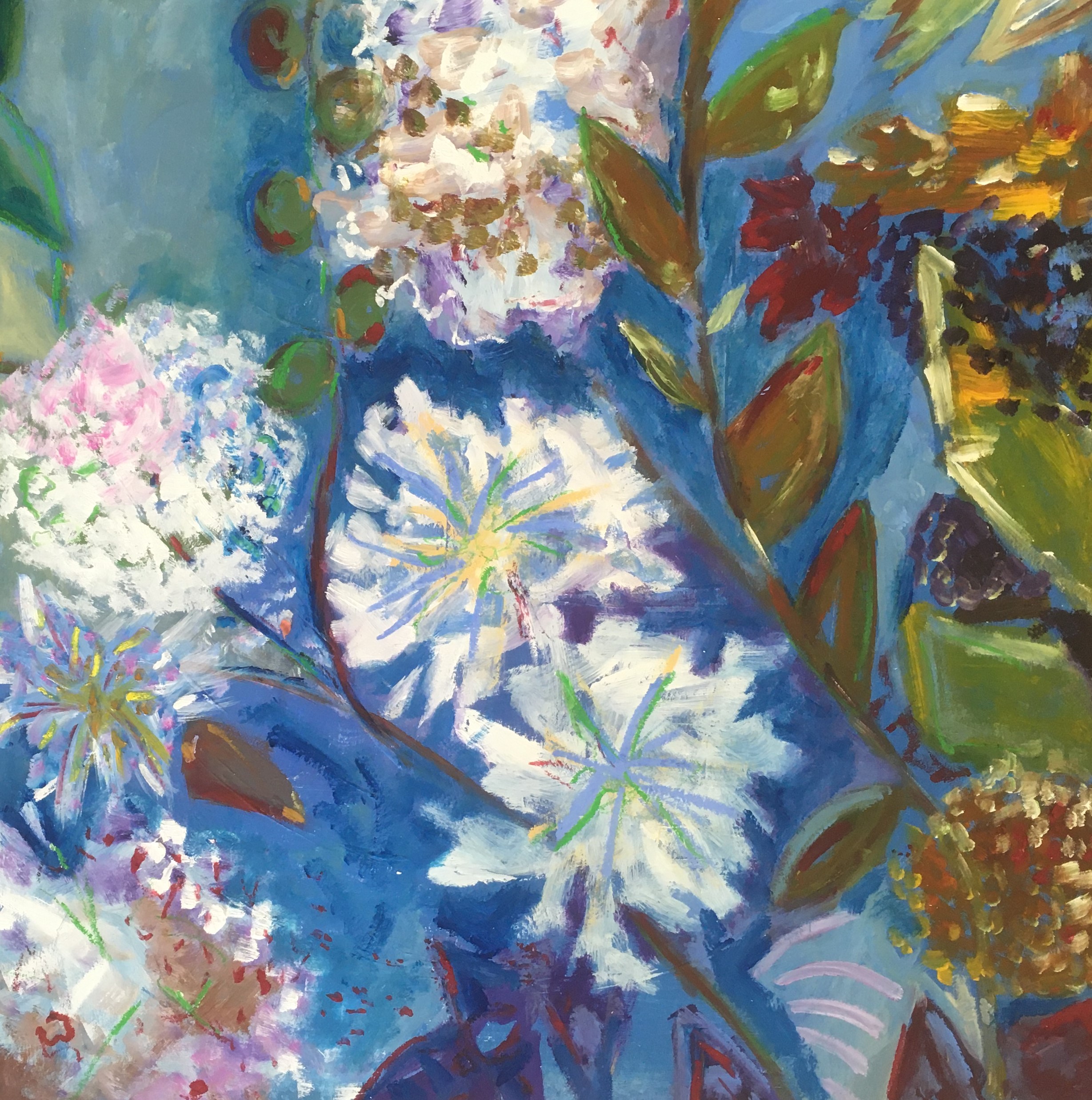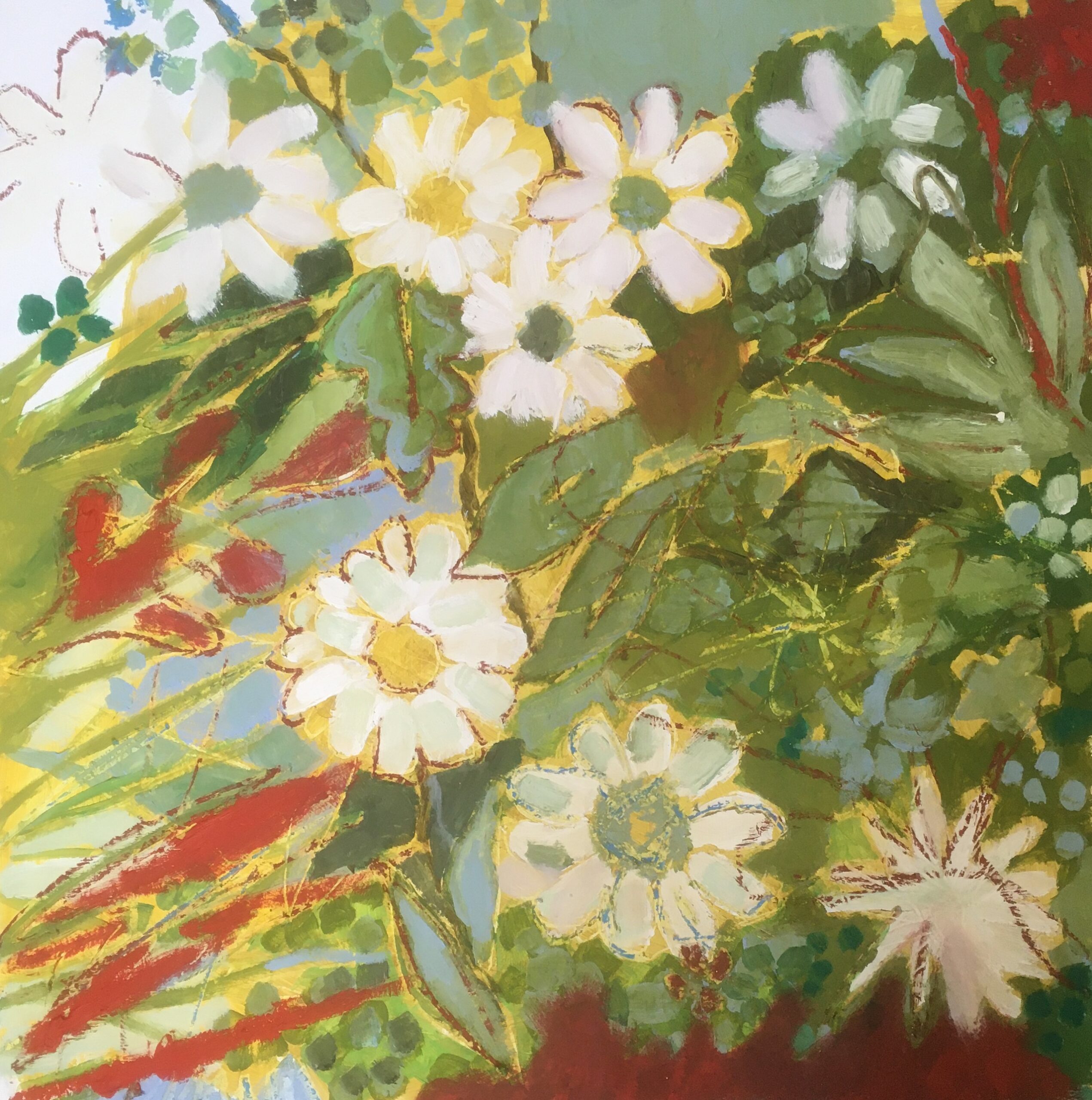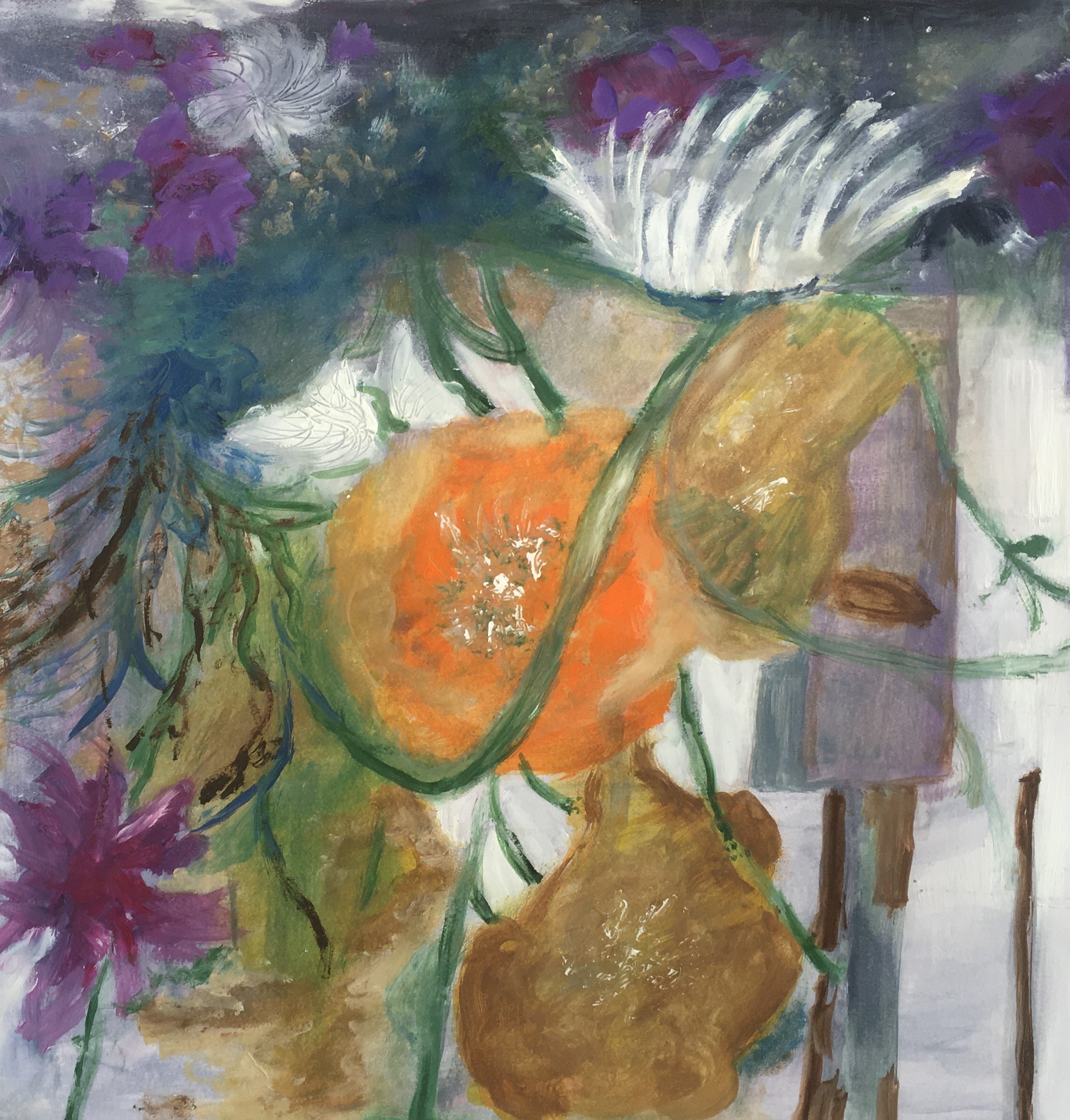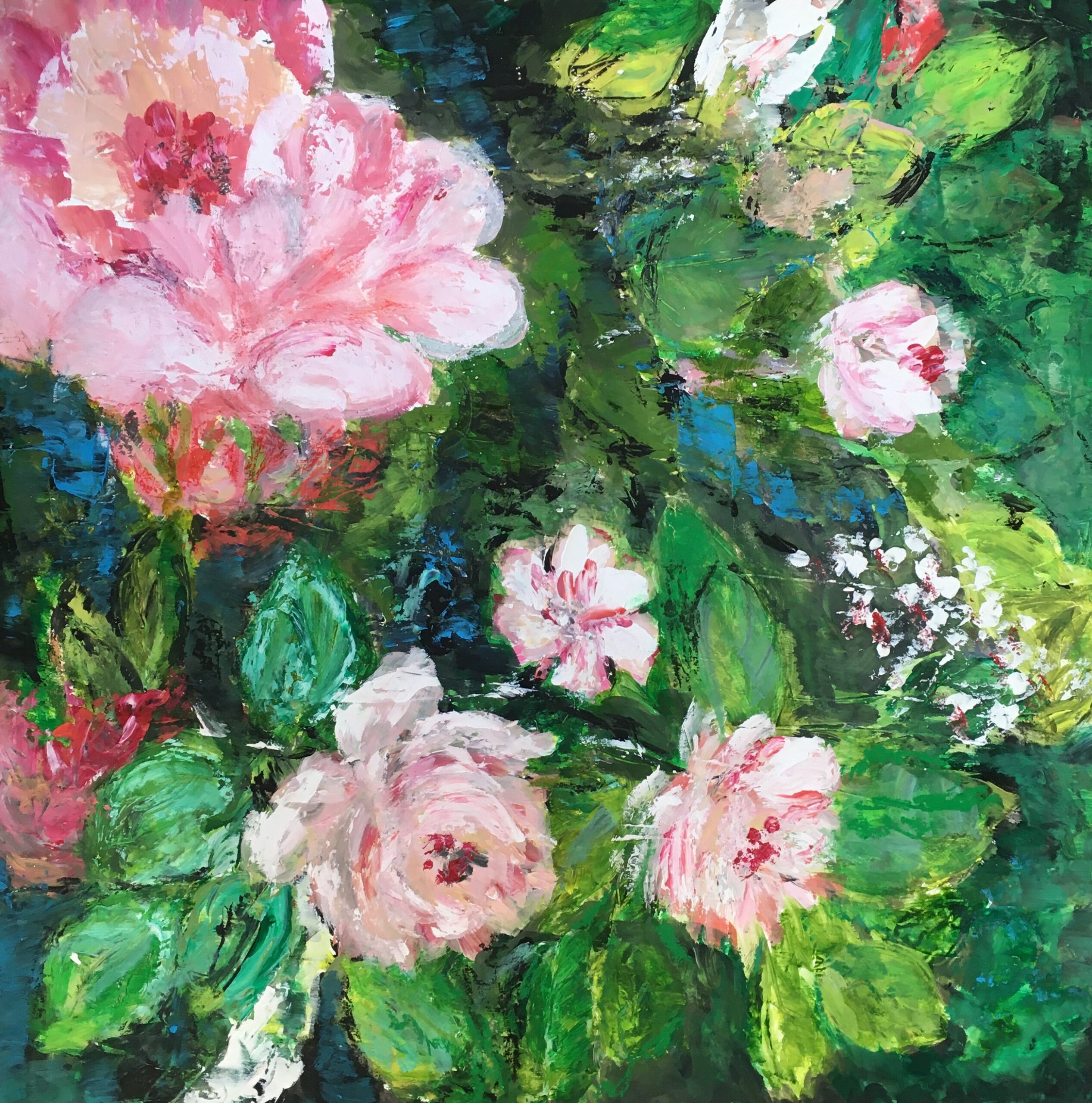 Extrait d’un bouquet de fleur – Travail à la brosse sur fond texturé