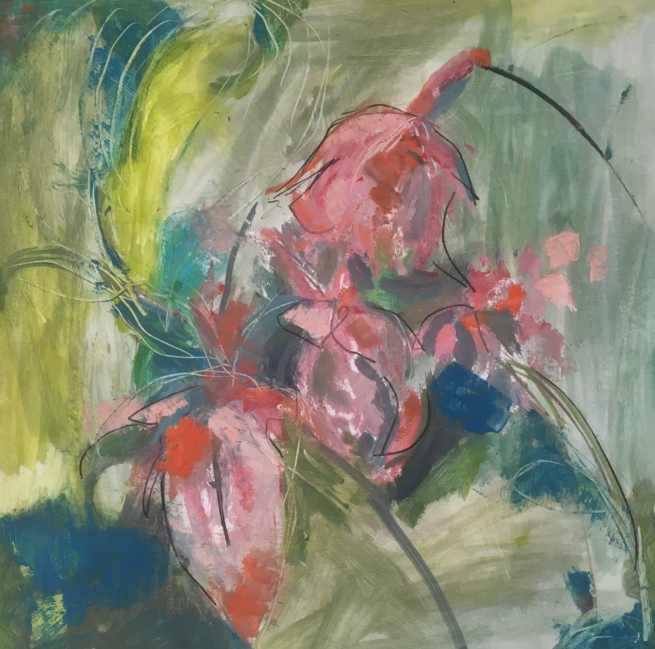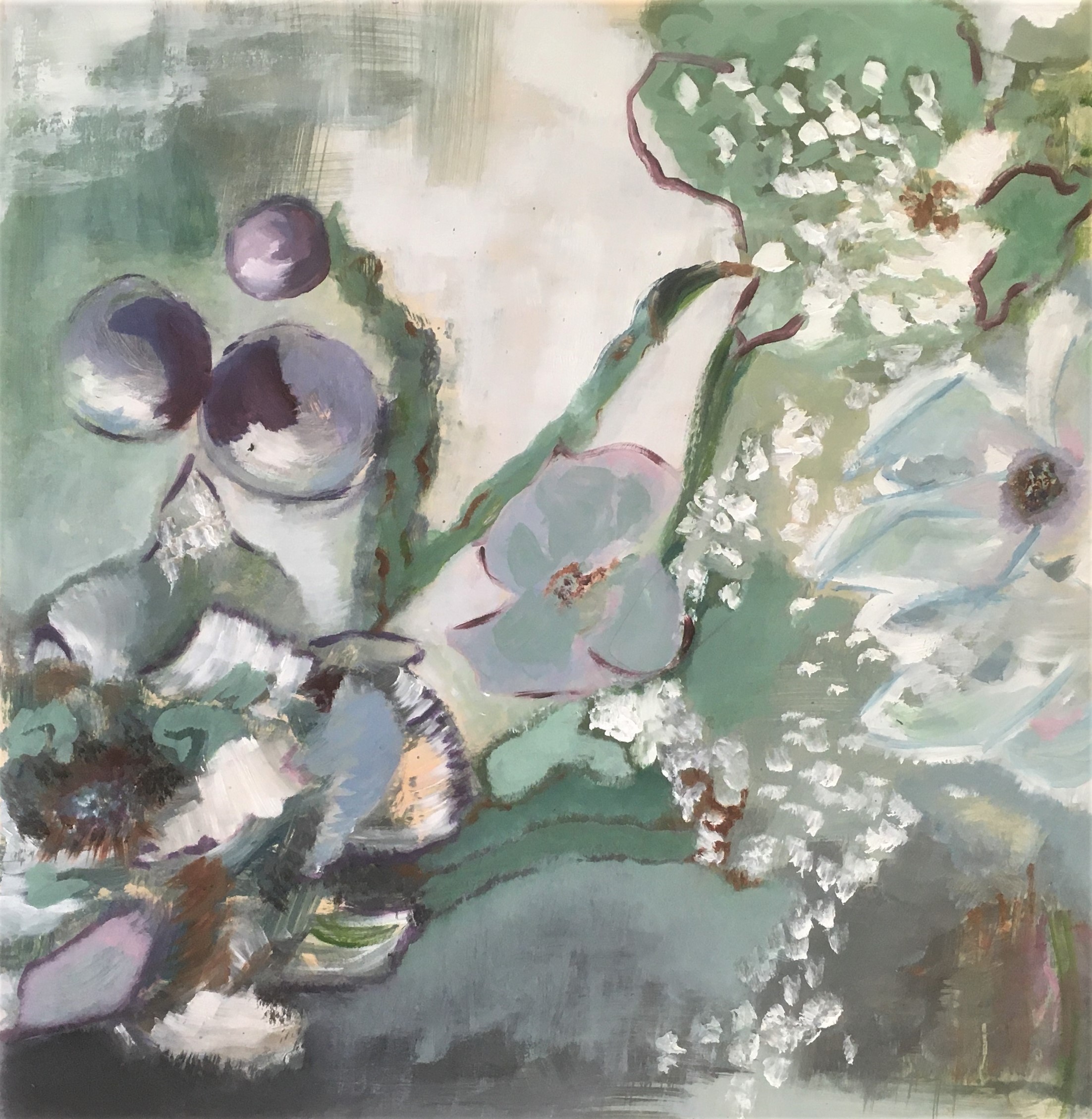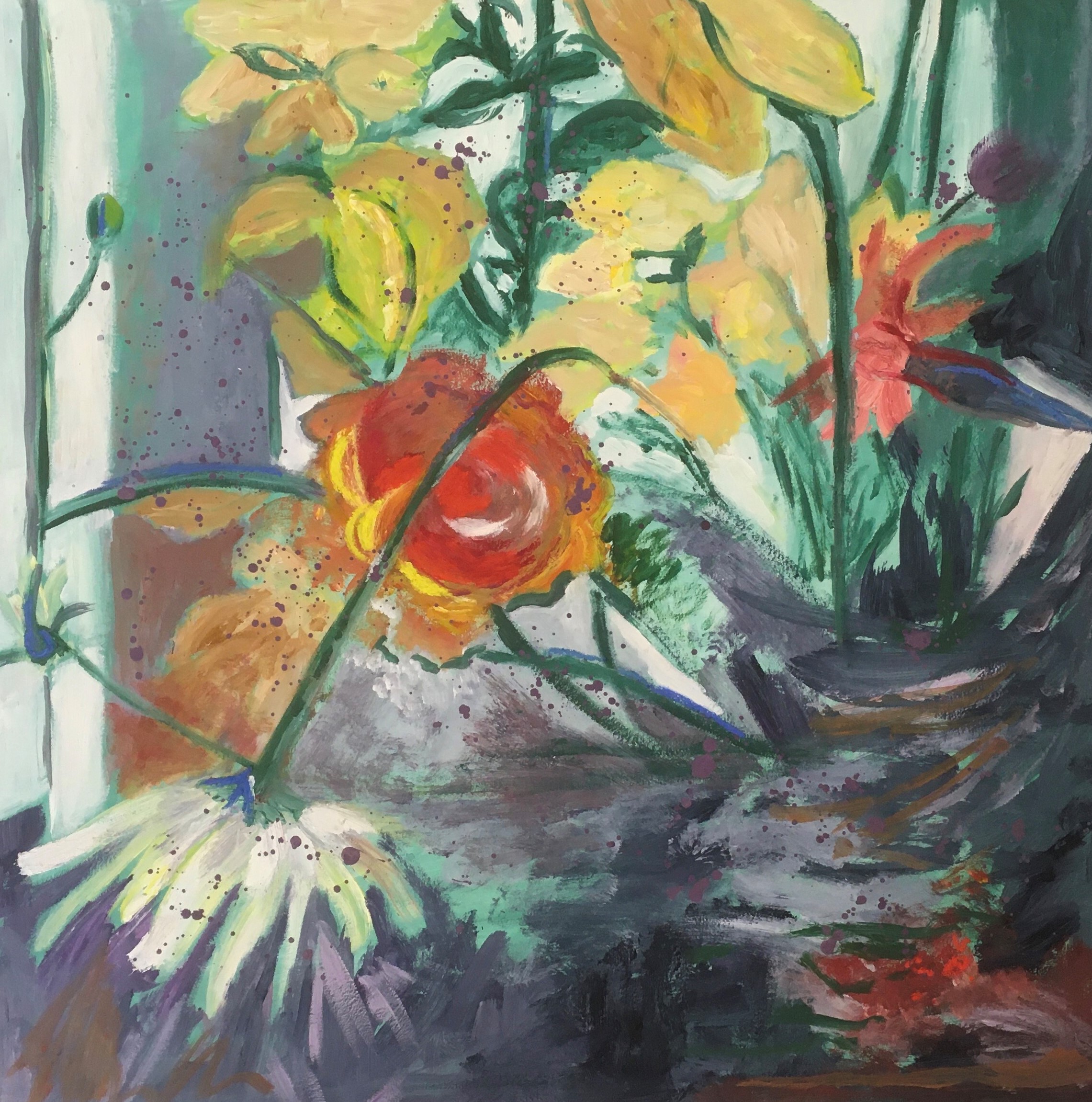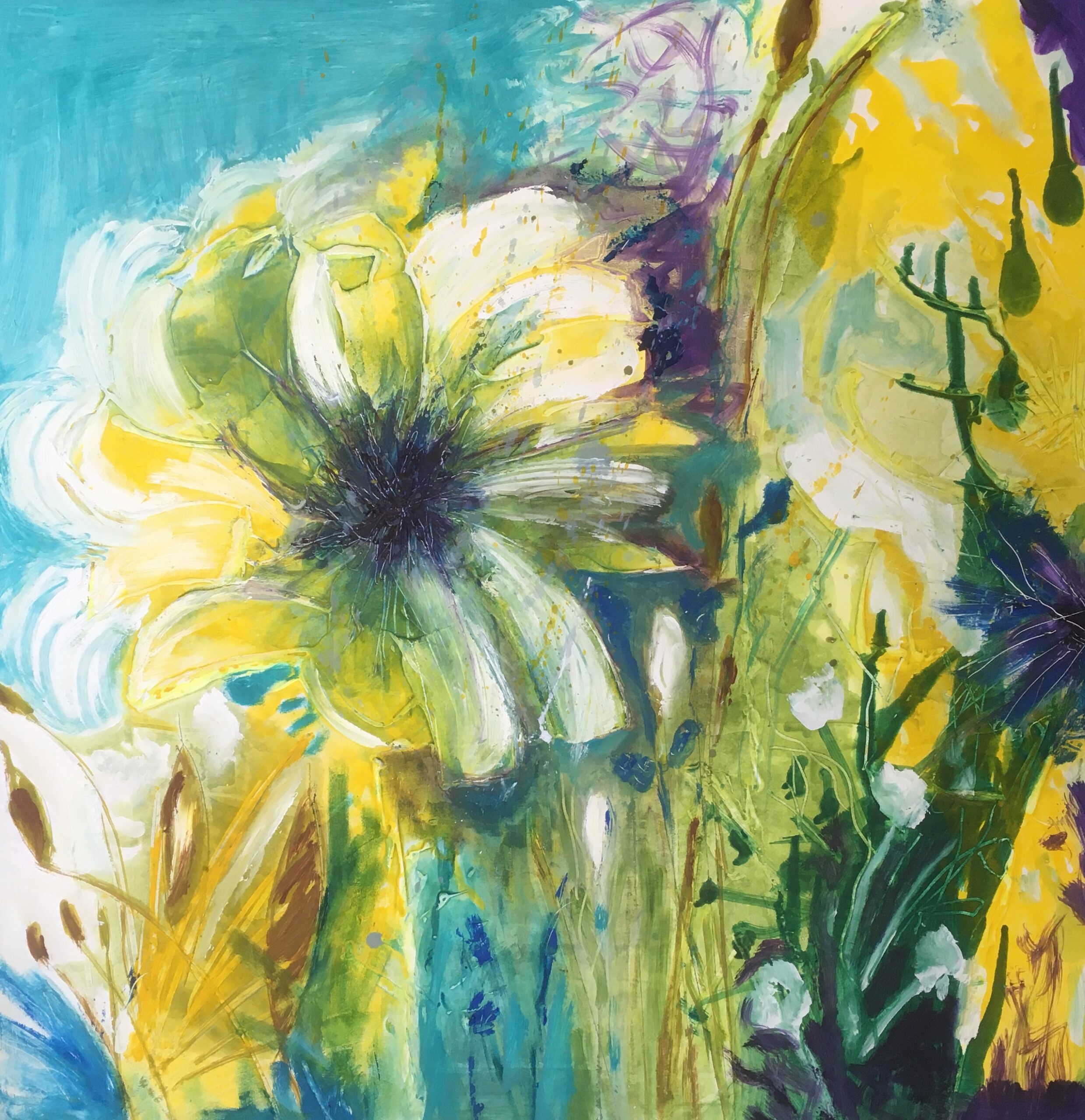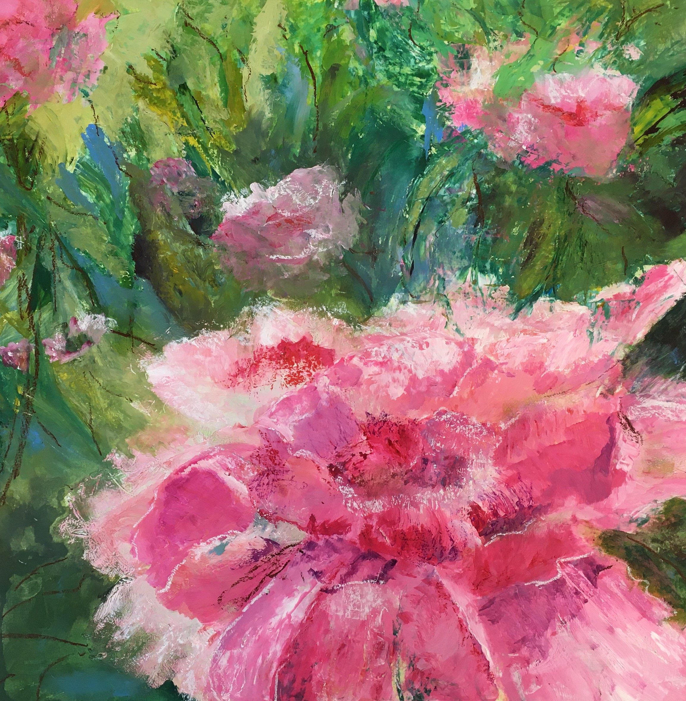 Extrait d’un bouquet de fleur – Travail à la brosse sur fond texturé