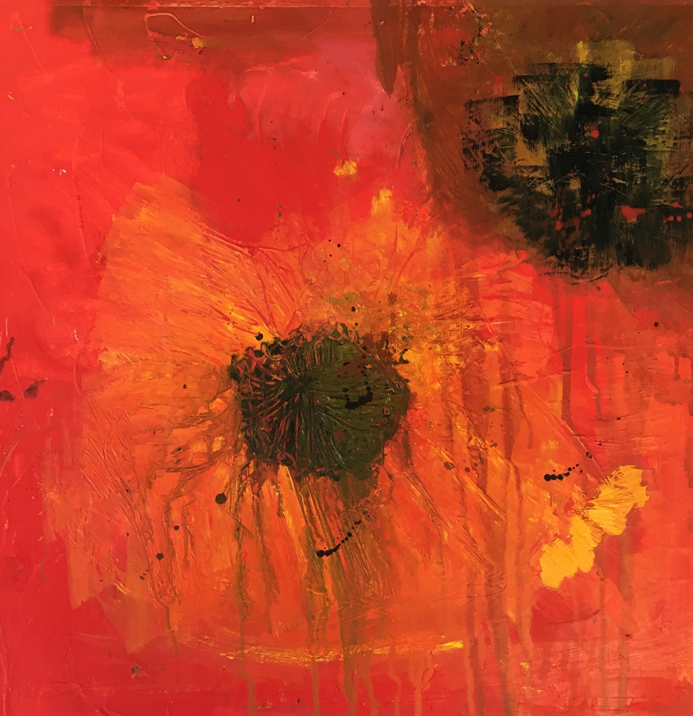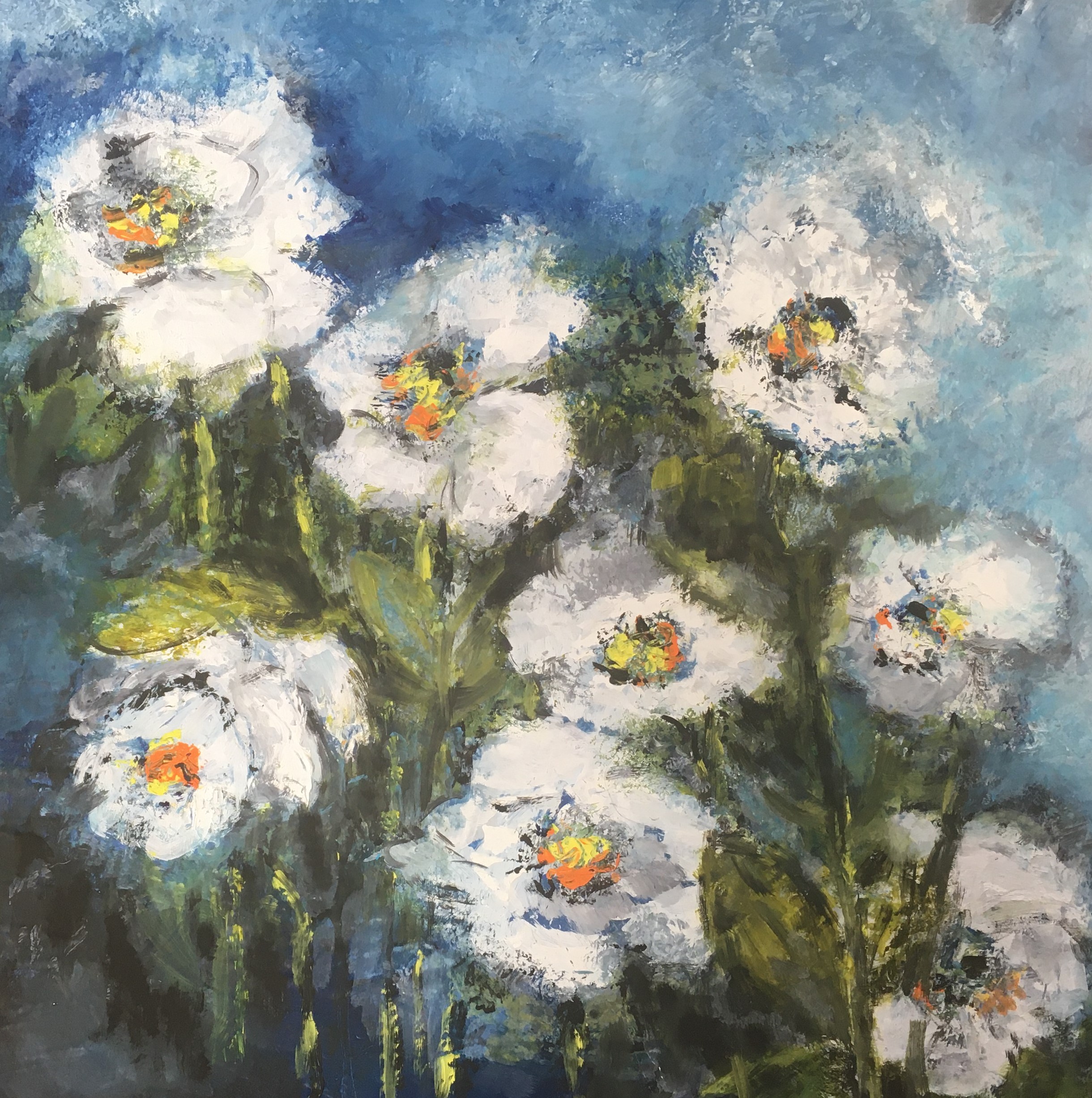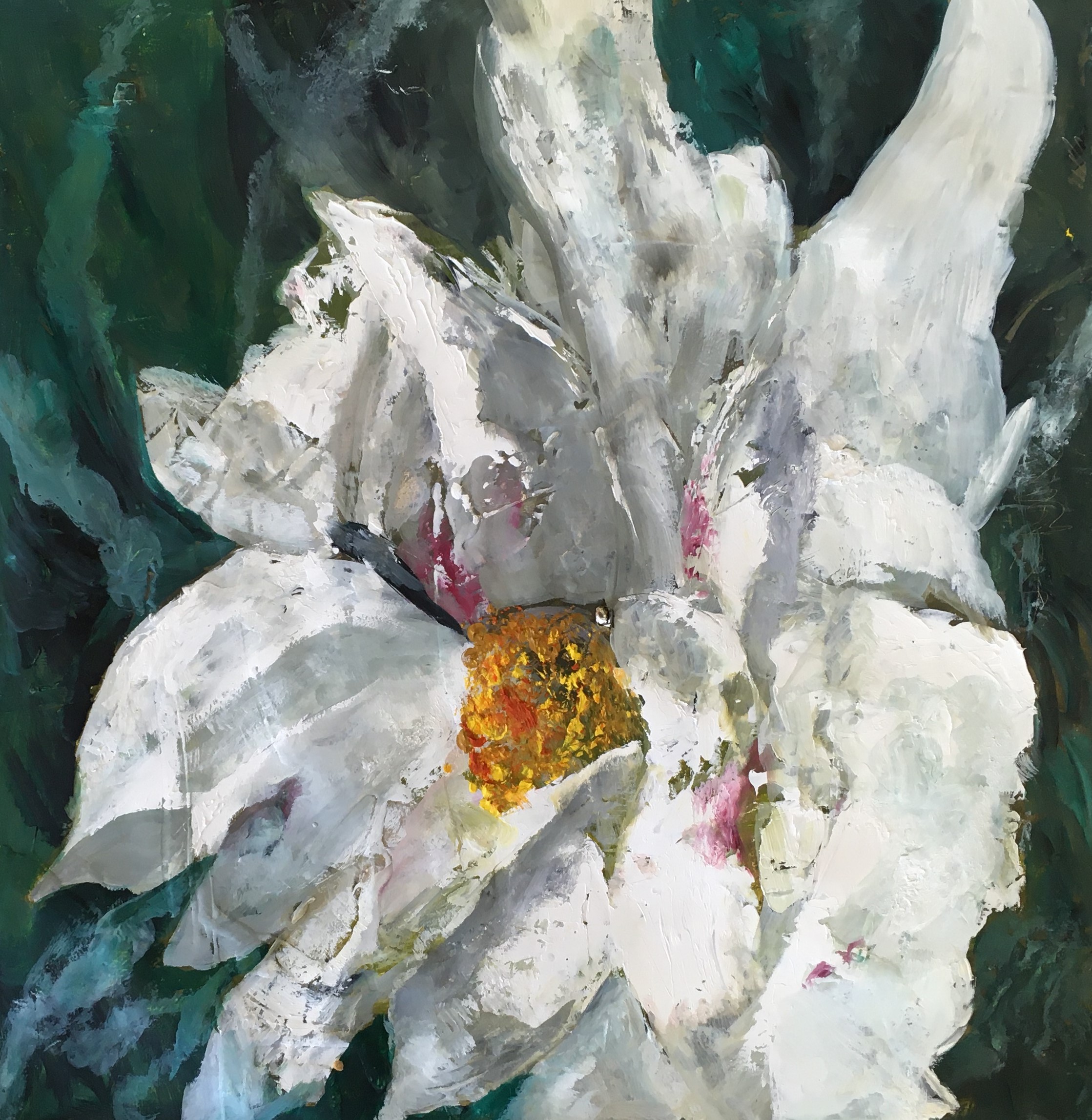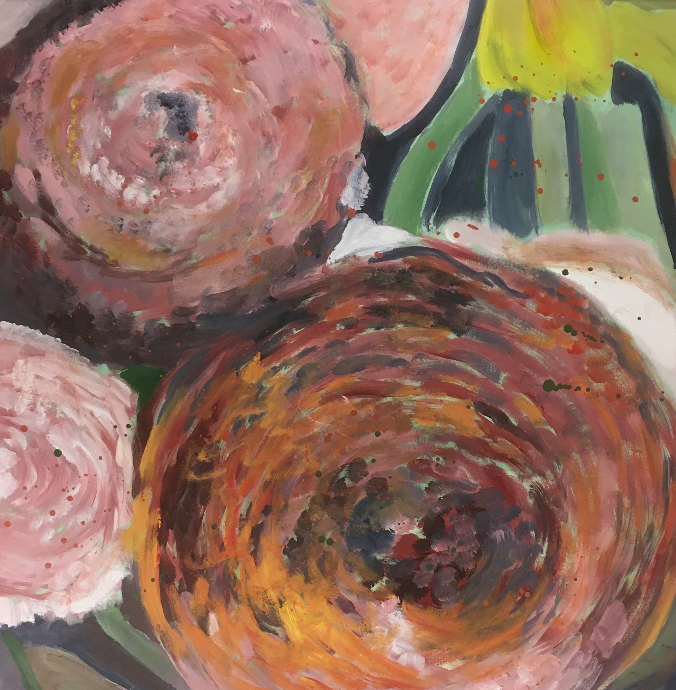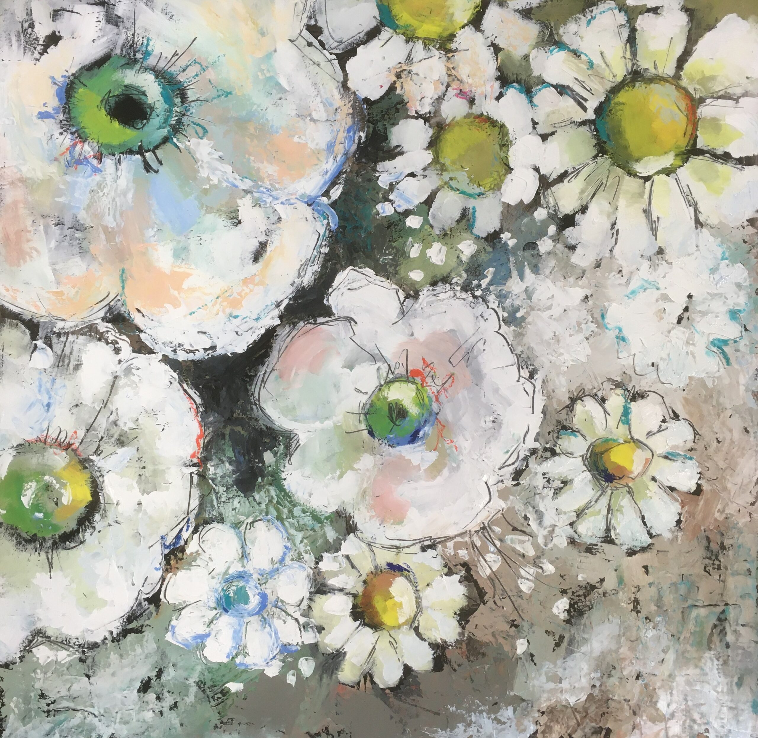 Extrait d’un bouquet de fleur – Travail à la brosse sur fond texturé