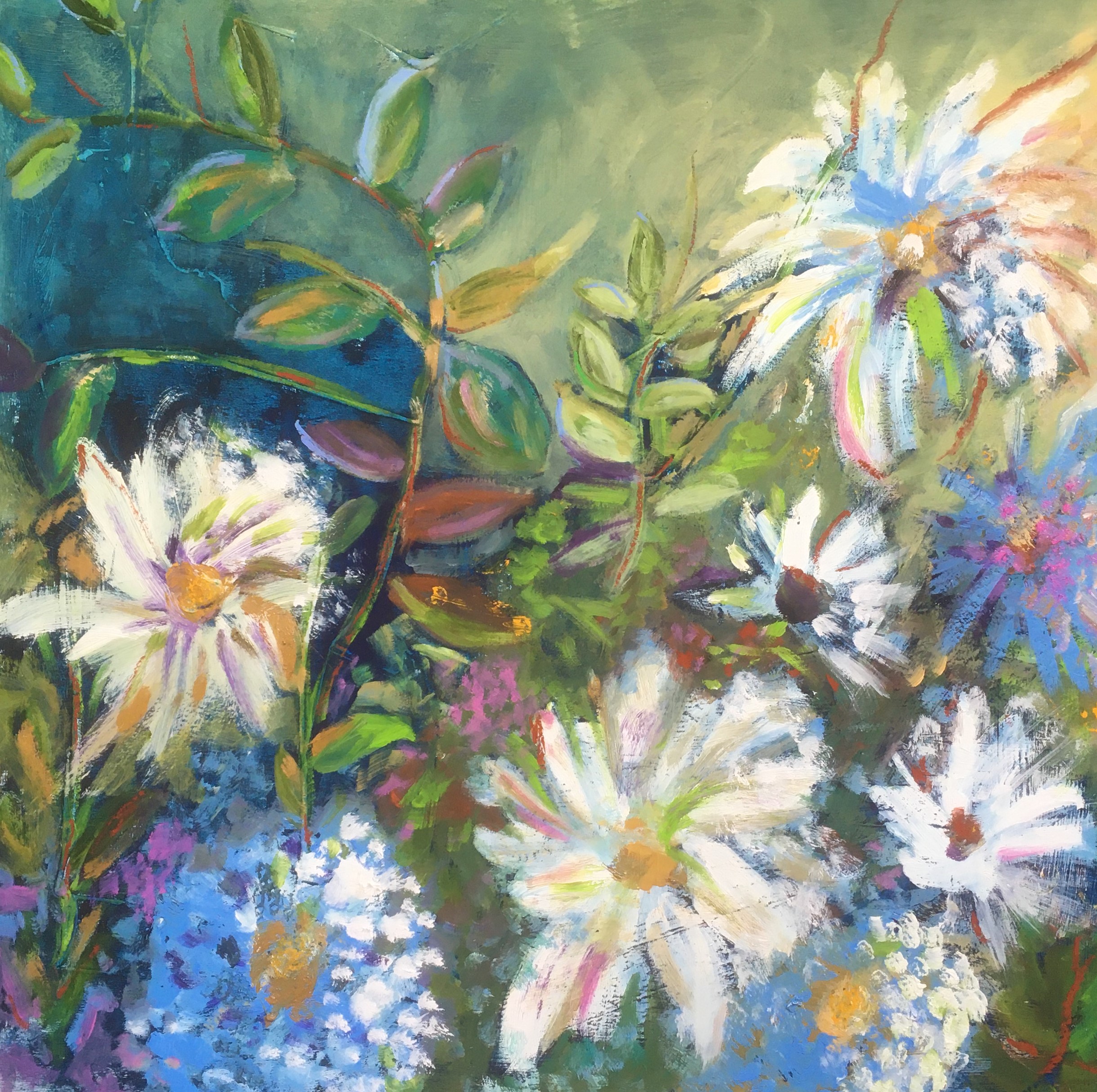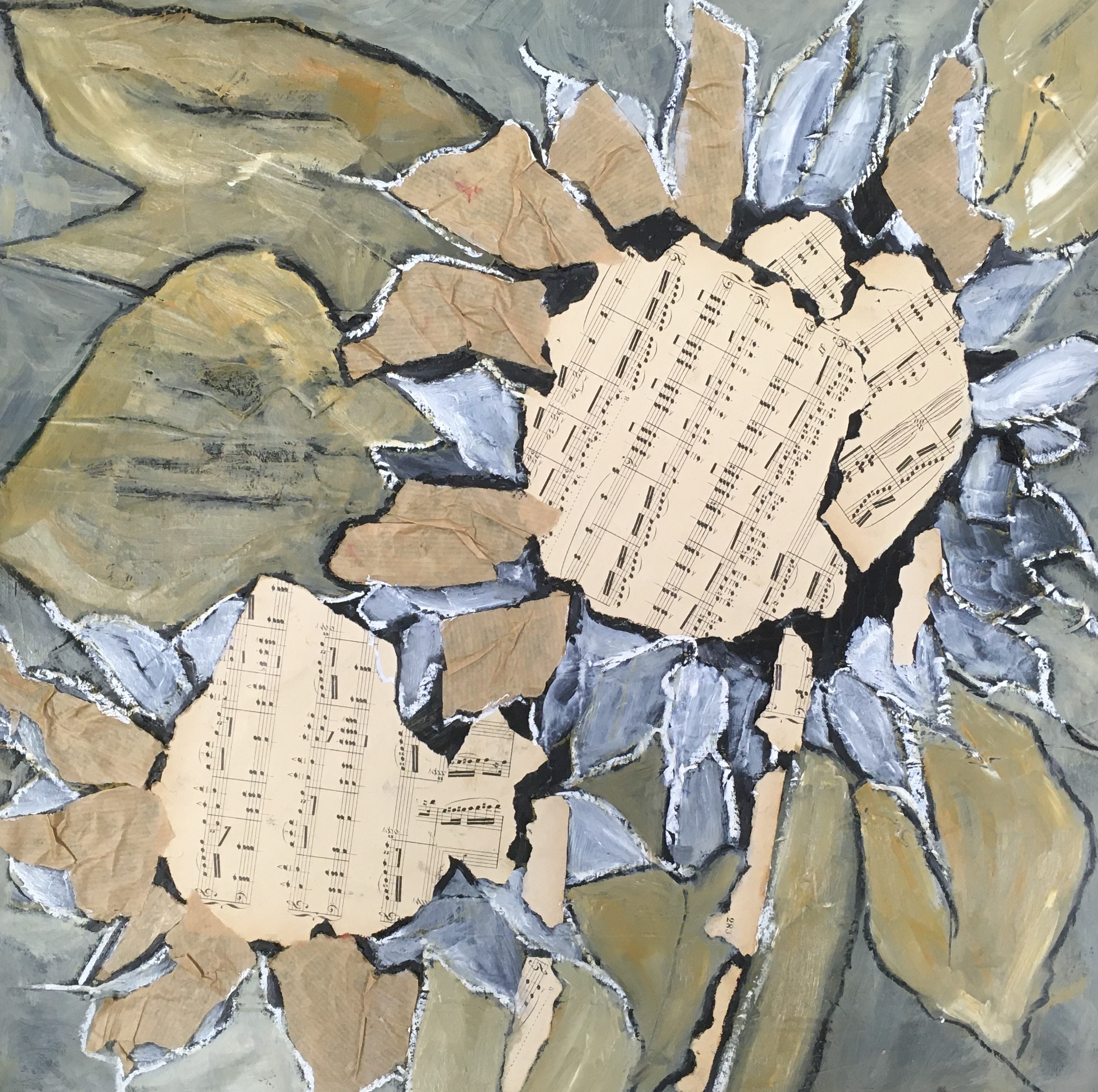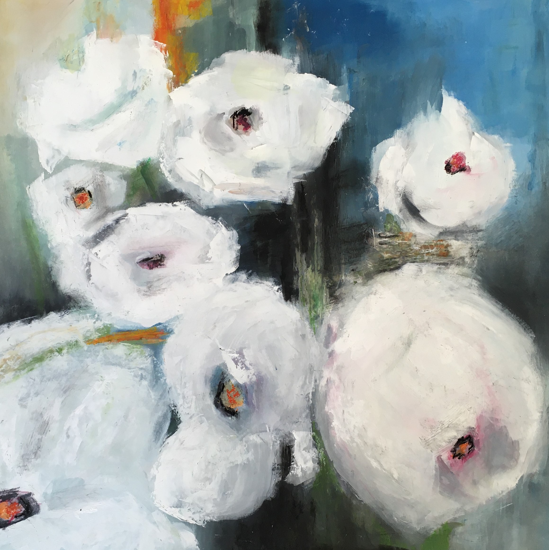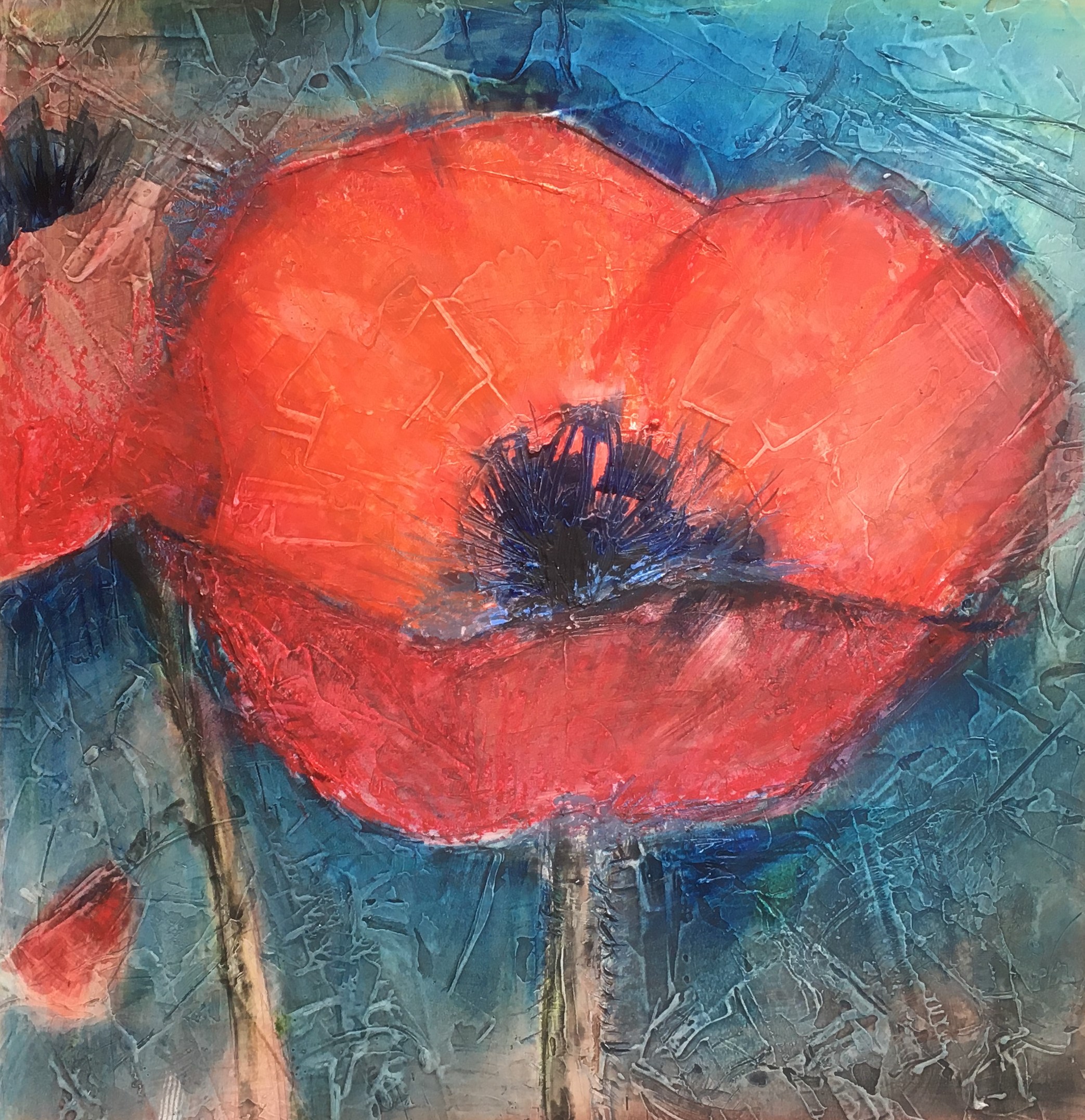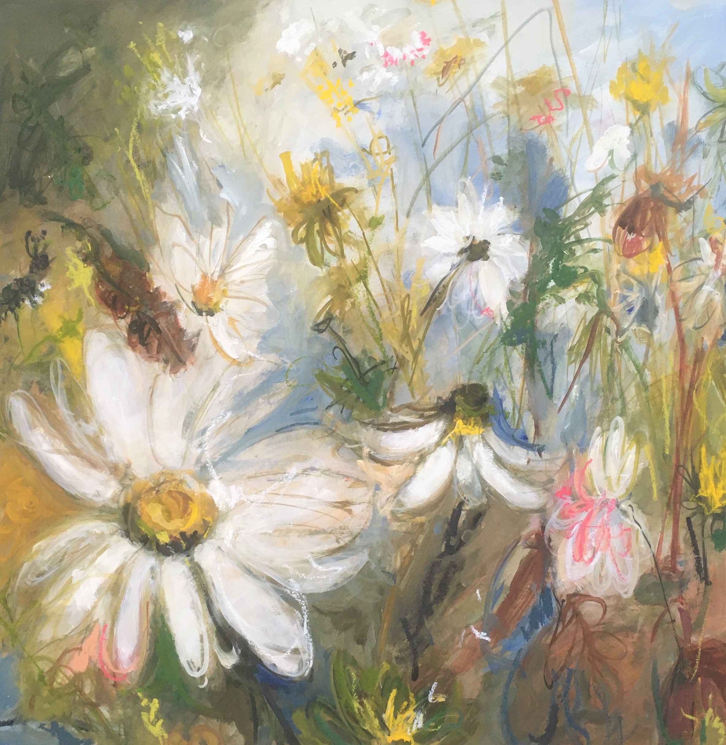 Extrait d’un bouquet de fleur – Travail à la brosse sur fond texturé
