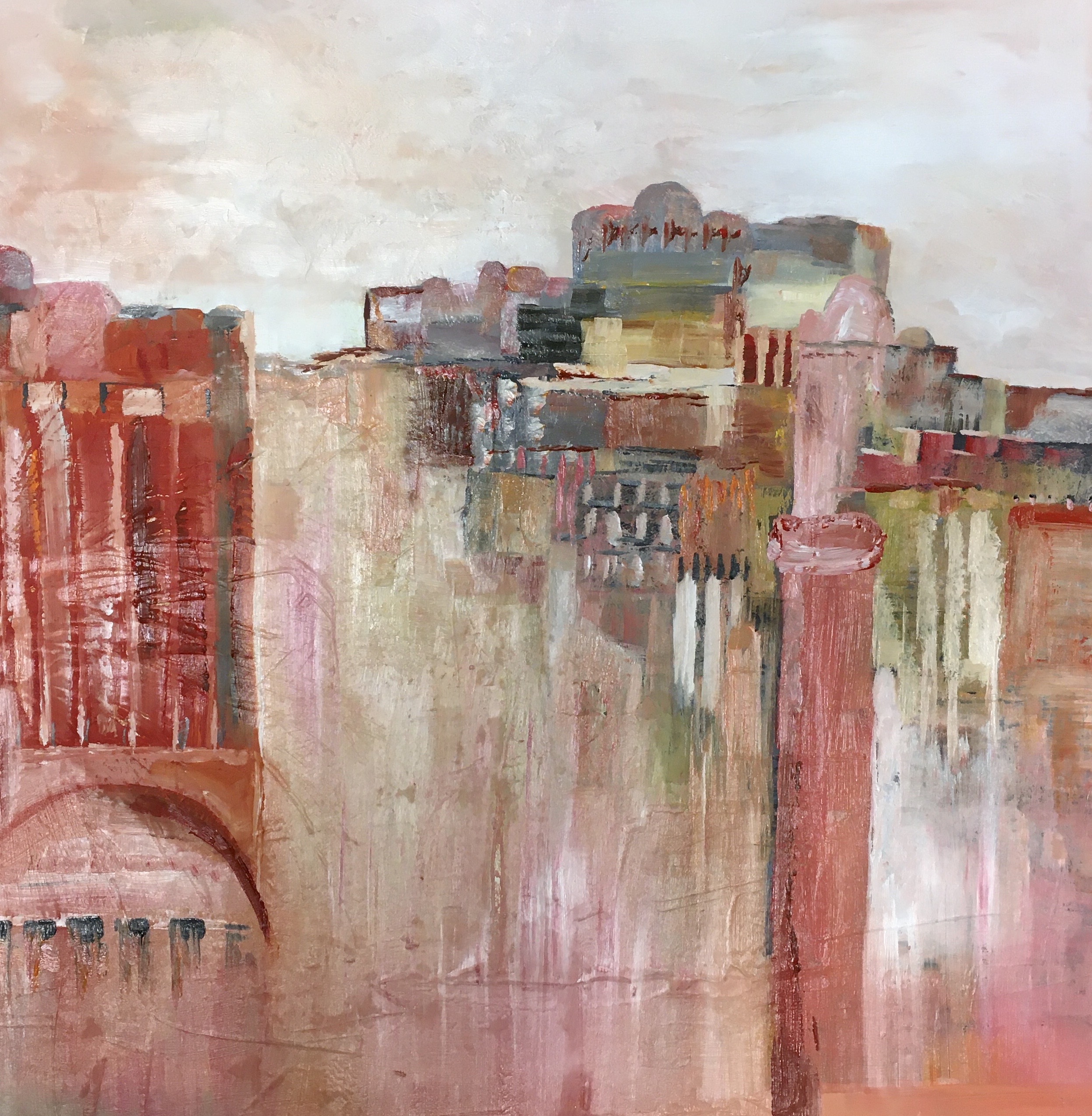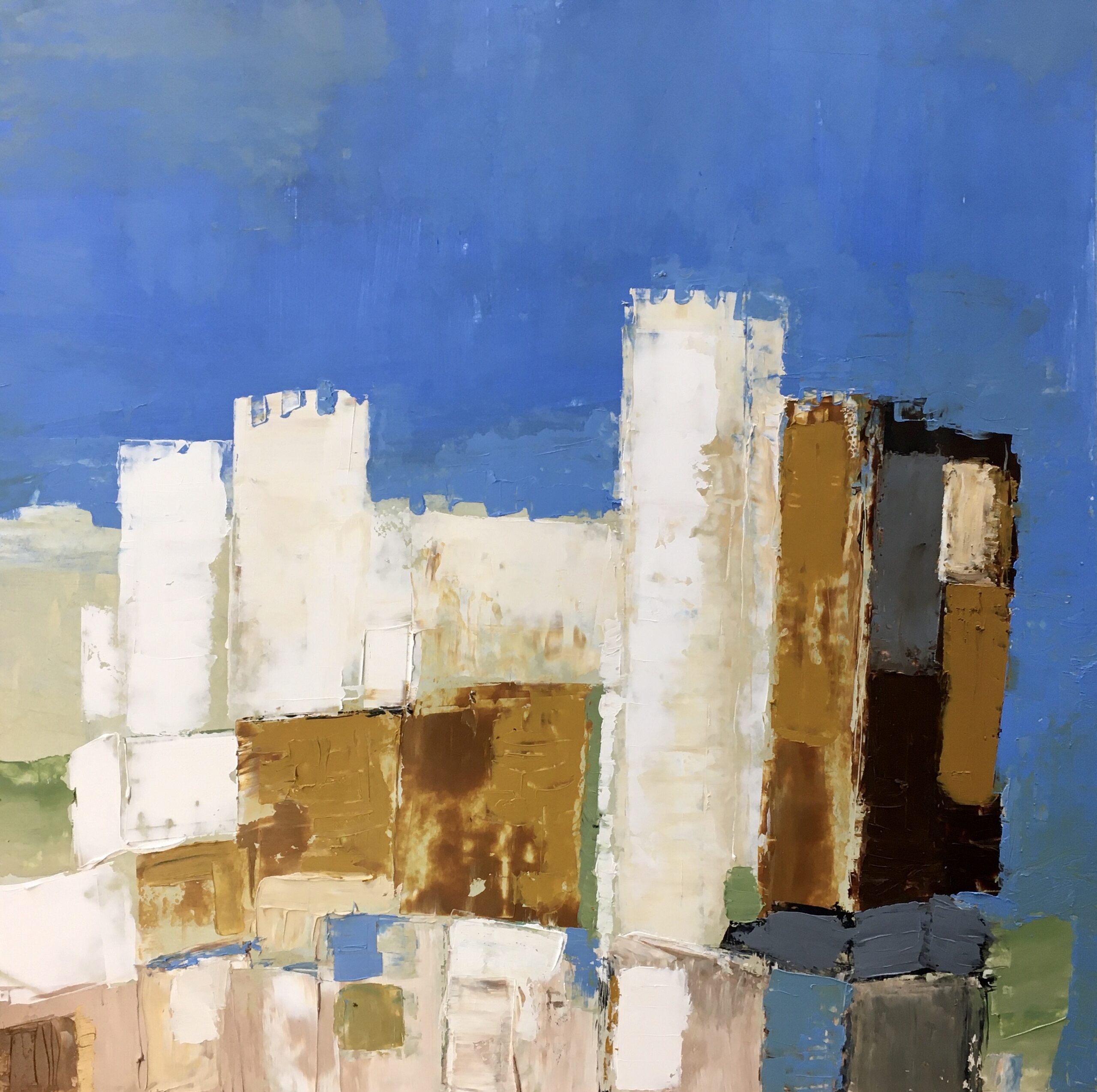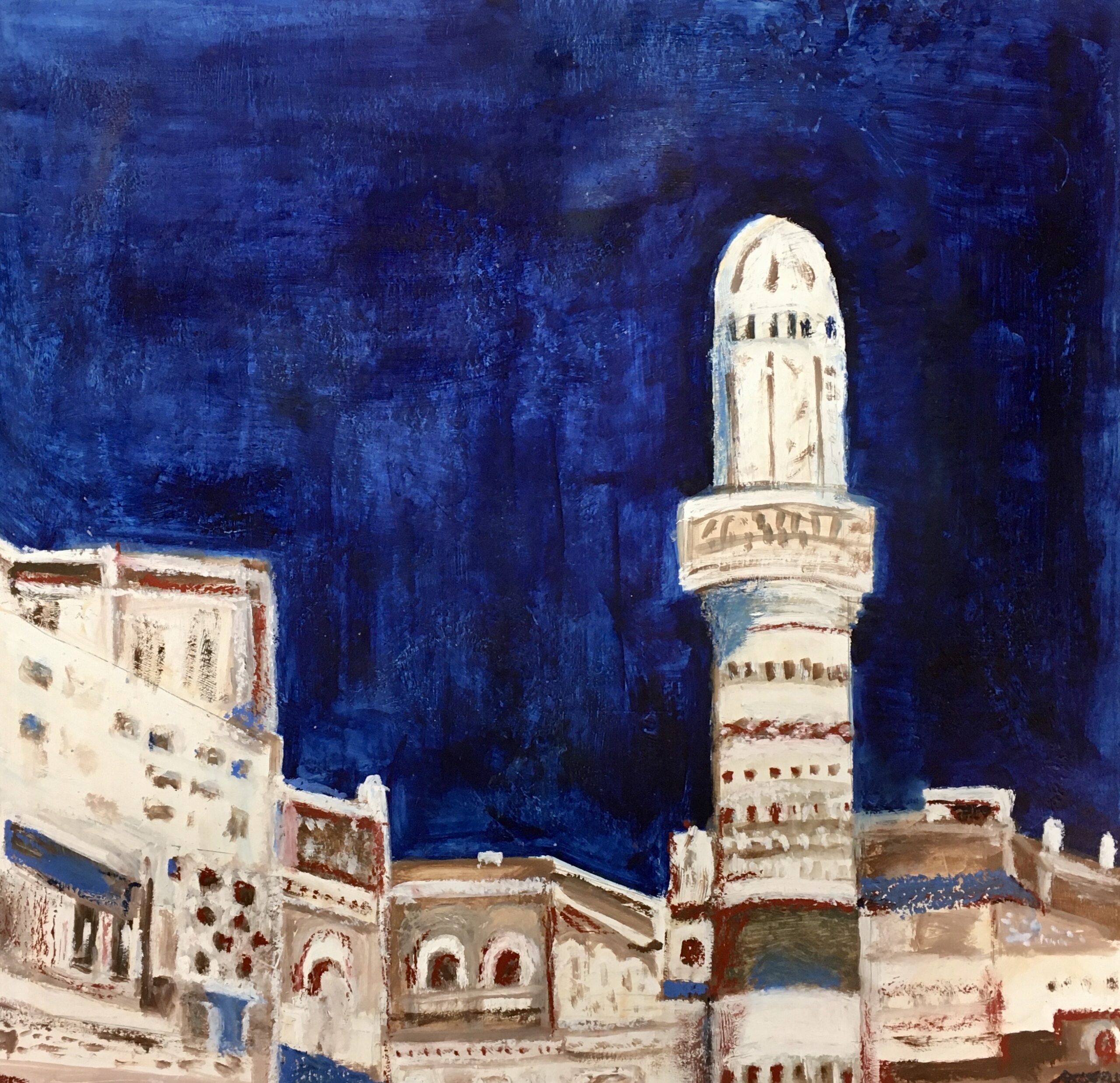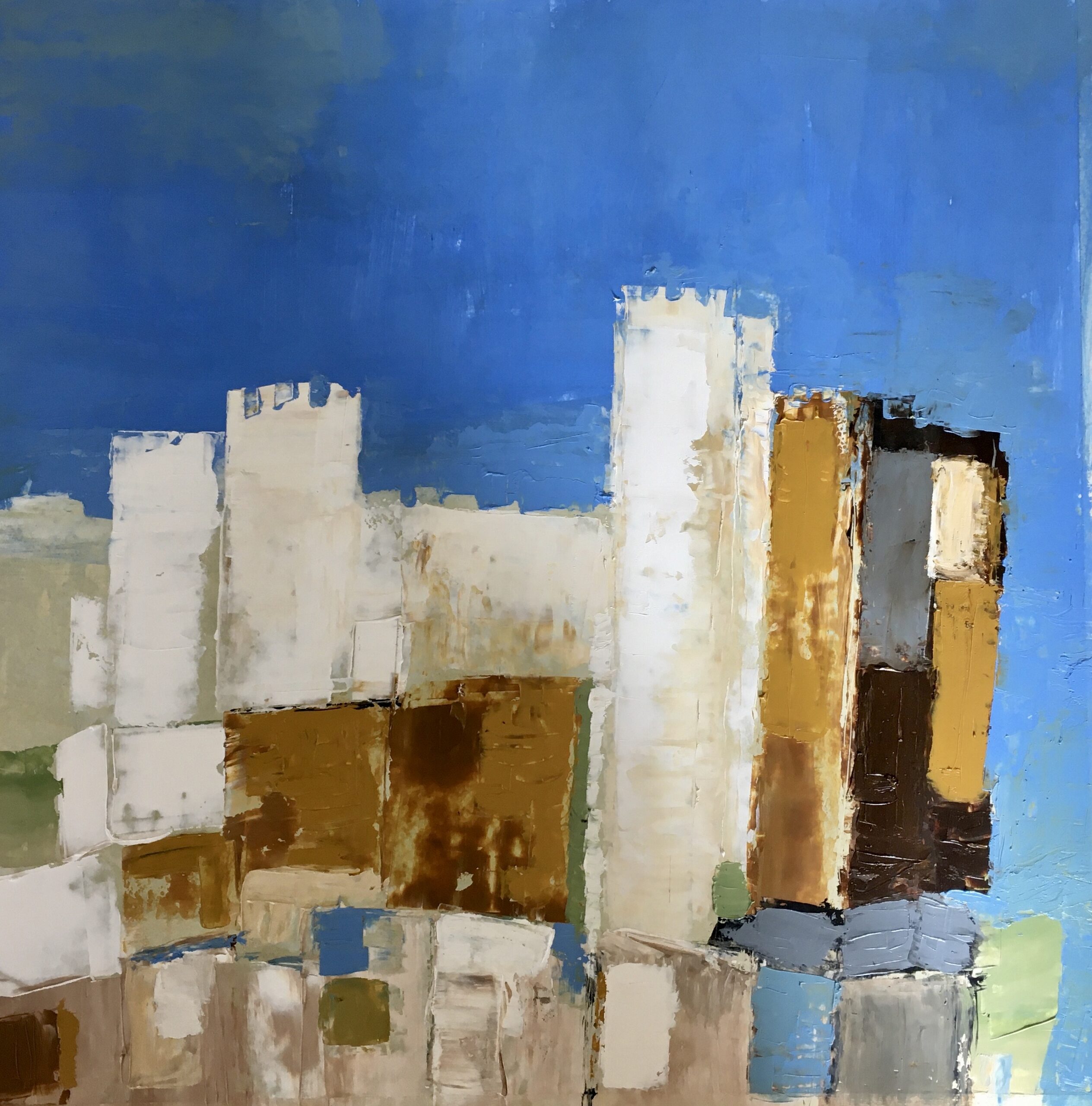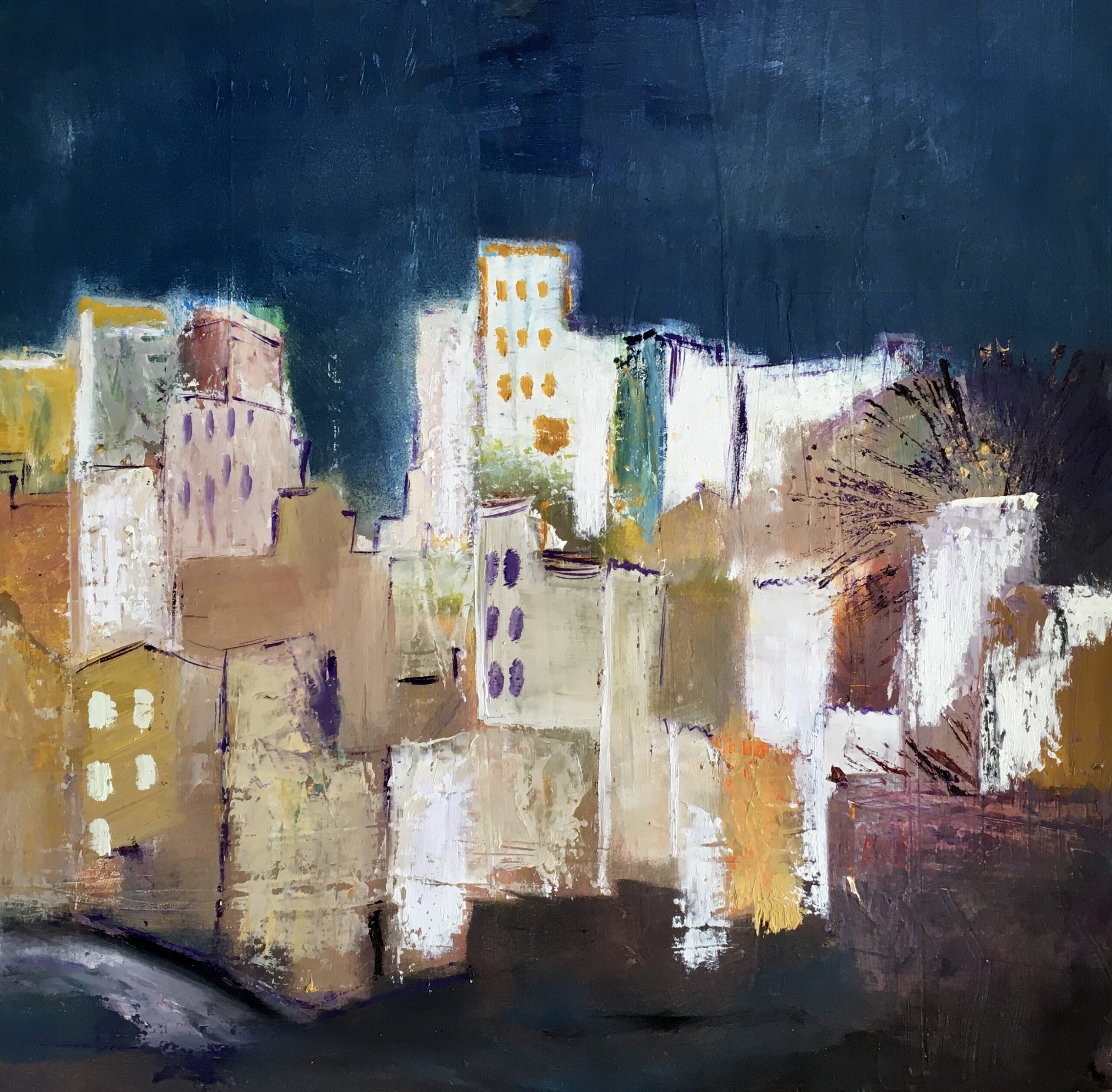 Villes et villages du Yémen, peinture à l’huile avec rehauts au pastel et collages