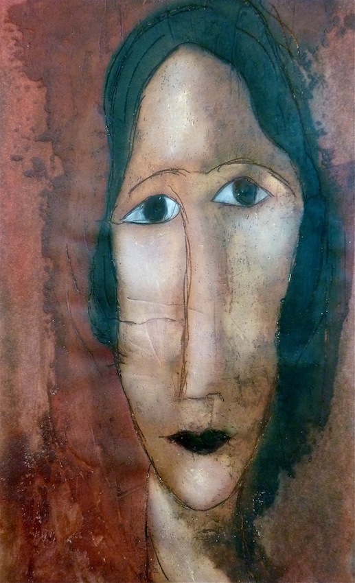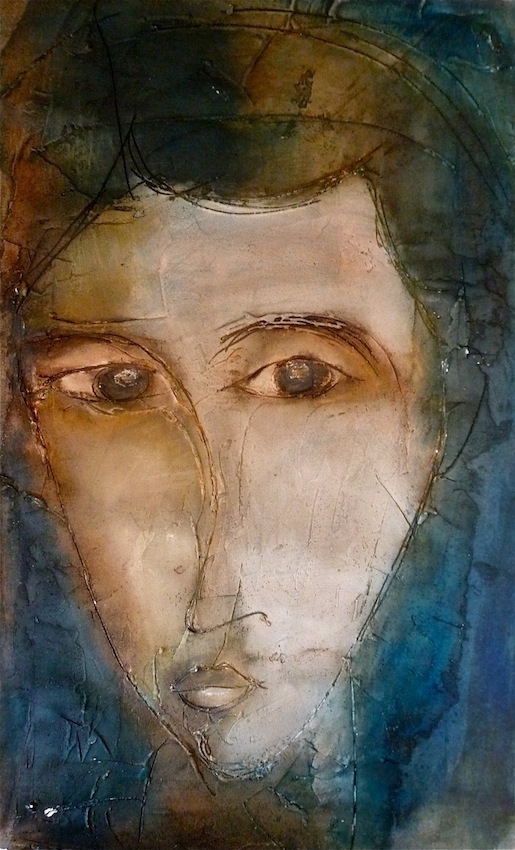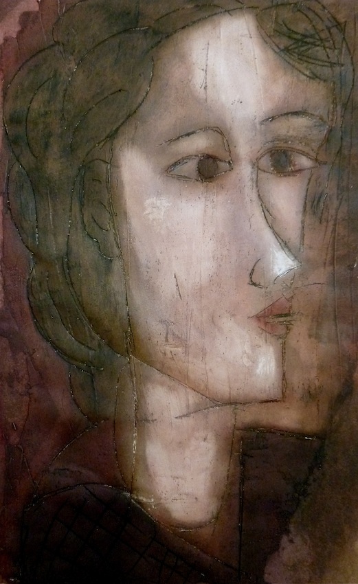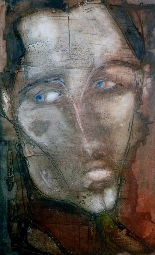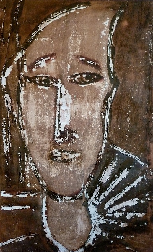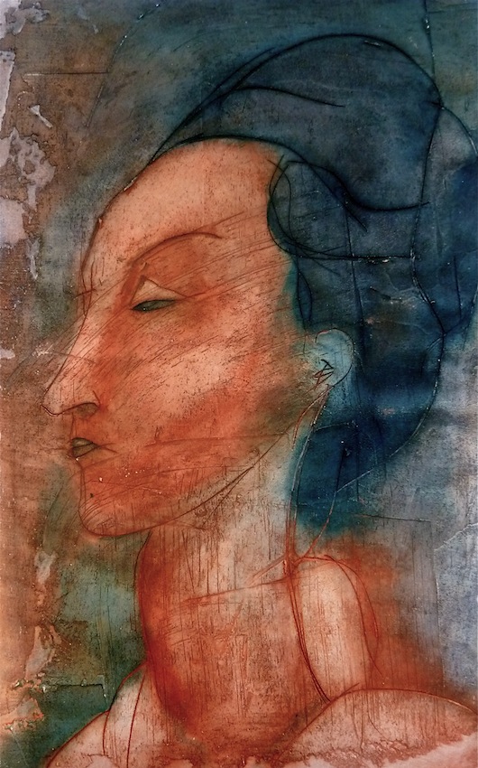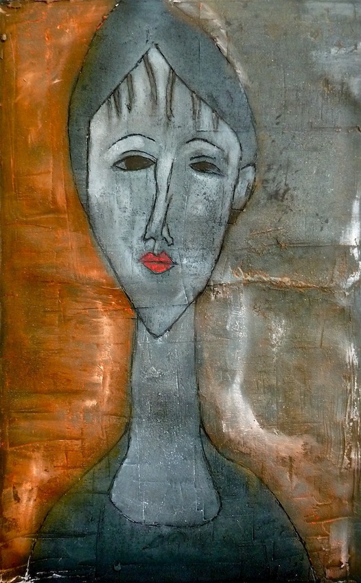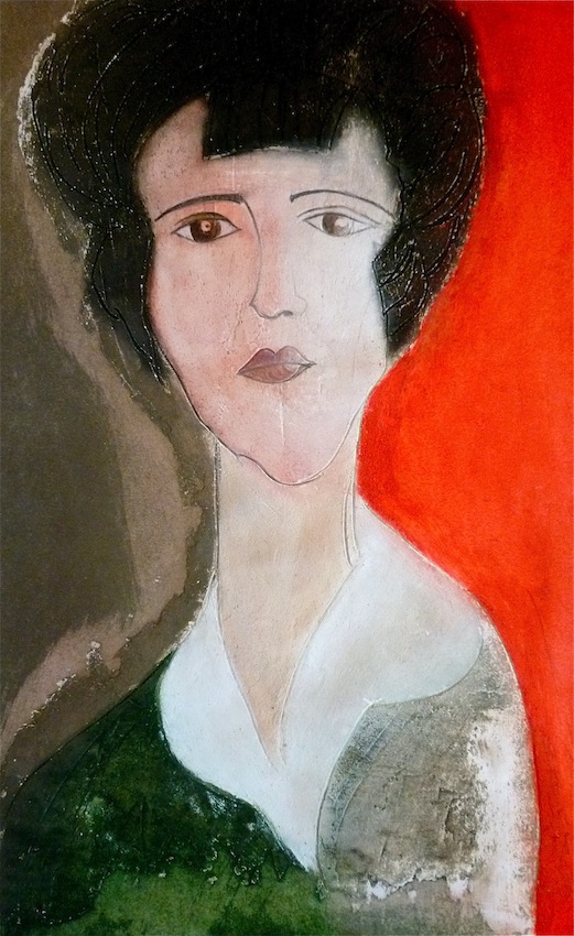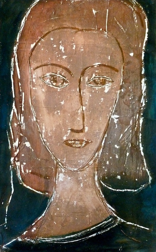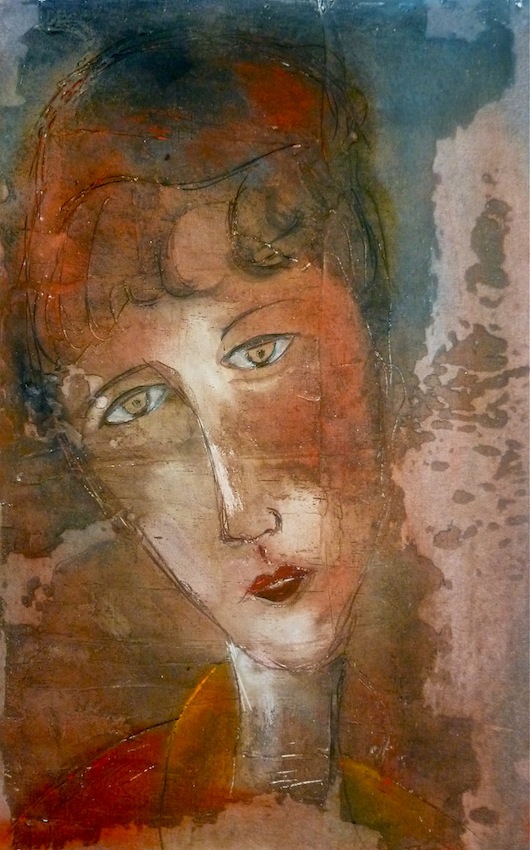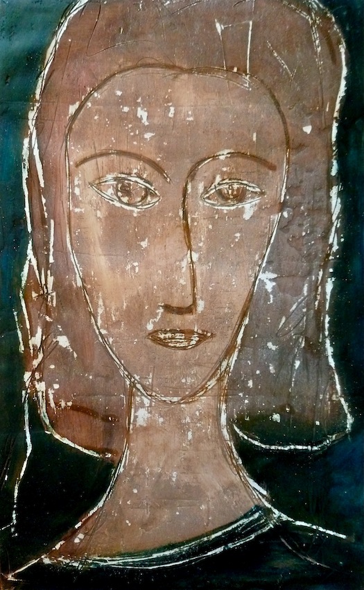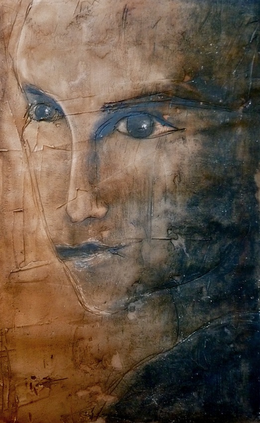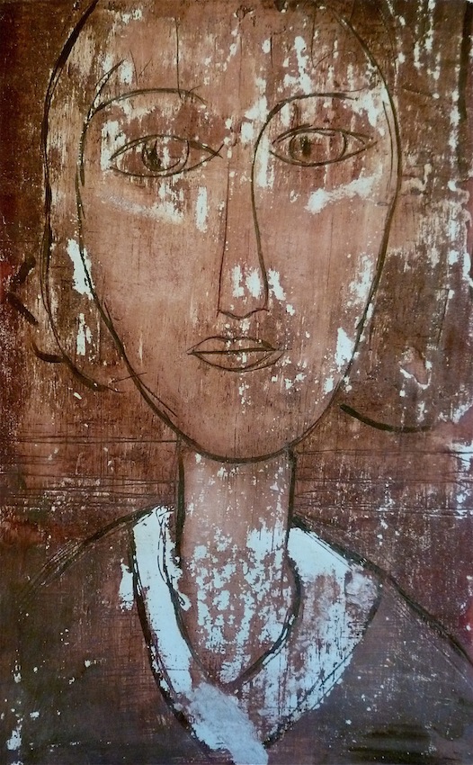 Février 2012 – Peinture à l’huile patinée sur un fond préparé à l’enduit souple et gravé à la pointe sèche