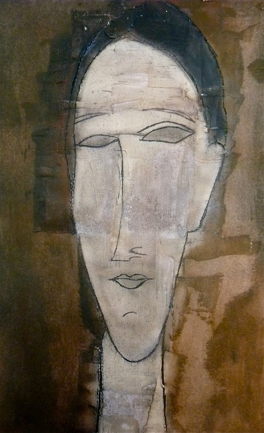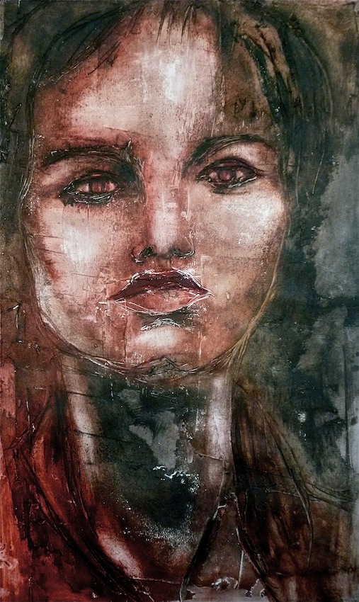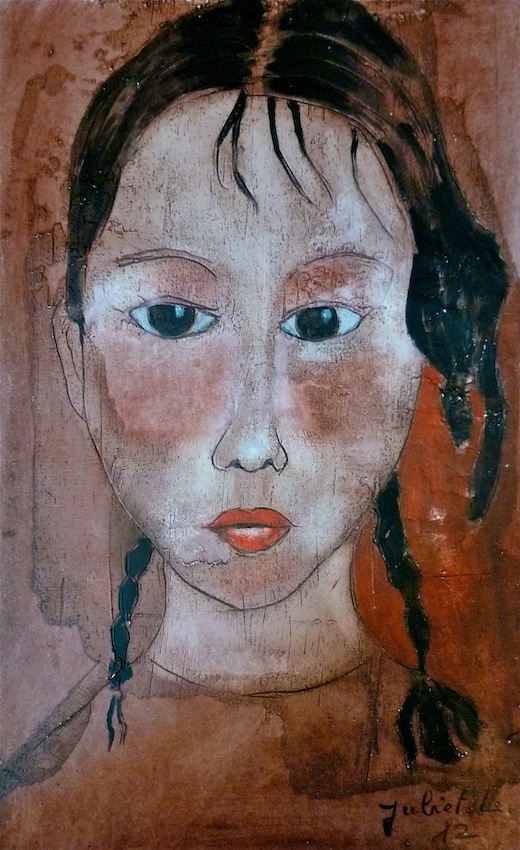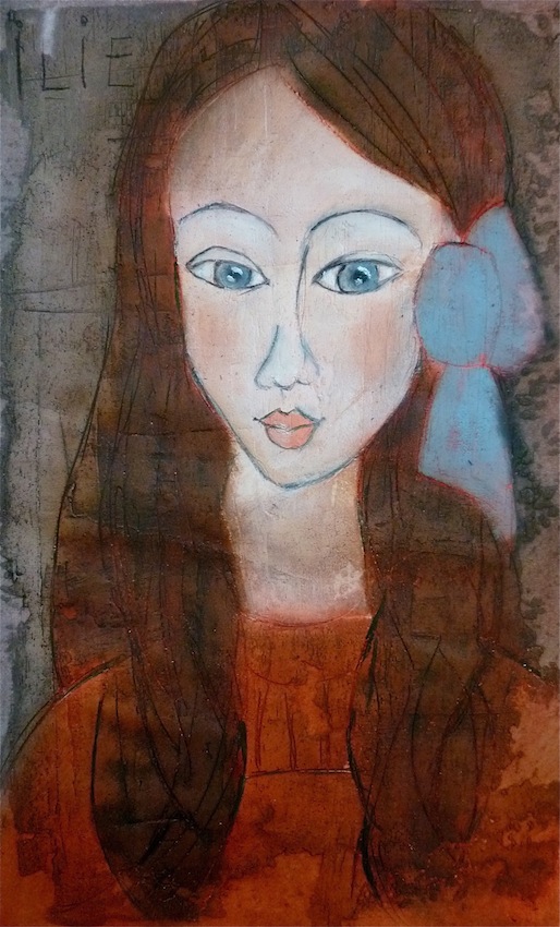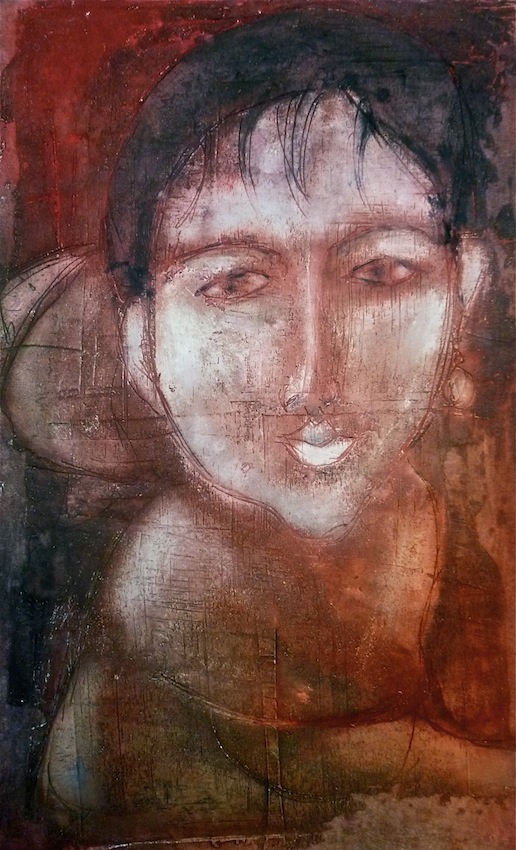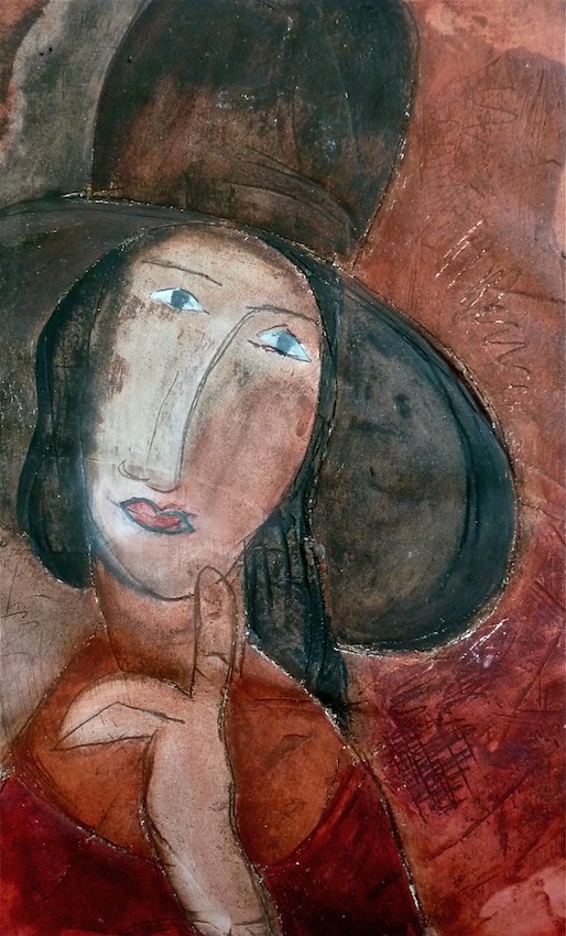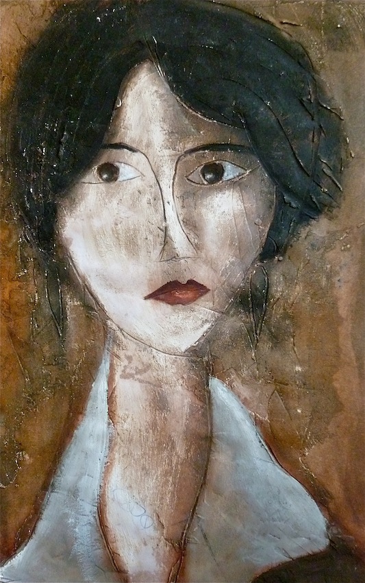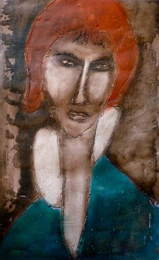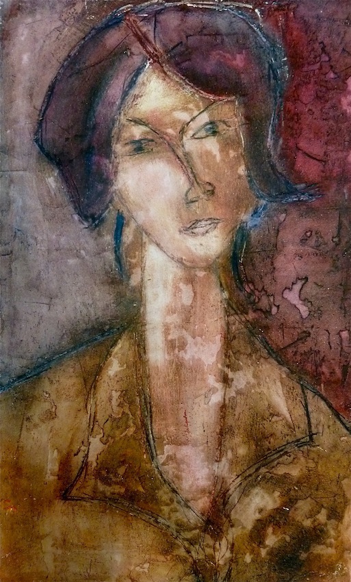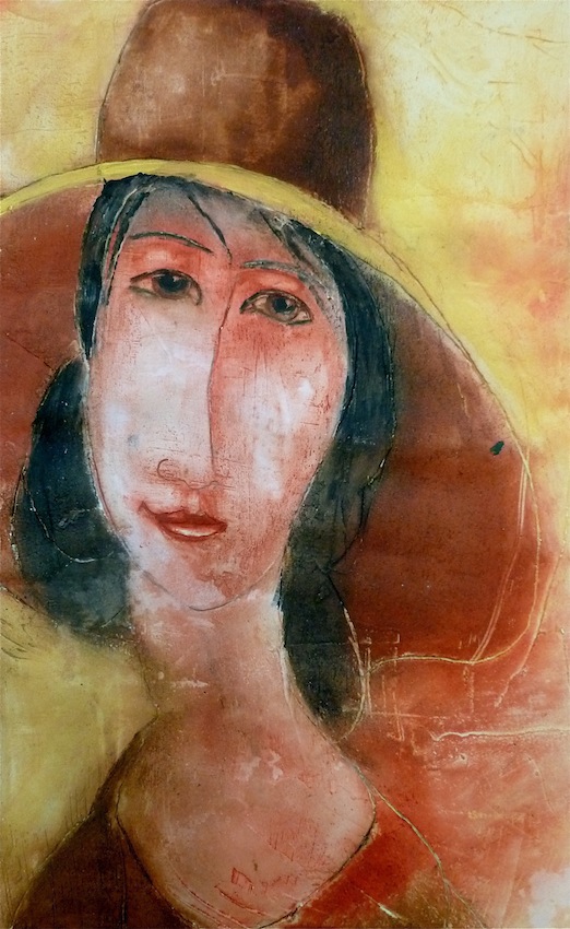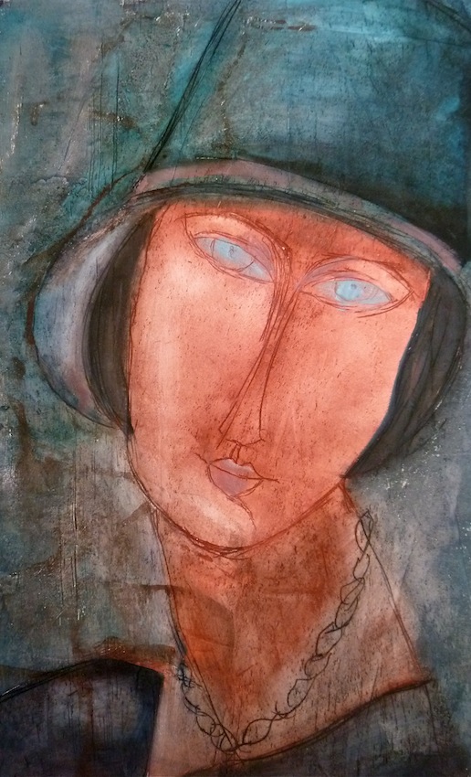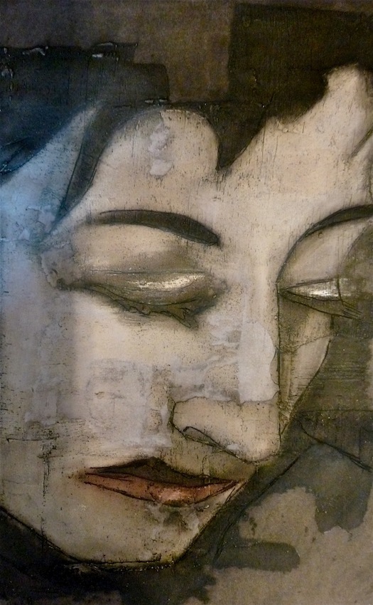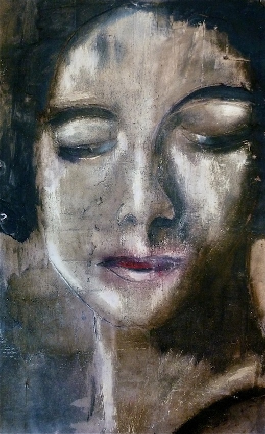 Février 2012 – Peinture à l’huile patinée sur un fond préparé à l’enduit souple et gravé à la pointe sèche