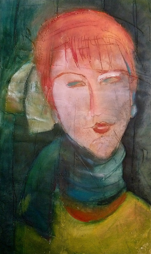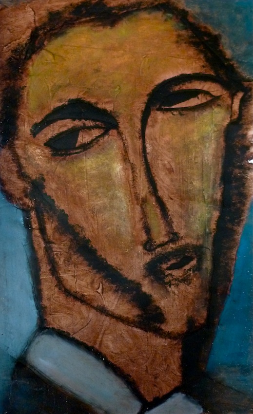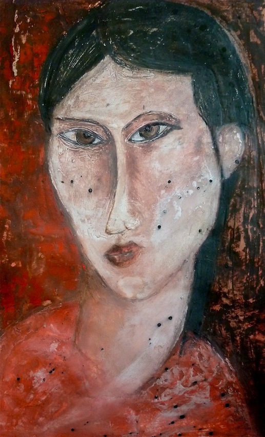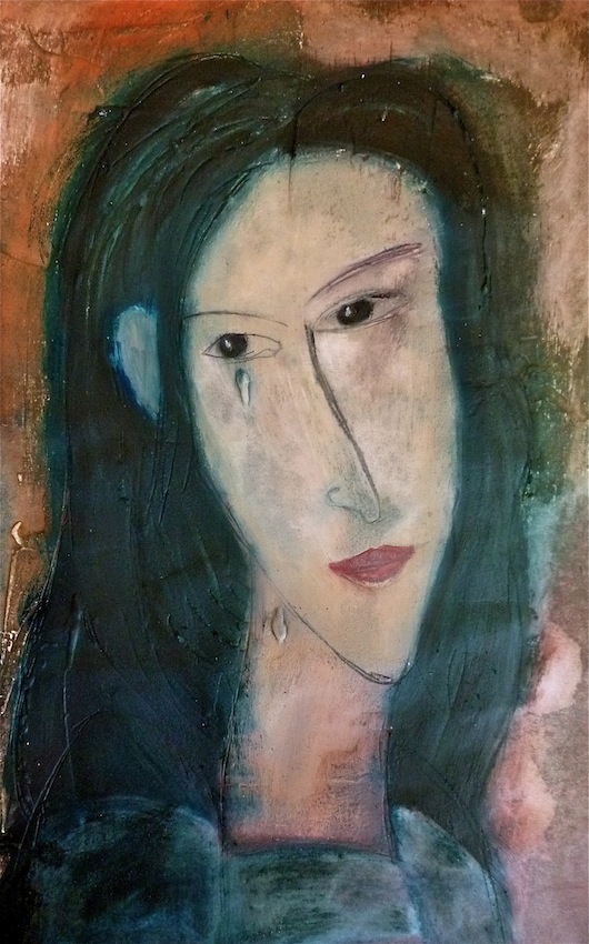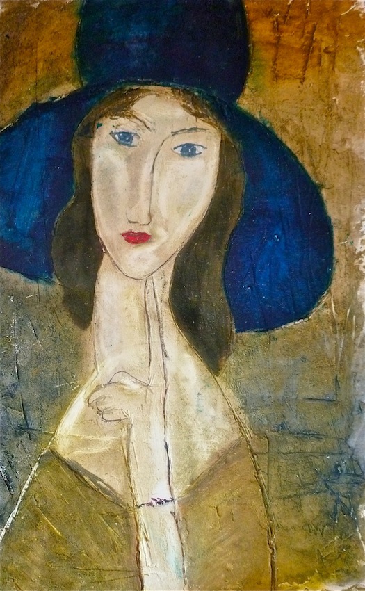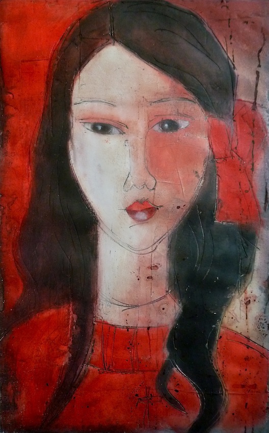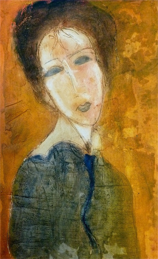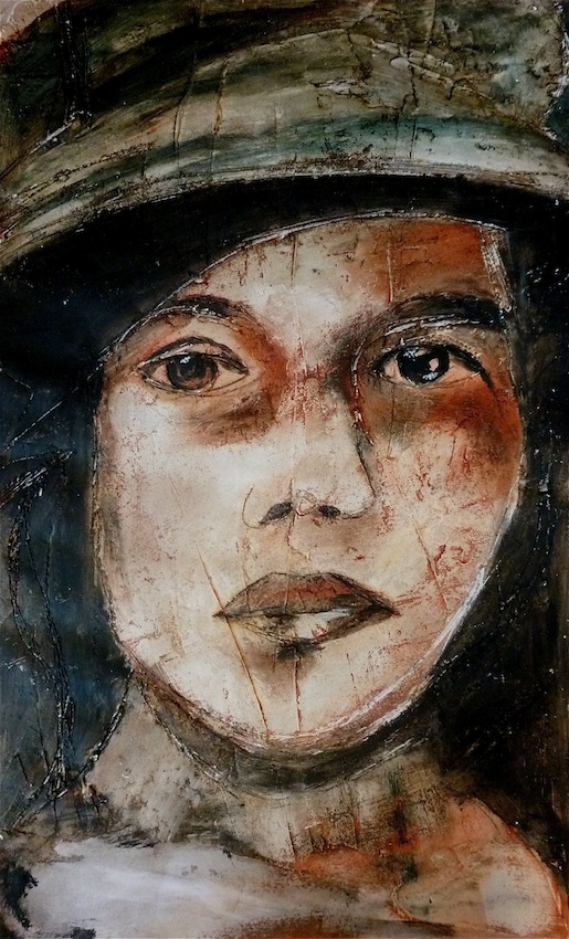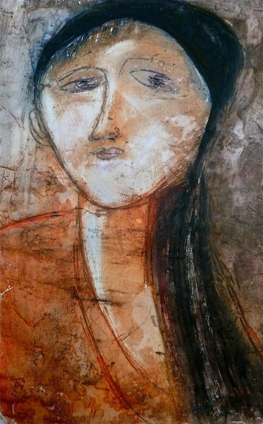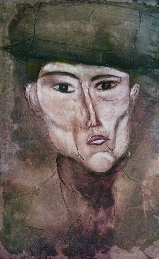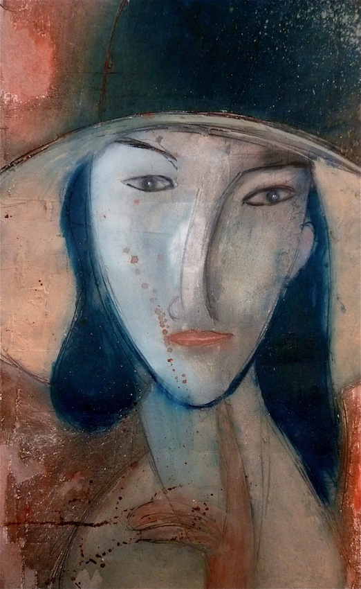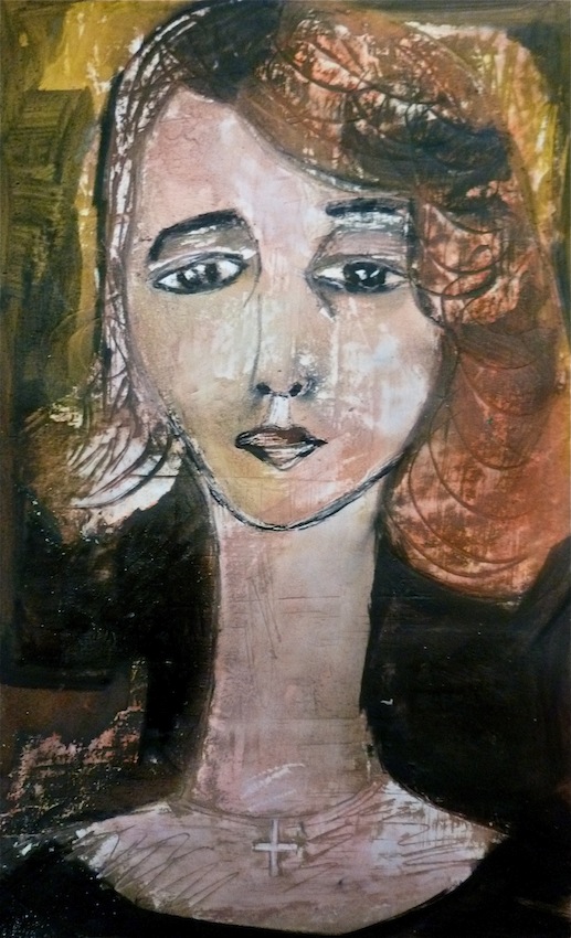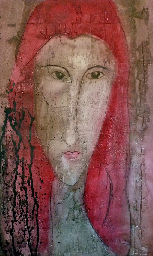 Février 2012 – Peinture à l’huile patinée sur un fond préparé à l’enduit souple et gravé à la pointe sèche